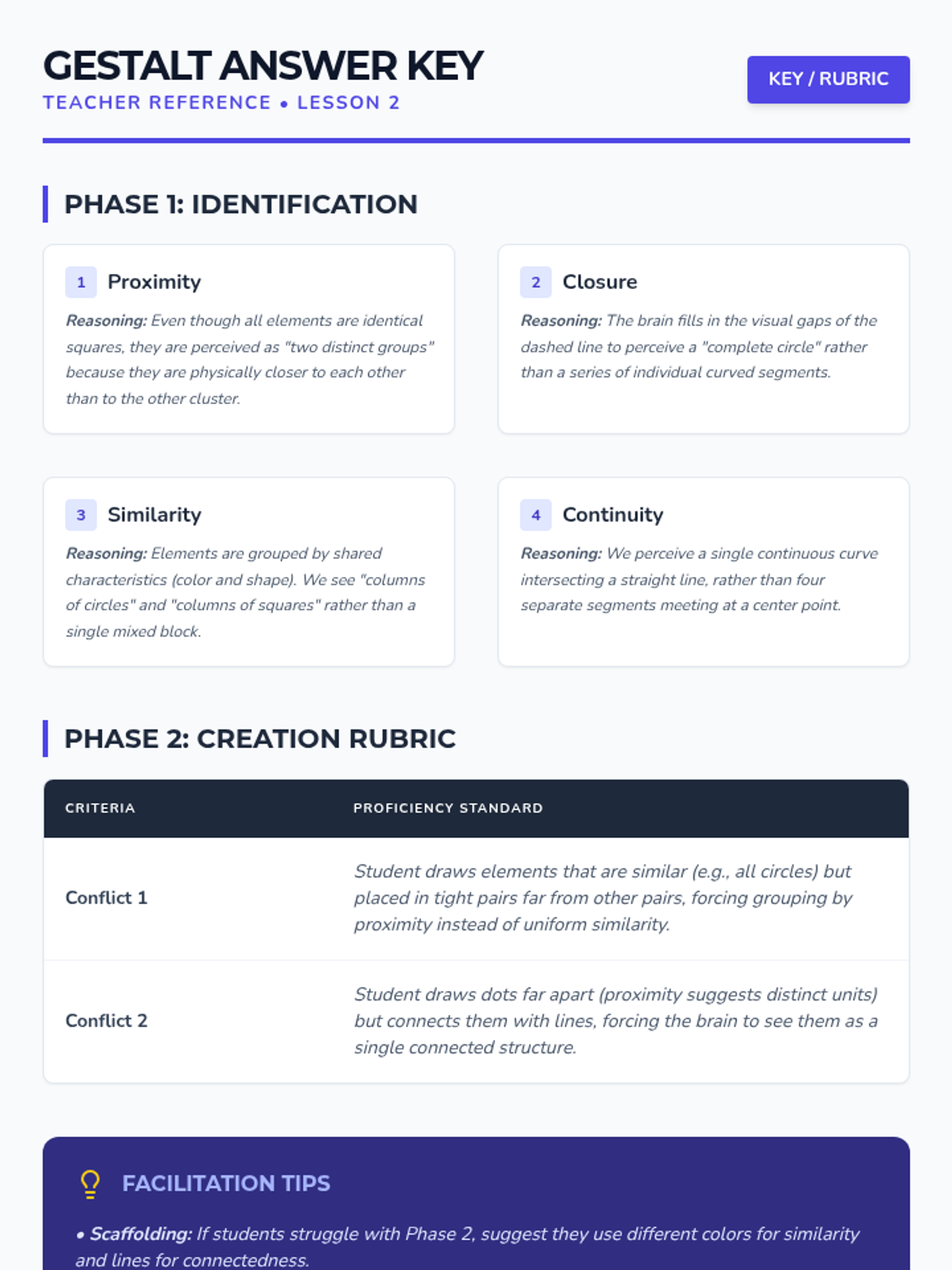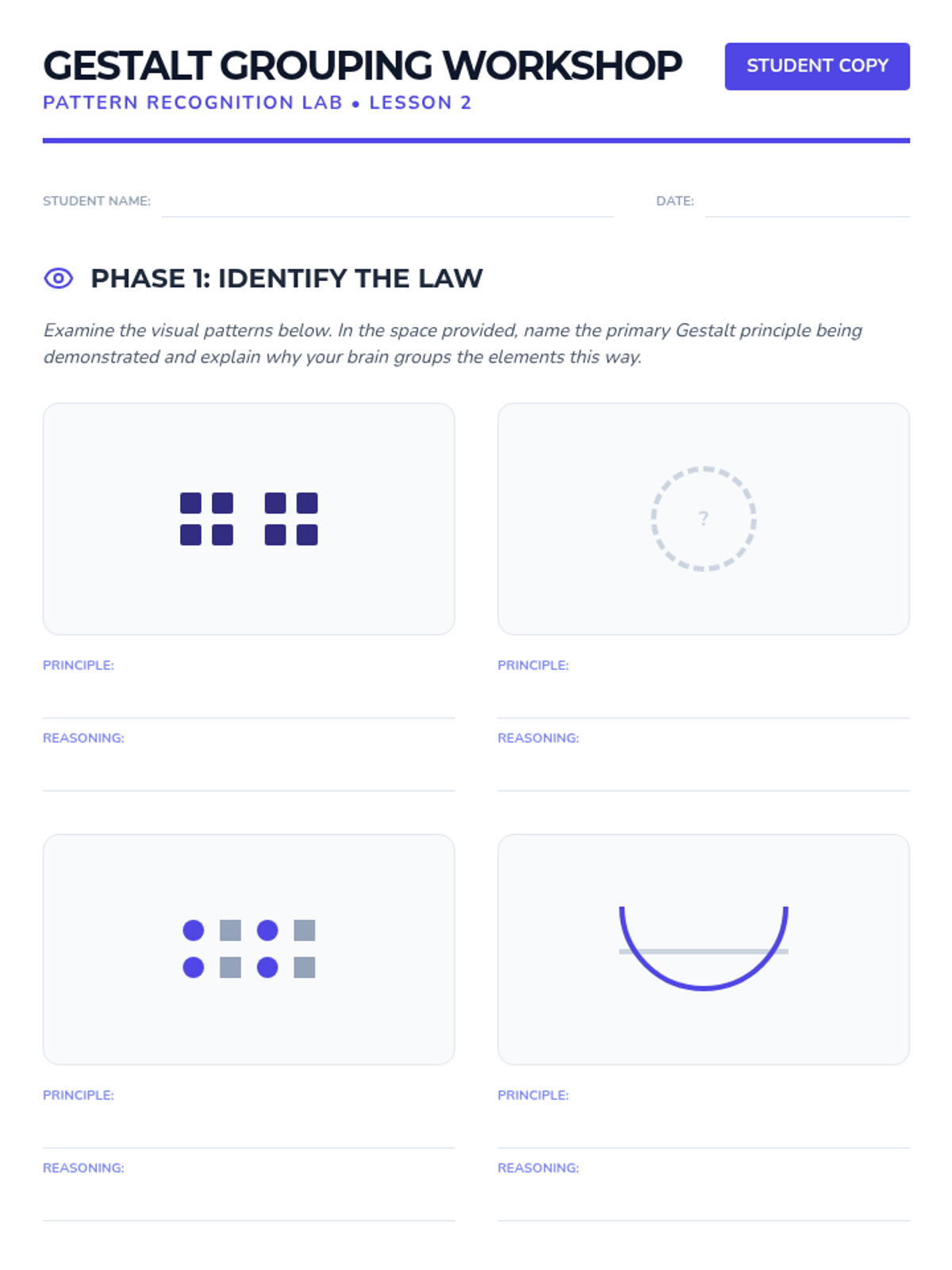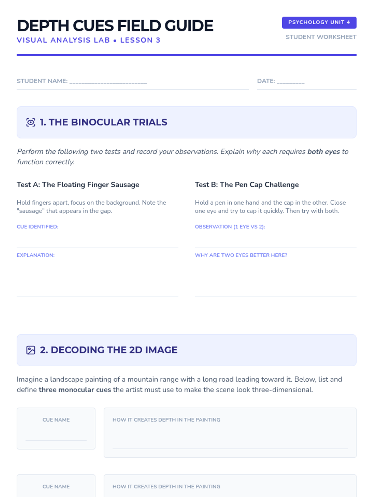 A comprehensive 5-lesson sequence for 11th-grade Psychology students exploring the cognitive mechanisms of visual perception. Students investigate sensation vs. perception, Gestalt grouping principles, depth cues, perceptual constancies, and the application of these concepts in real-world design.