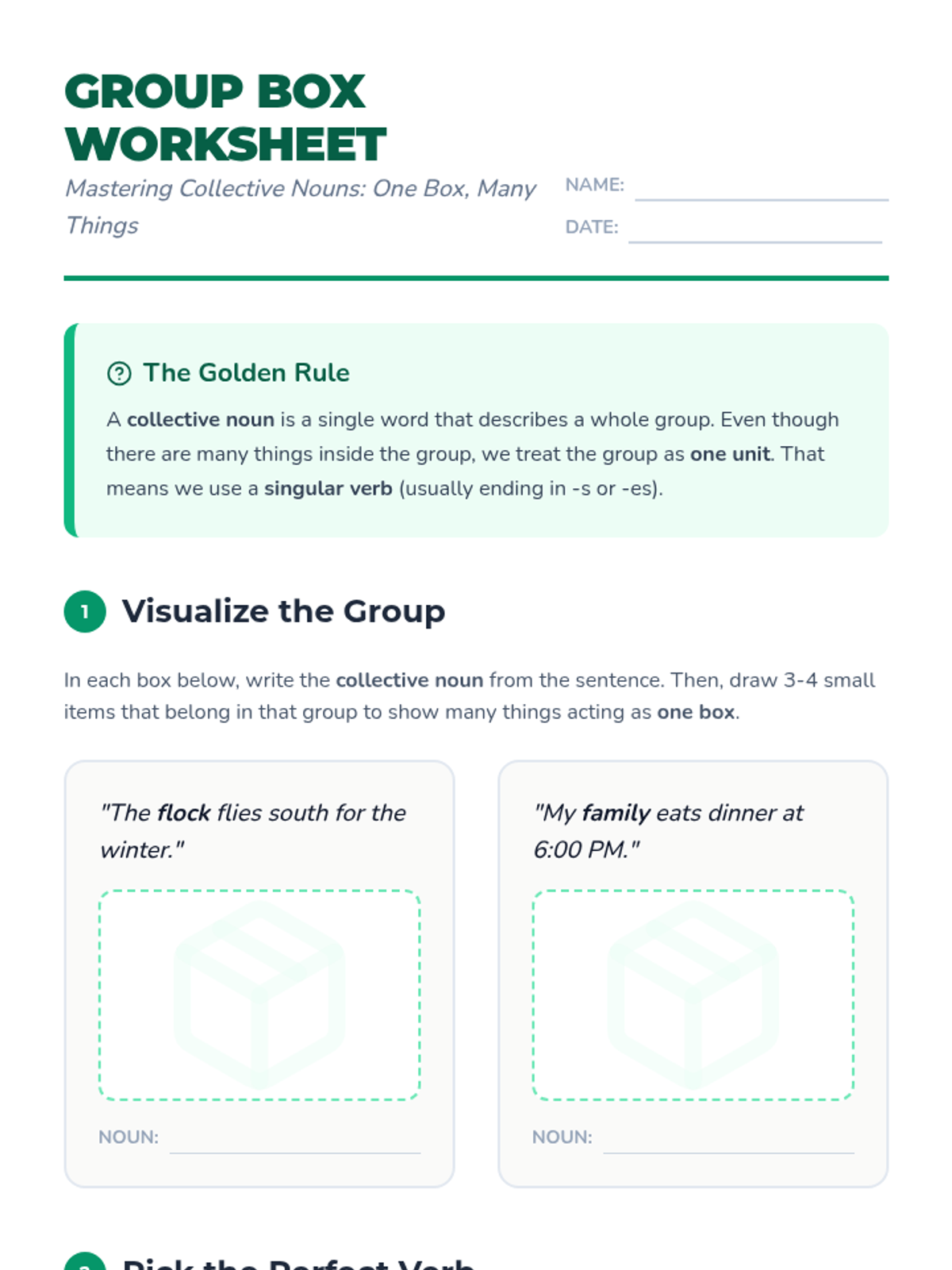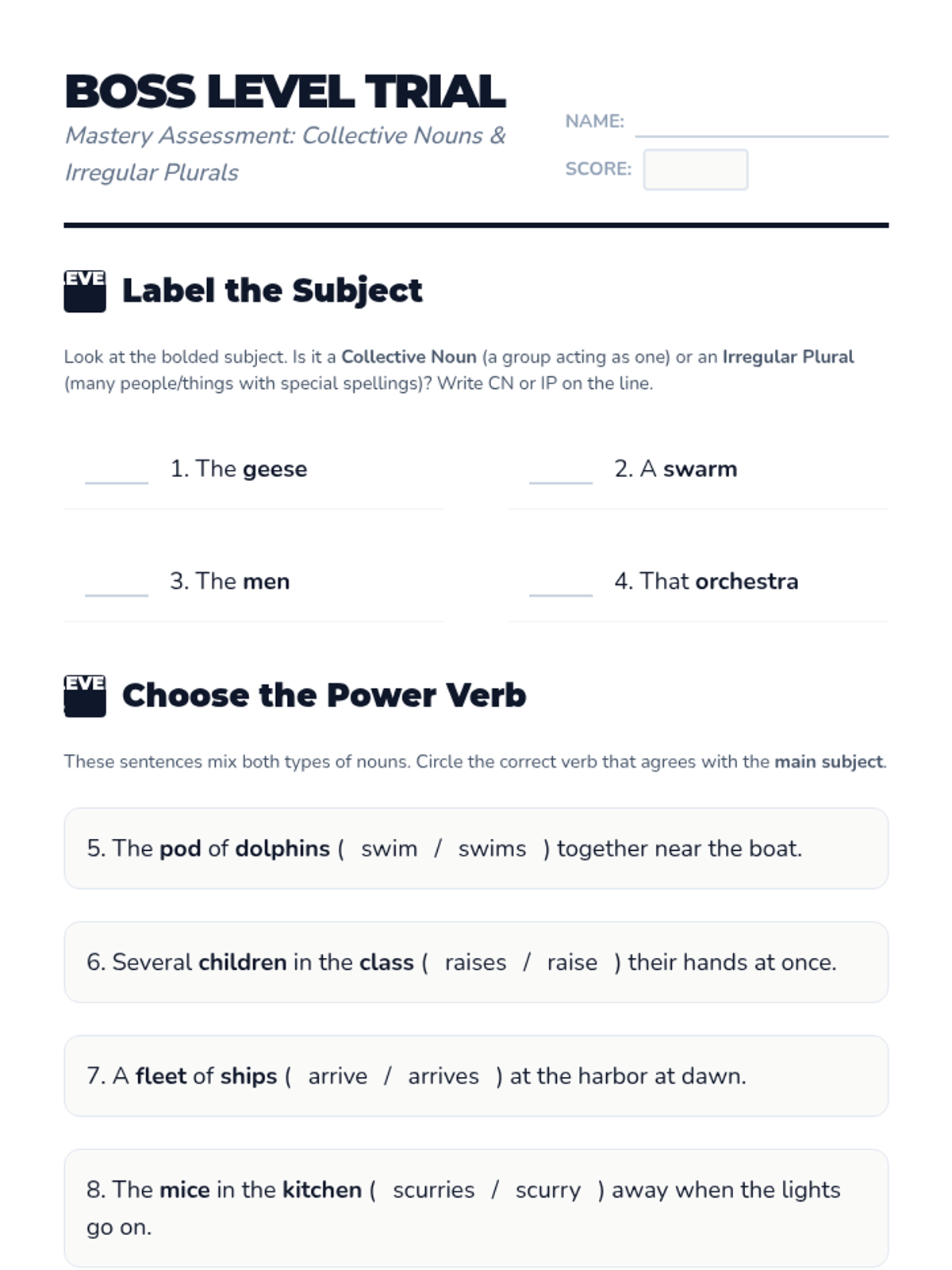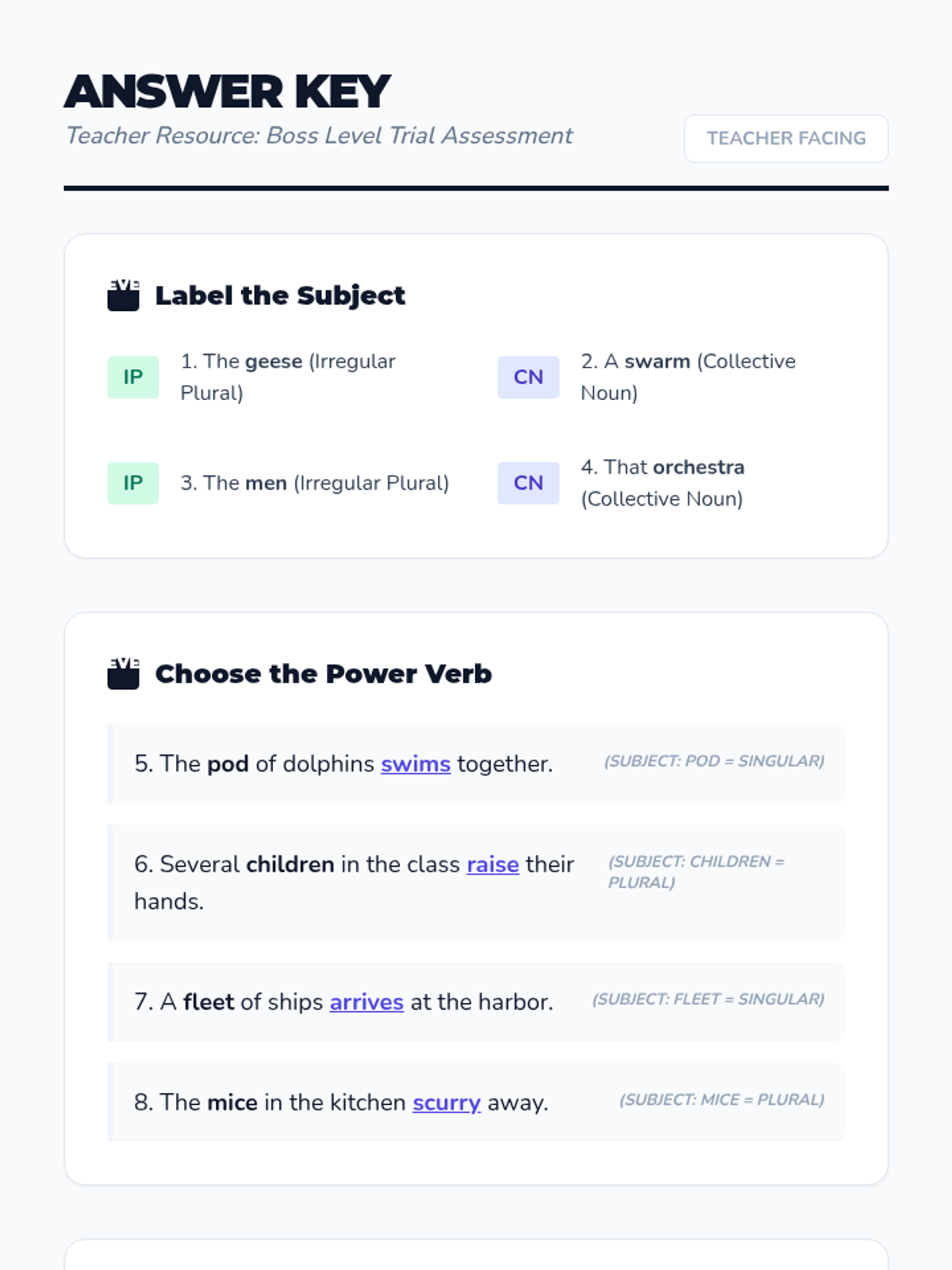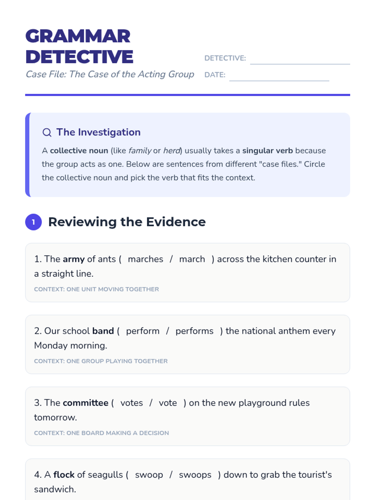 A 4th-grade sequence exploring the nuances of collective nouns (groups acting as one) and irregular plural nouns (words that change spelling without an 's'). Students progress from conceptualizing groups as singular units to writing consistent reports about wildlife and groups.