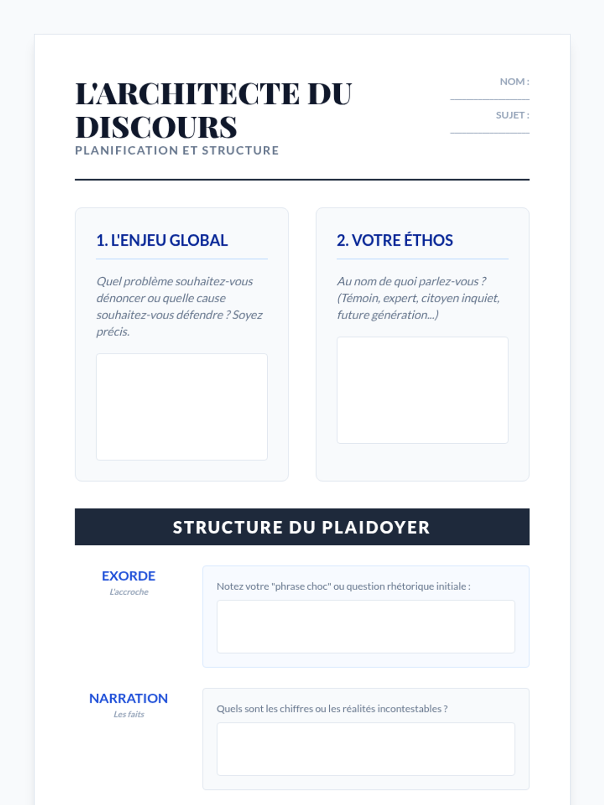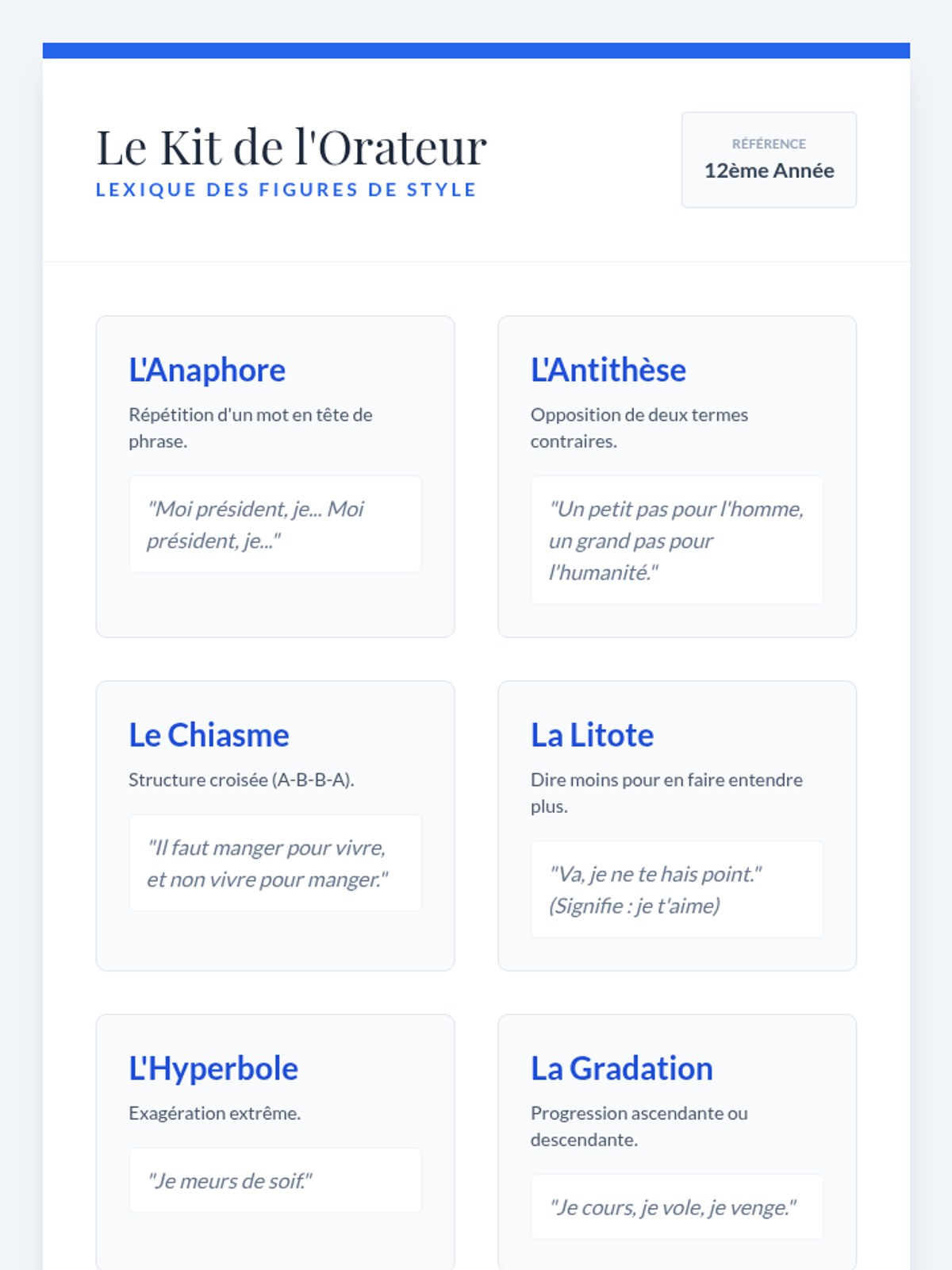A high-level French writing course for 12th graders focused on the mastery of rhetorical devices and political oratory. Students analyze historical French speeches and craft their own persuasive arguments on contemporary global issues.