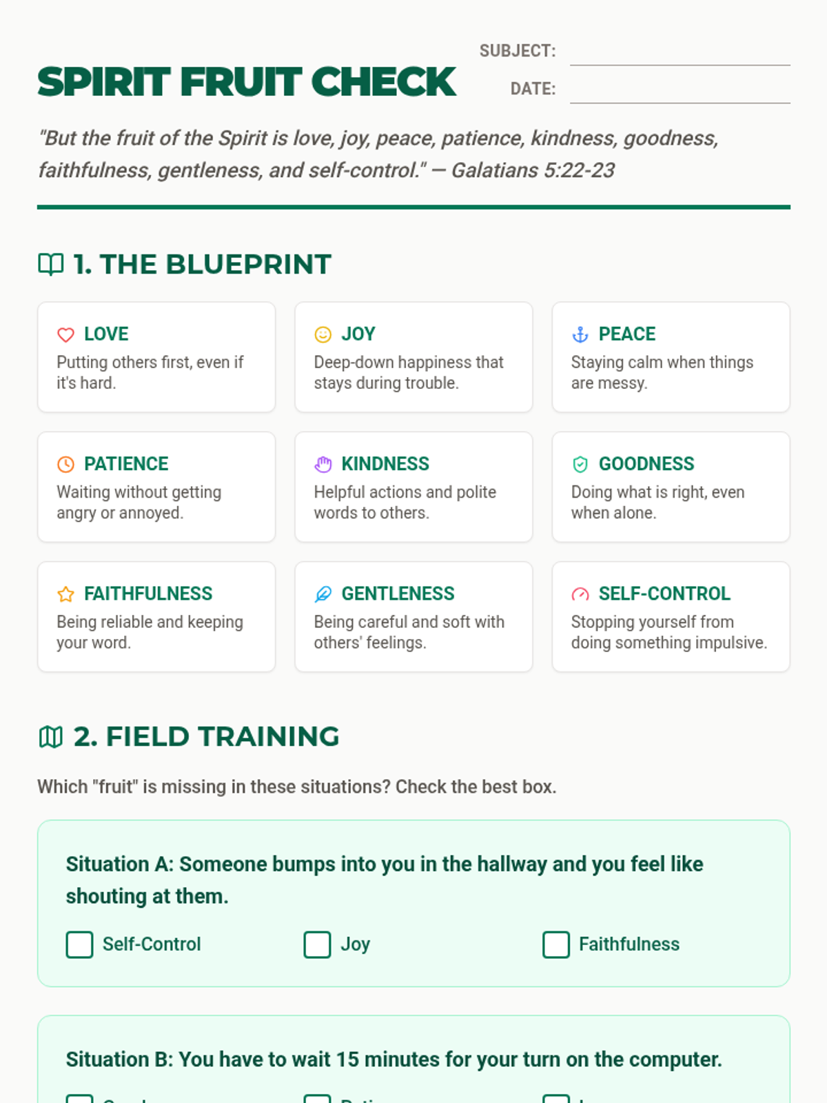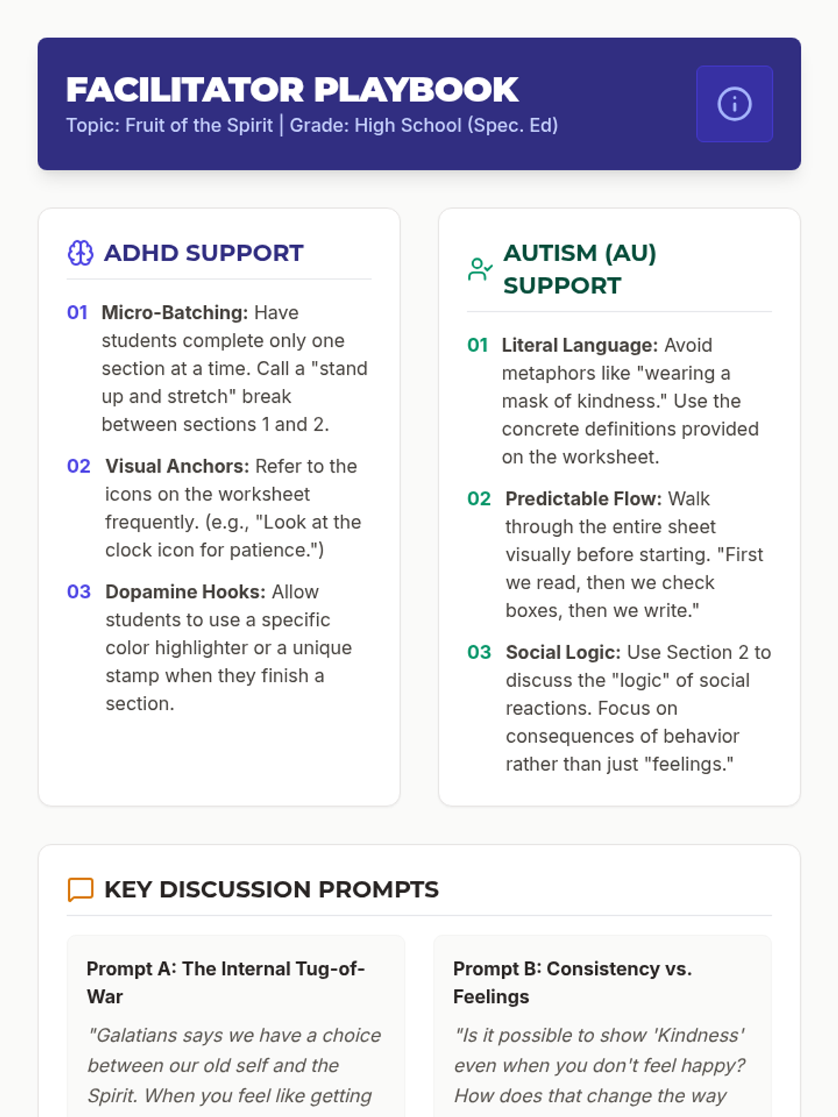 A study of the Book of Galatians tailored for high school boys with ADHD and Autism, focusing on practical application of spiritual growth and Christian freedom through concrete, literal teaching.