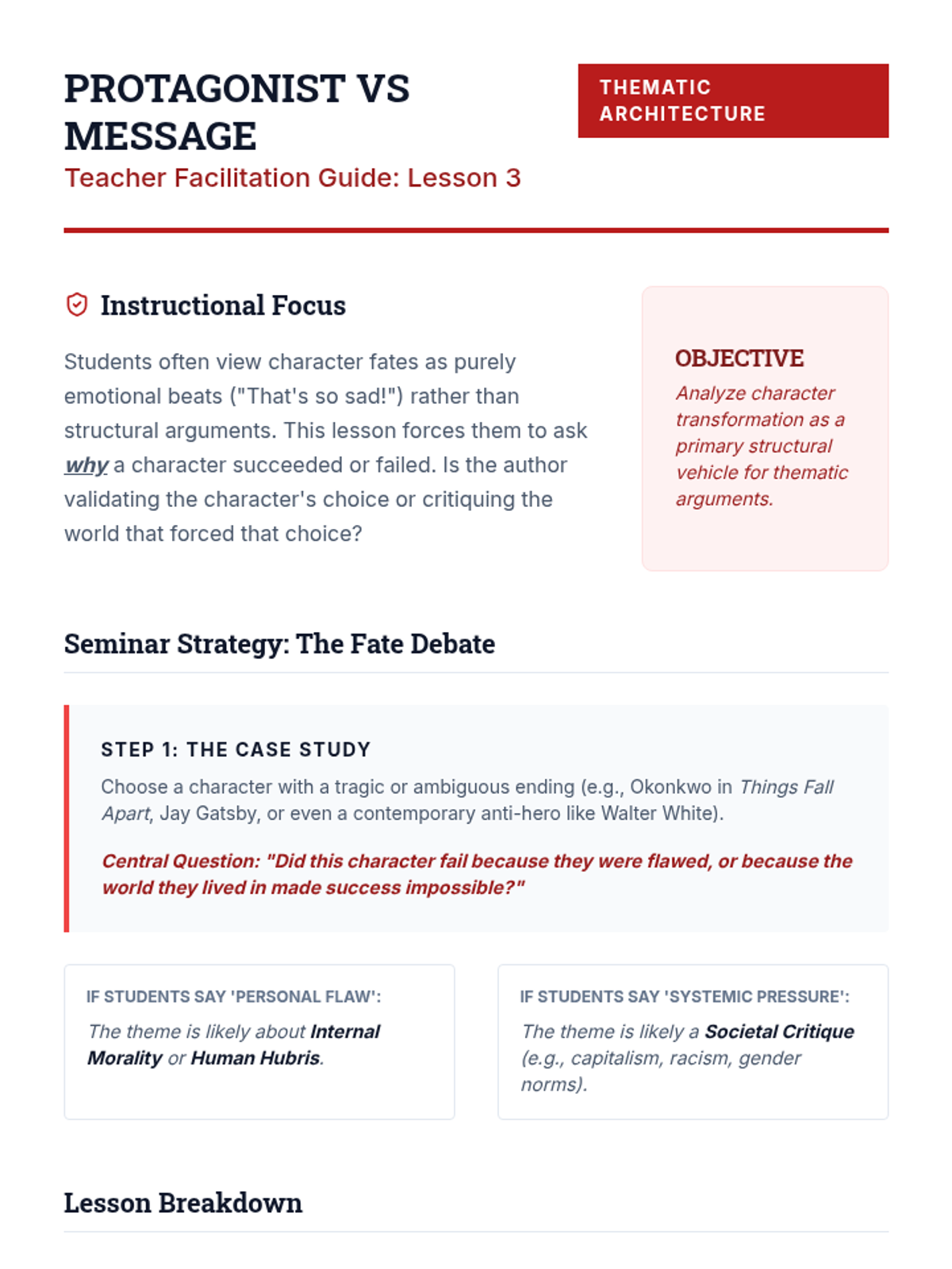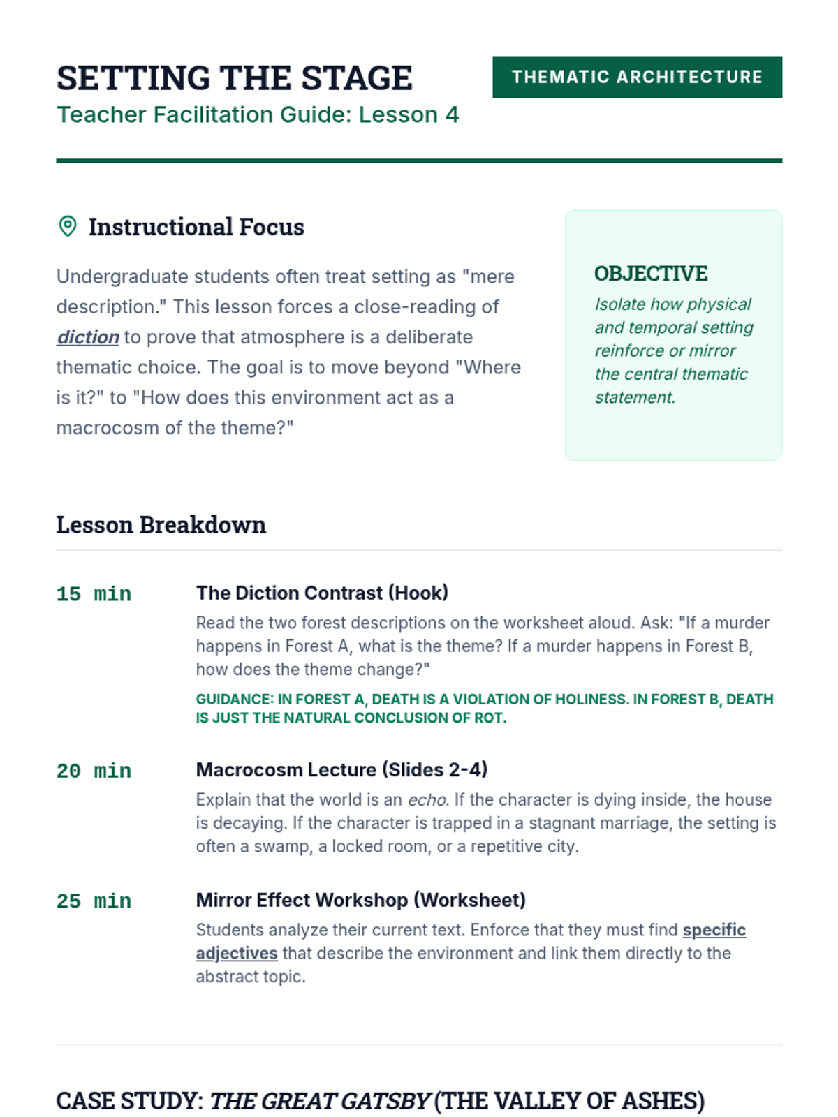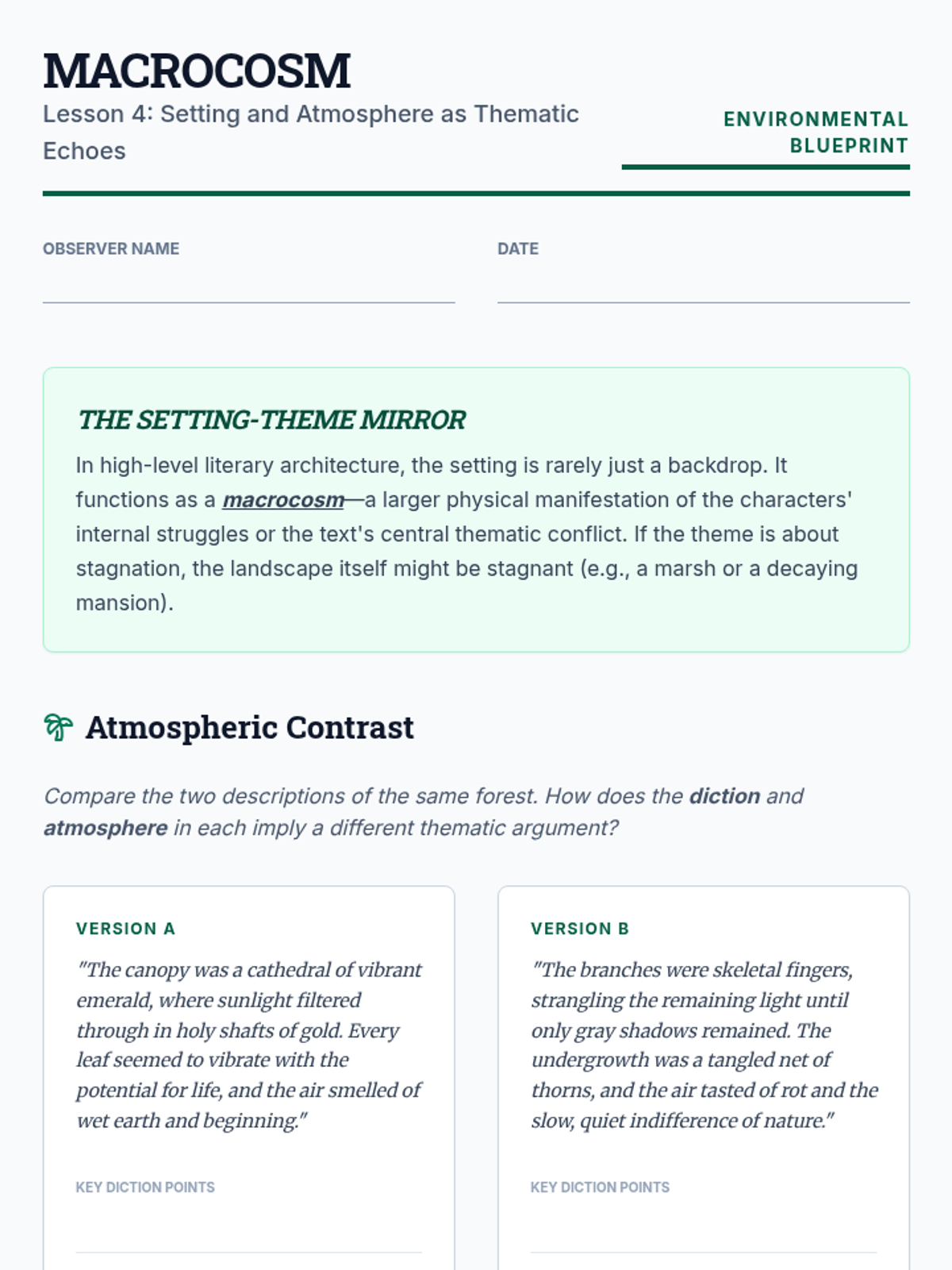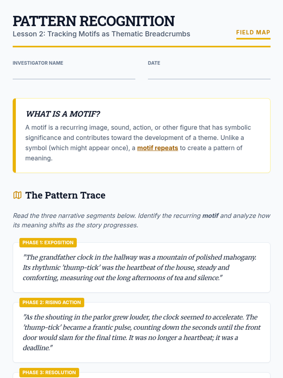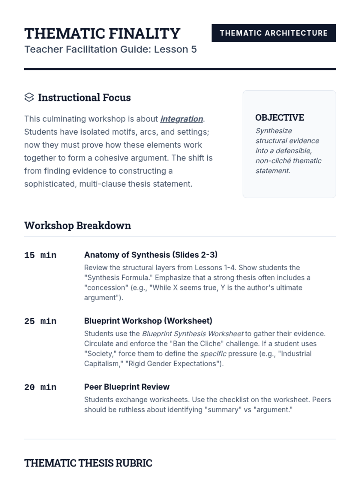 A sequence for undergraduate students focusing on the structural and stylistic architecture of theme. Students progress from distinguishing basic subject matter to synthesizing motifs, character arcs, and atmosphere into sophisticated thematic arguments.