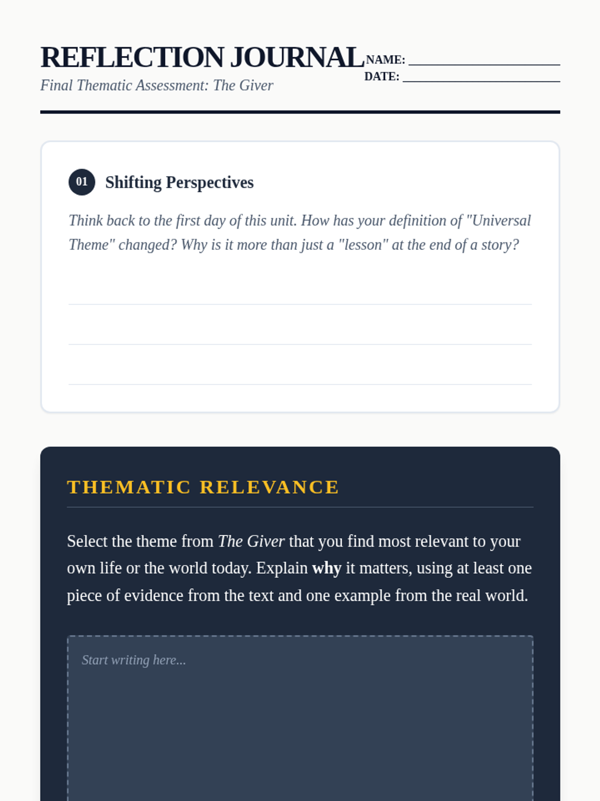 A comprehensive 6th-grade ELA unit focused on identifying, tracking, and discussing universal themes in literature. Students move from defining thematic statements to participating in high-level Socratic seminars, using 'The Giver' as a primary text.