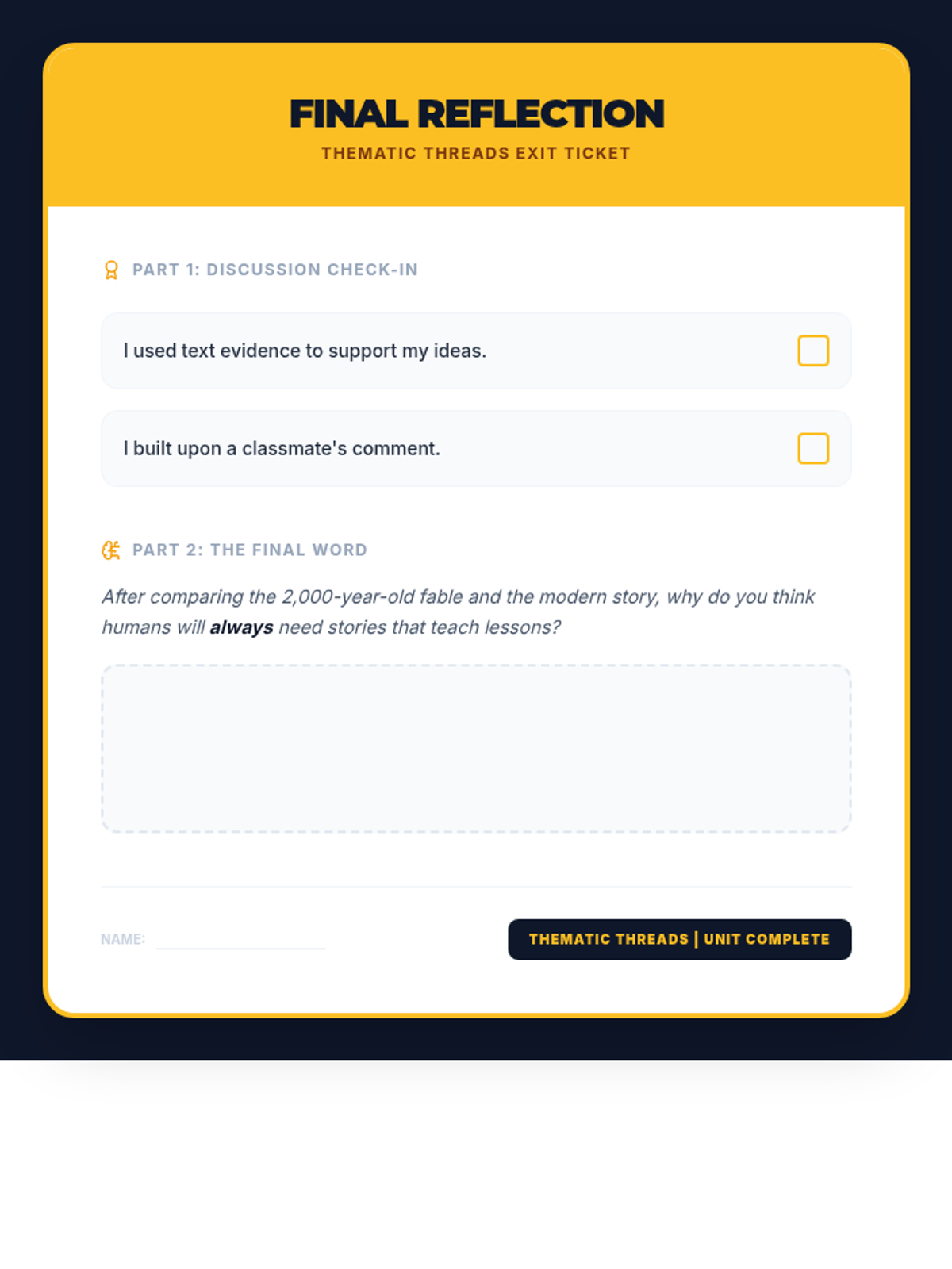 A 5-lesson unit where 5th-grade students explore how universal themes transcend genres, specifically comparing a classic fable and a contemporary realistic fiction story to see how they convey the same moral lesson.