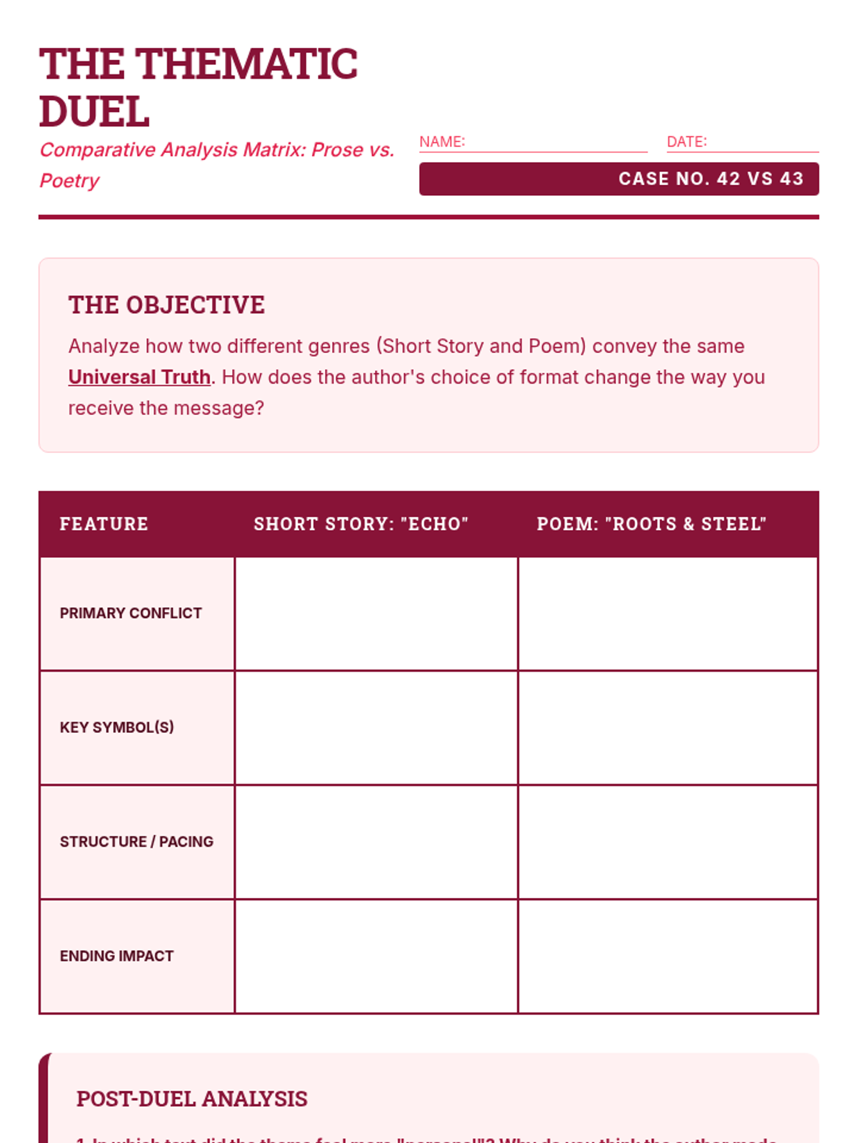 A comparative literature sequence for 7th grade students exploring how universal themes are expressed across different genres and cultures, from folklore to modern multimedia.