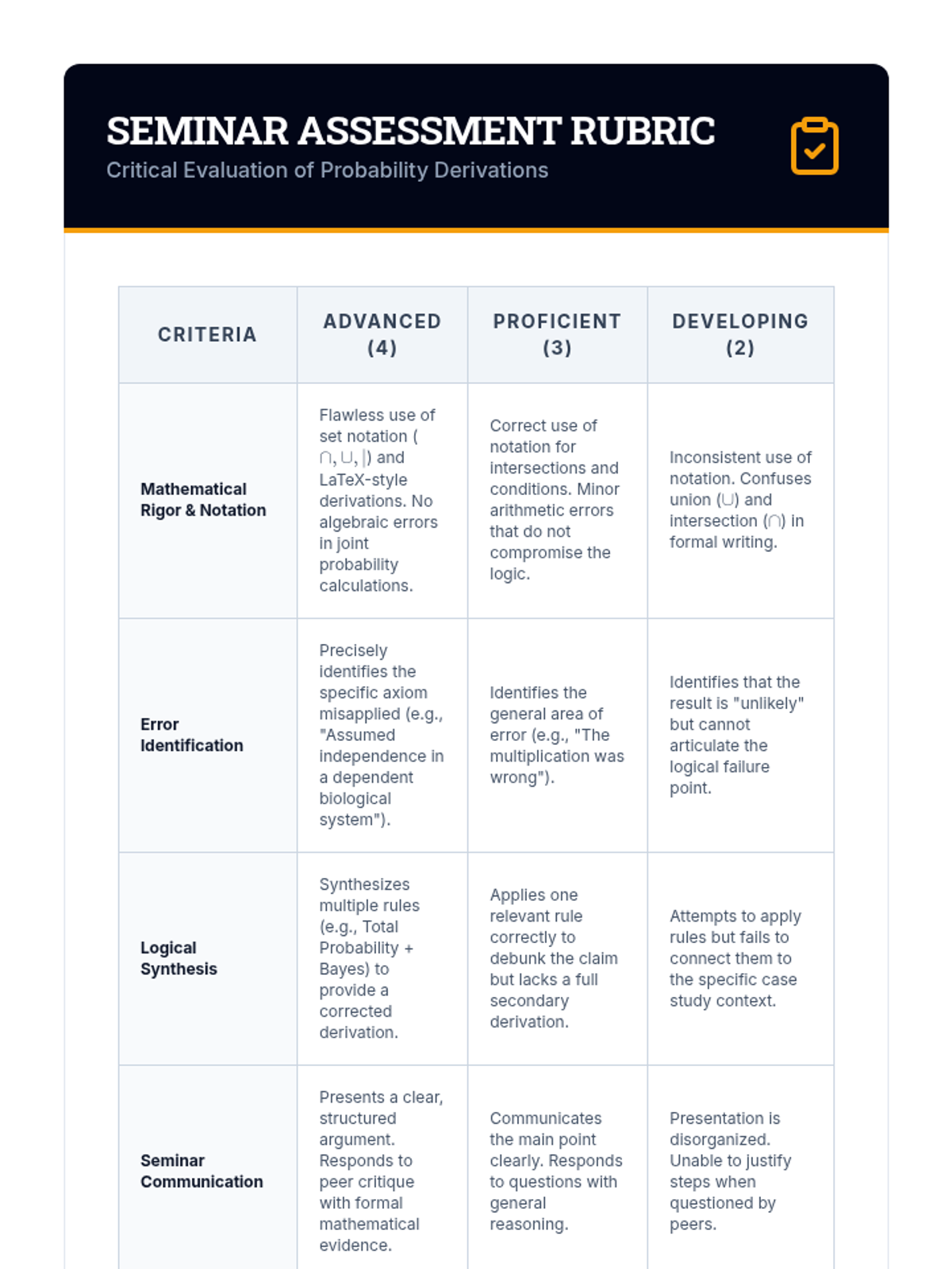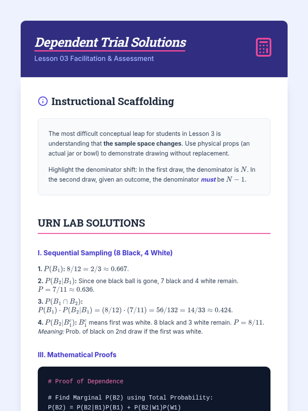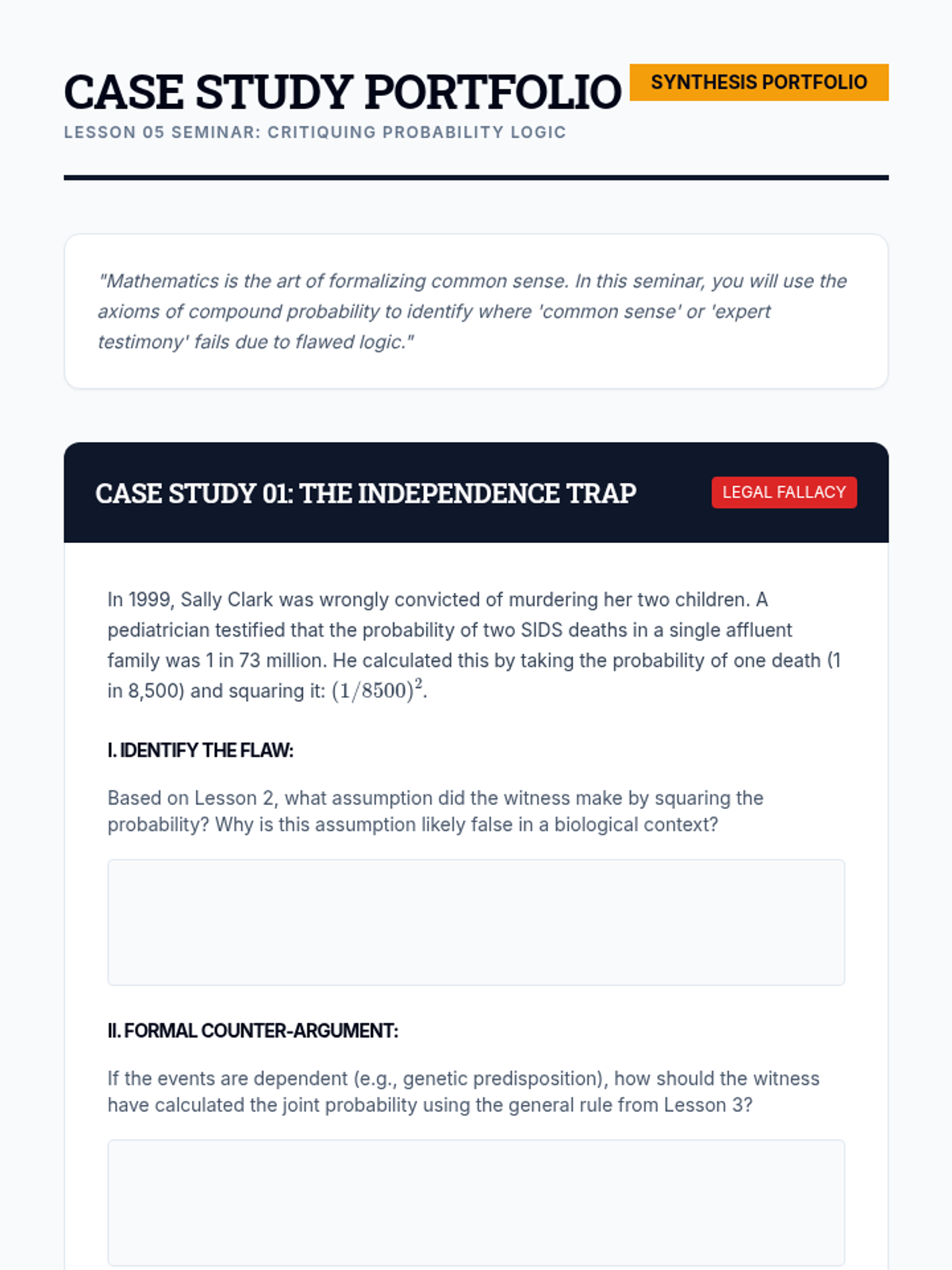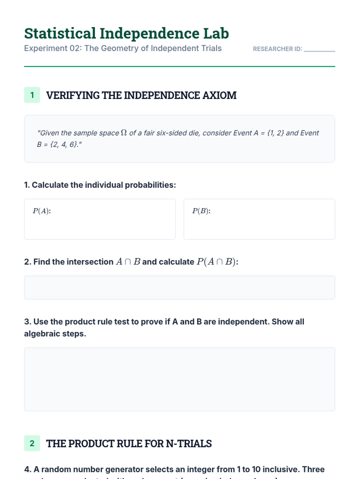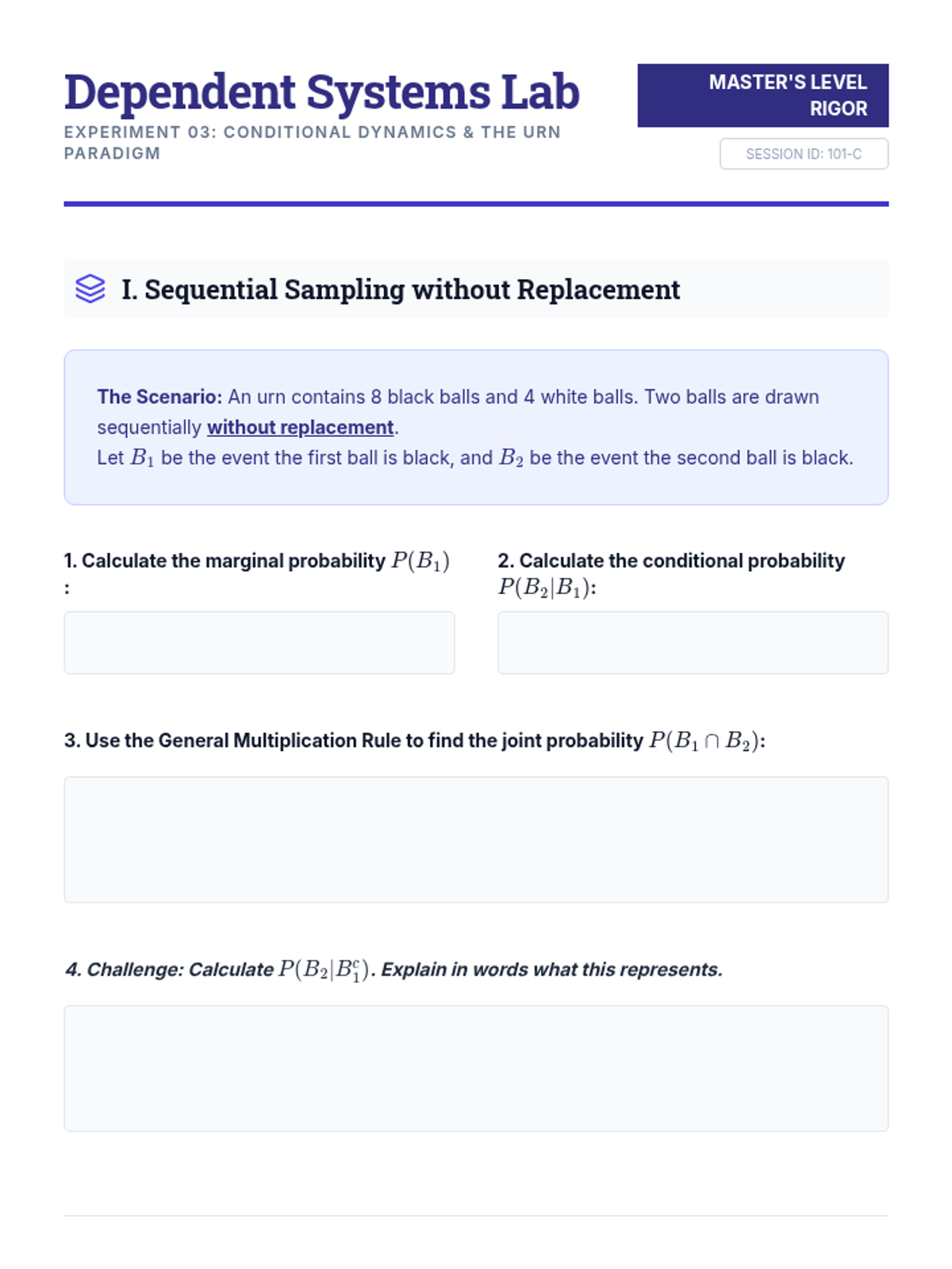 A rigorous undergraduate sequence exploring the mathematical axioms of compound probability, focusing on set theory, independence, and conditional logic.