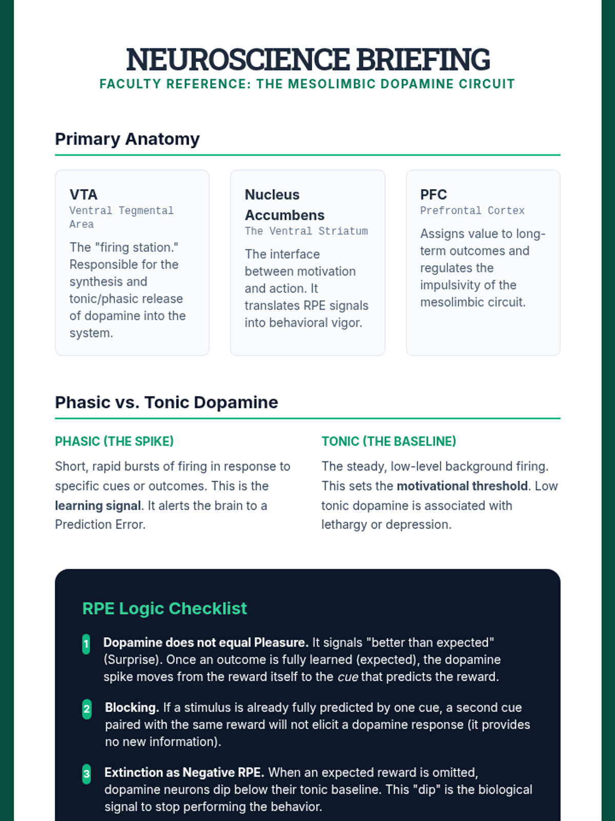 This graduate-level sequence explores the theoretical and neurobiological foundations of positive reinforcement, moving from historical operant principles to modern neuroscience and clinical assessment techniques.