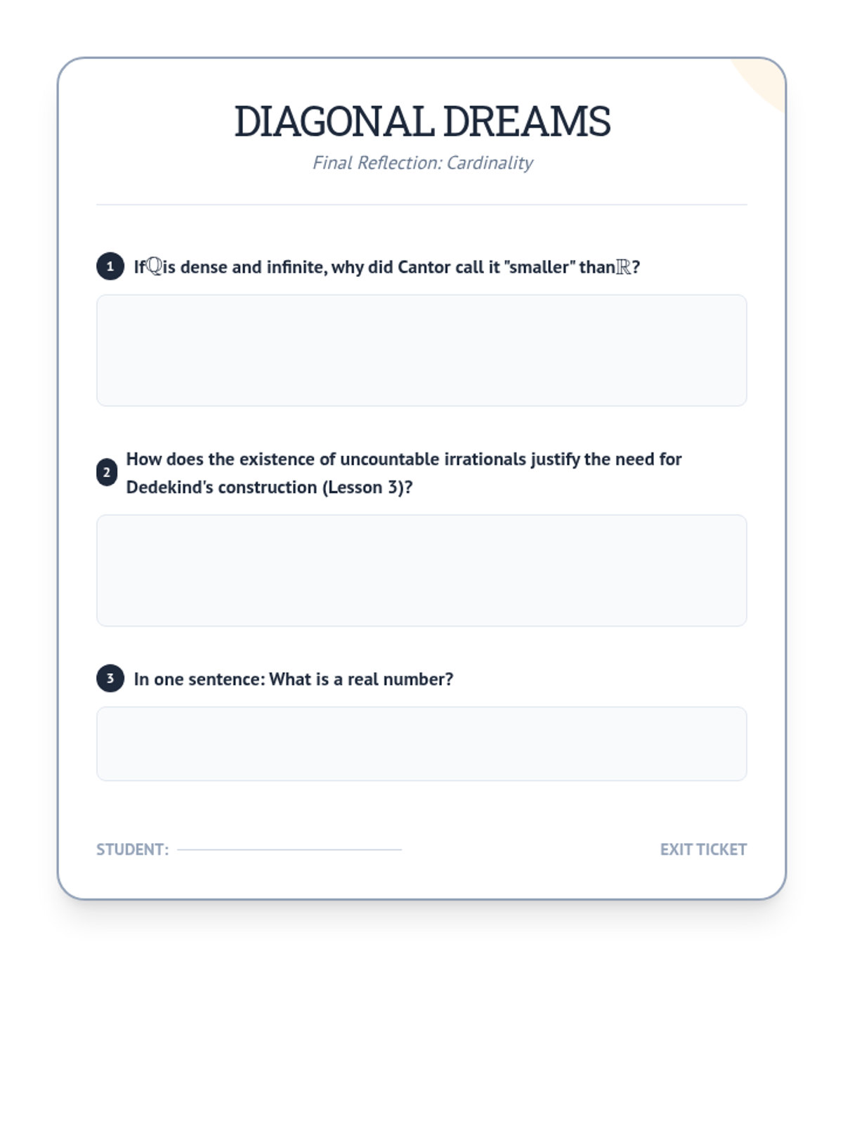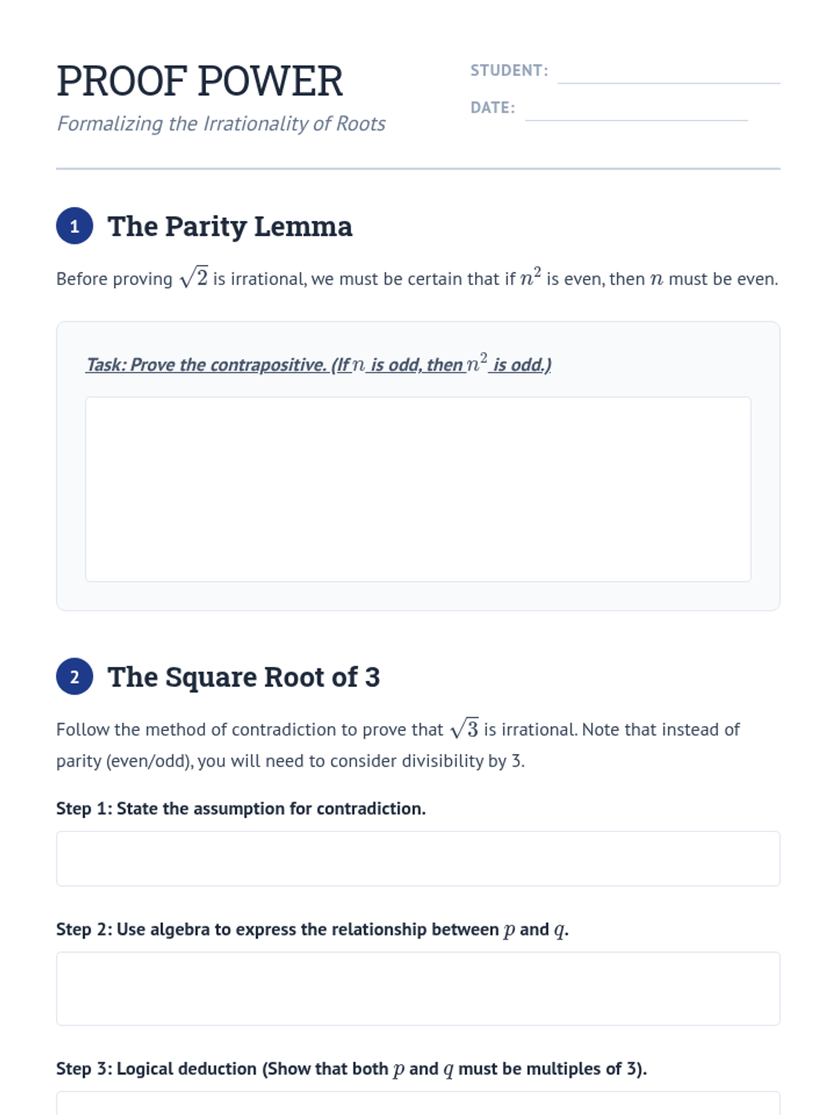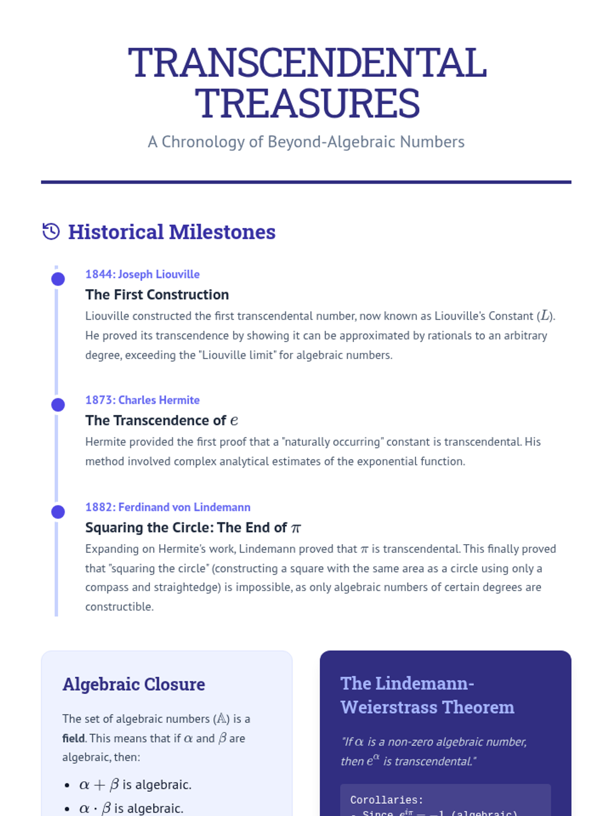 A rigorous undergraduate sequence exploring the theoretical construction of the real number system, focusing on the discovery, proof, and classification of irrational numbers from historical crises to Cantor's cardinality.