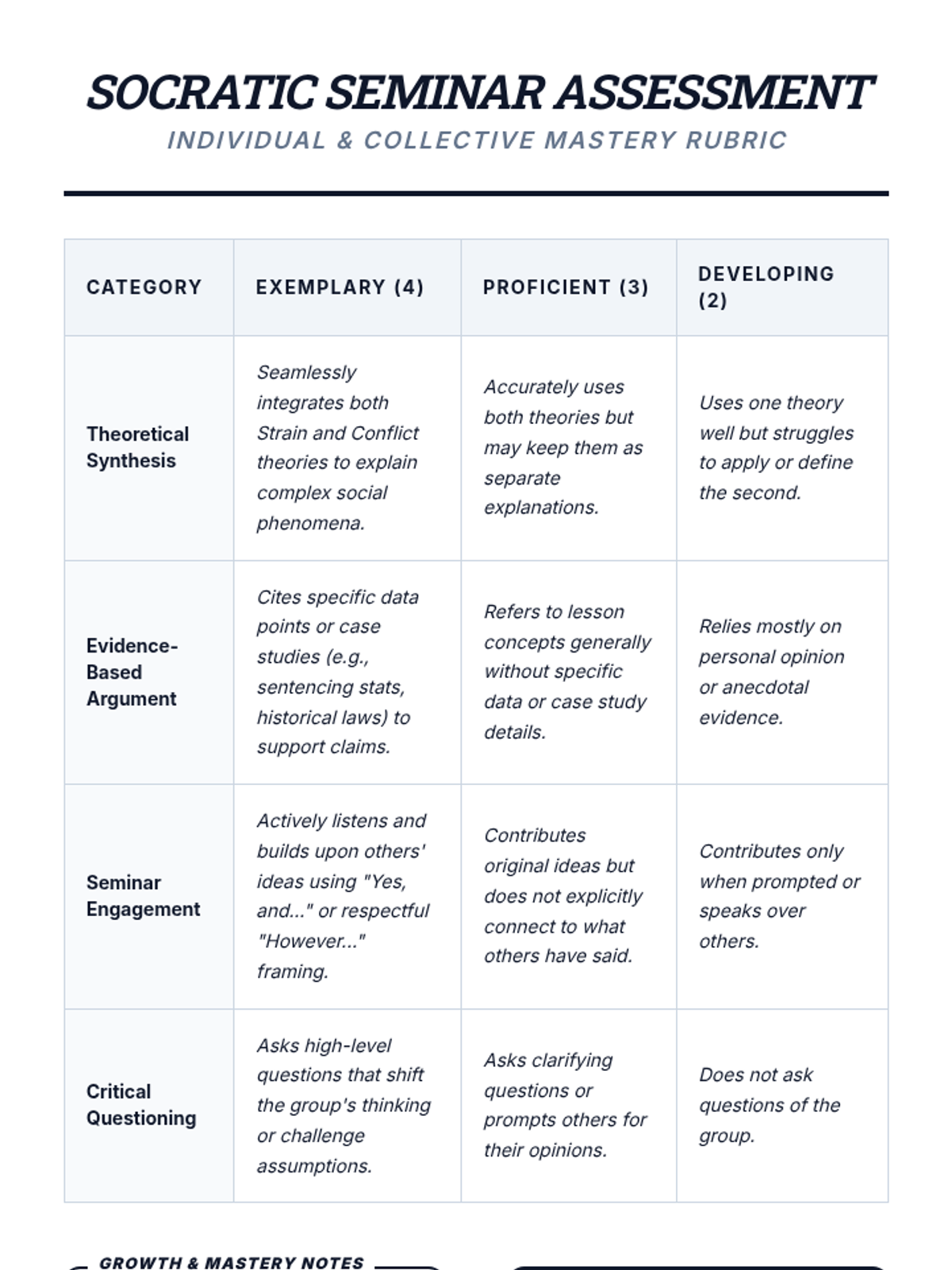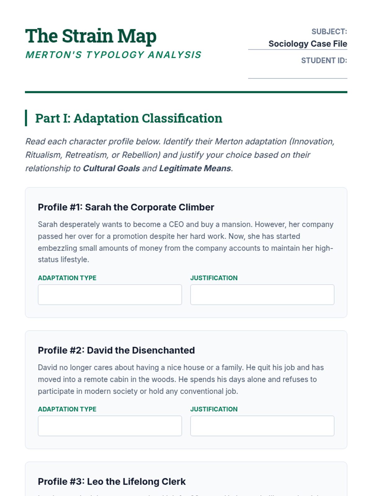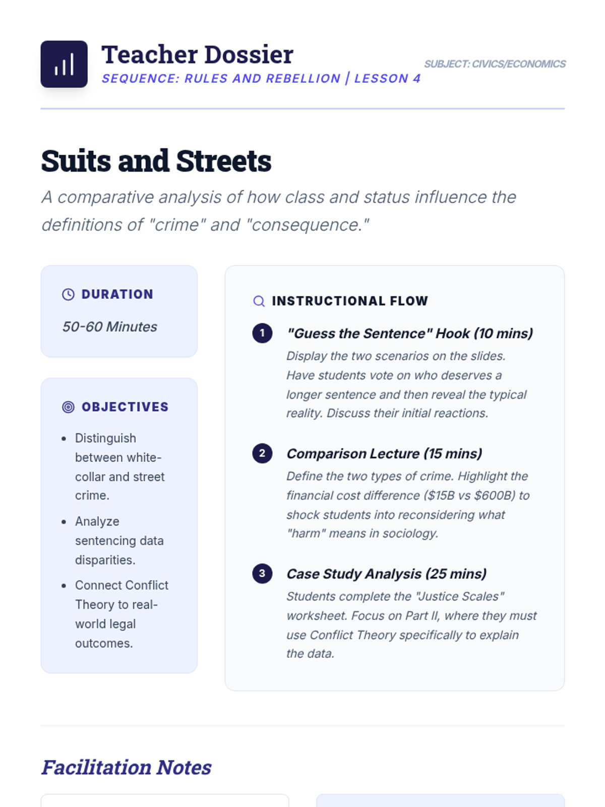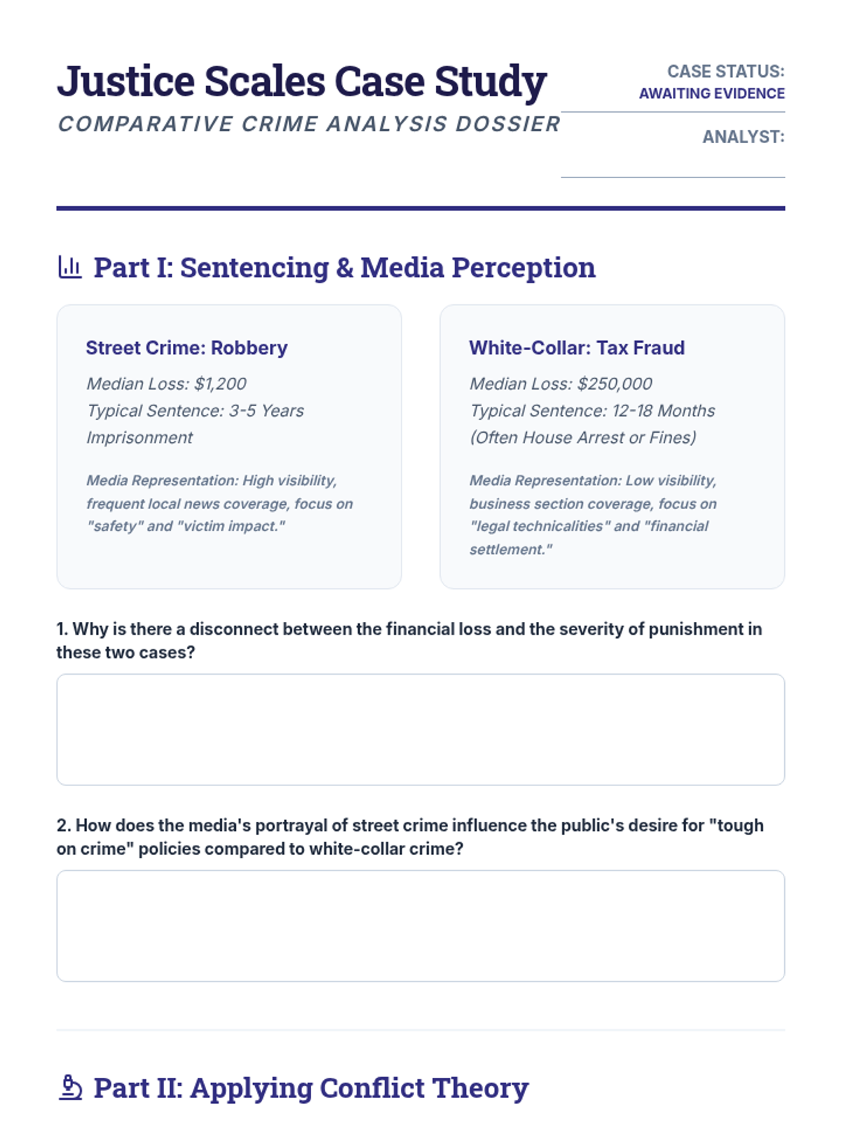 A comprehensive sociology sequence exploring how social structures and power dynamics influence deviant behavior through the lenses of Structural Functionalism and Conflict Theory. Students move from basic definitions of norms to complex analyses of systemic inequality in the justice system.