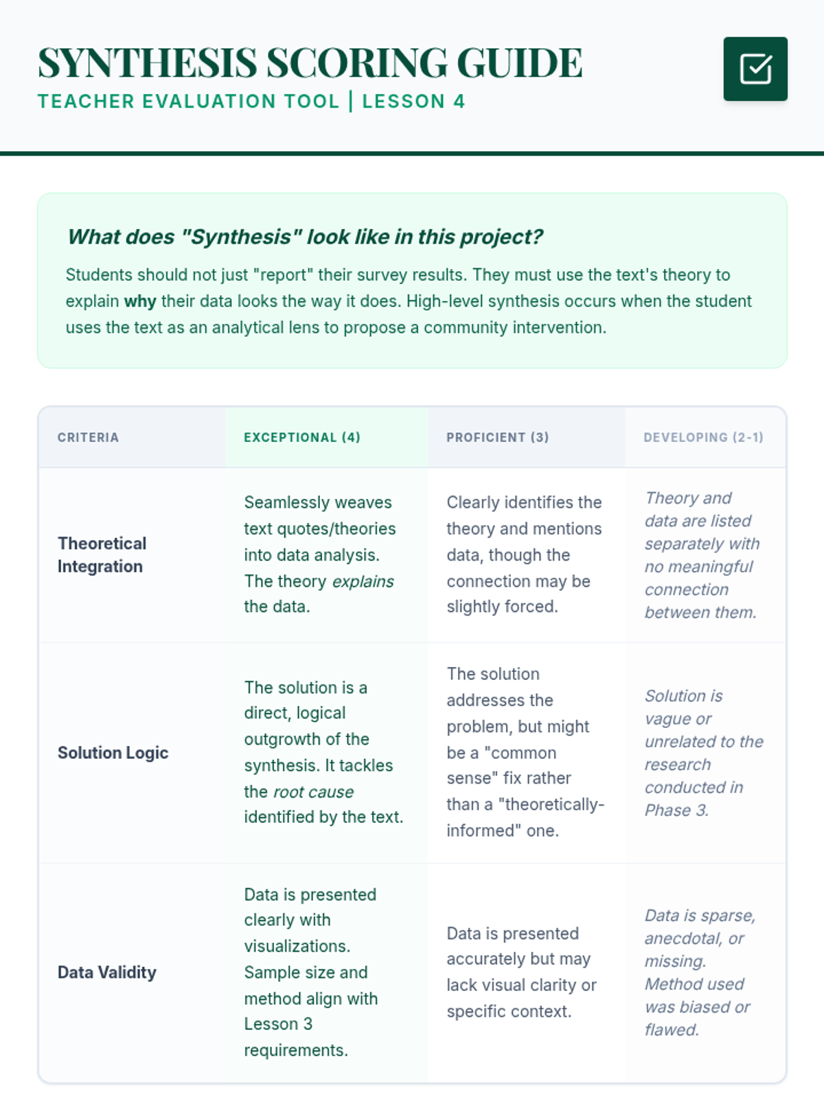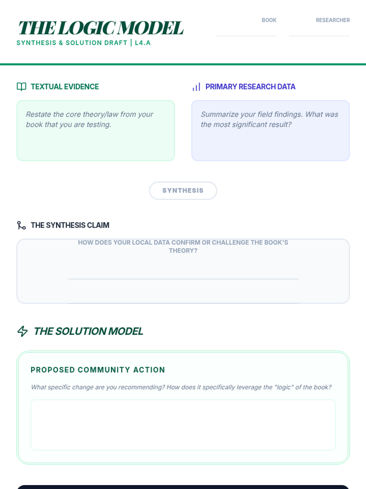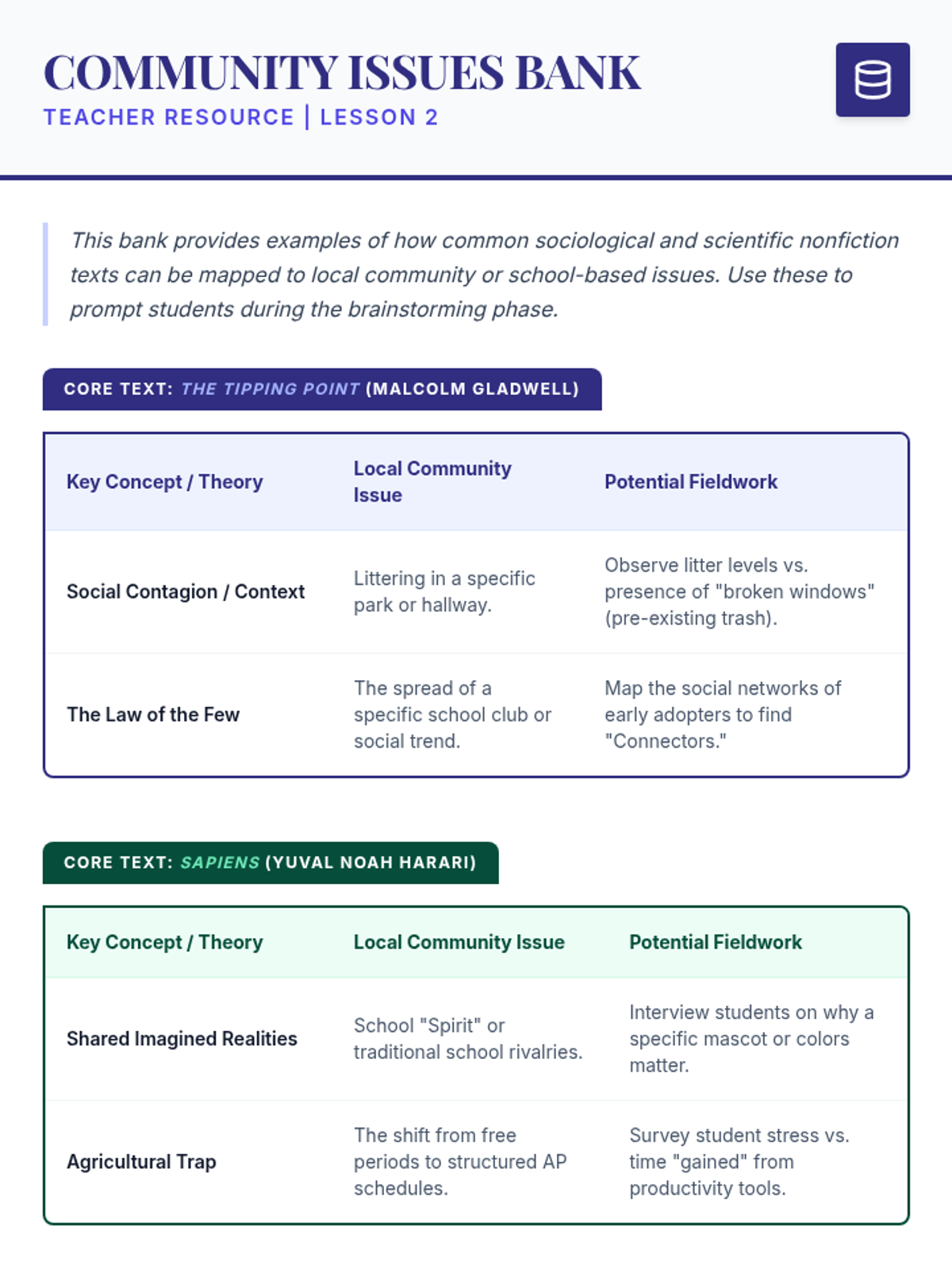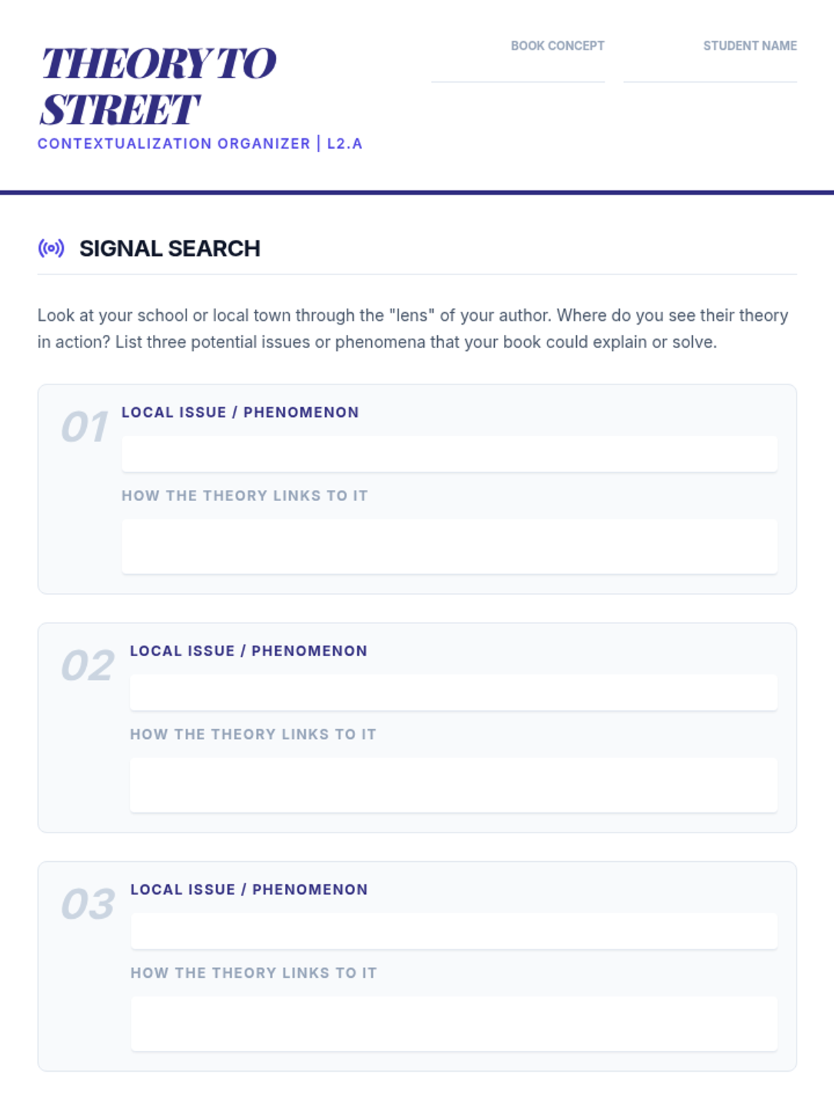 A project-based unit where 12th-grade students analyze theoretical concepts from complex nonfiction texts and apply them to solve real-world community issues through primary research and strategic proposals.