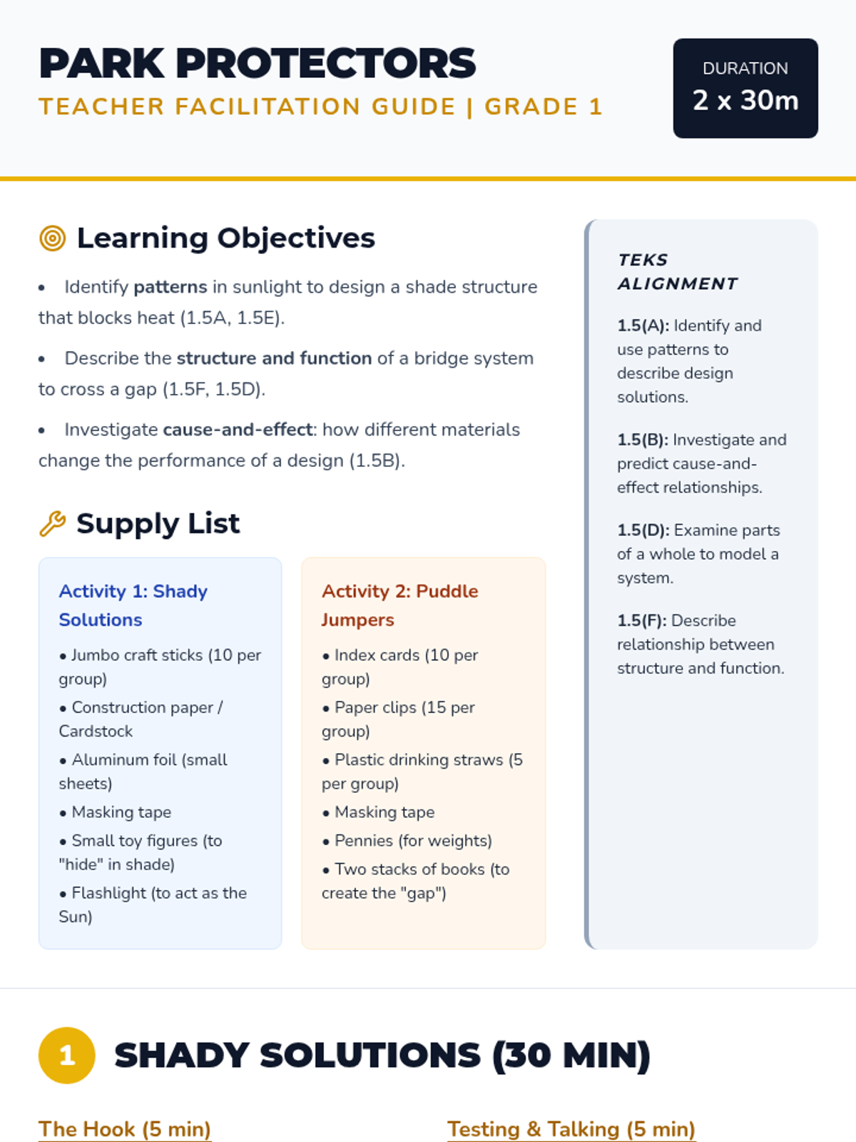A comprehensive STEM sequence covering thermal energy and matter changes for grades 1-5, featuring engineering challenges and real-world problem-solving aligned with Texas TEKS. Students investigate reversible and non-reversible changes, states of matter, and thermal energy transfer through hands-on experiments.