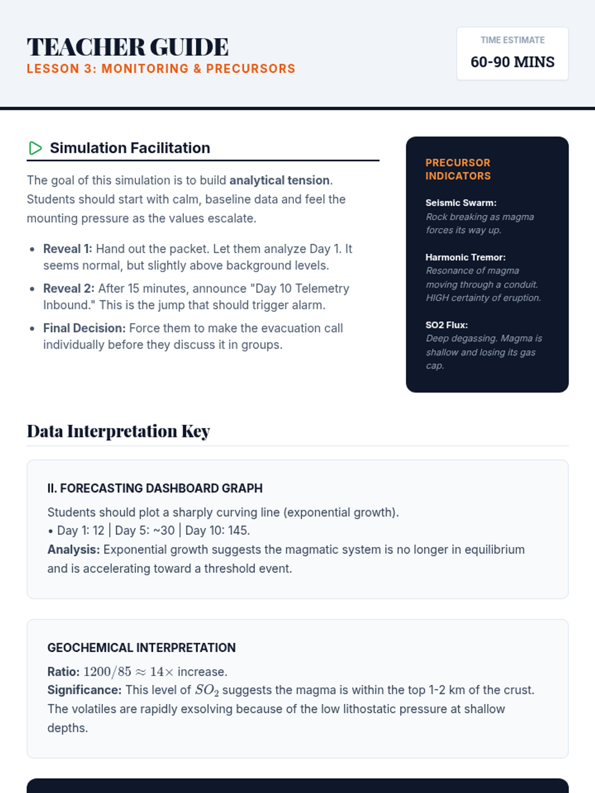 A deep dive into the geochemistry, thermodynamics, and monitoring of volcanic systems for 12th-grade students. This sequence explores magma composition, hazard mapping, real-time monitoring simulations, and the global climatic impacts of volcanic activity.