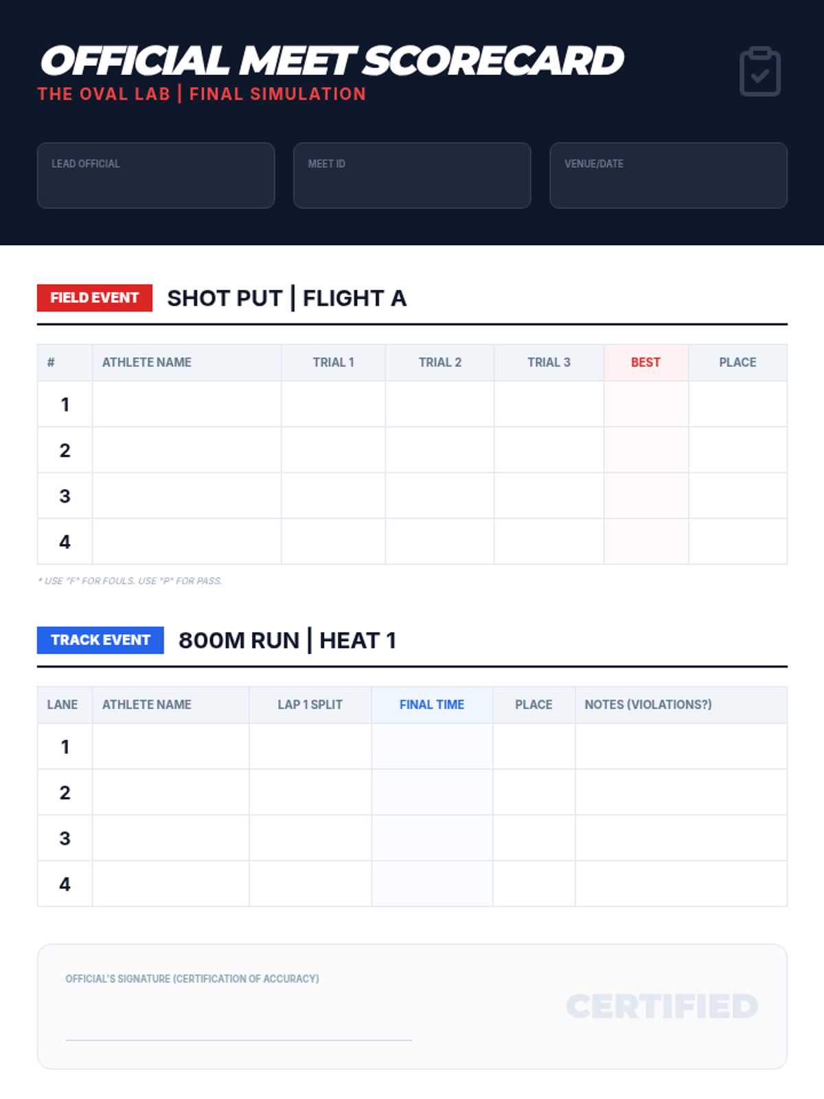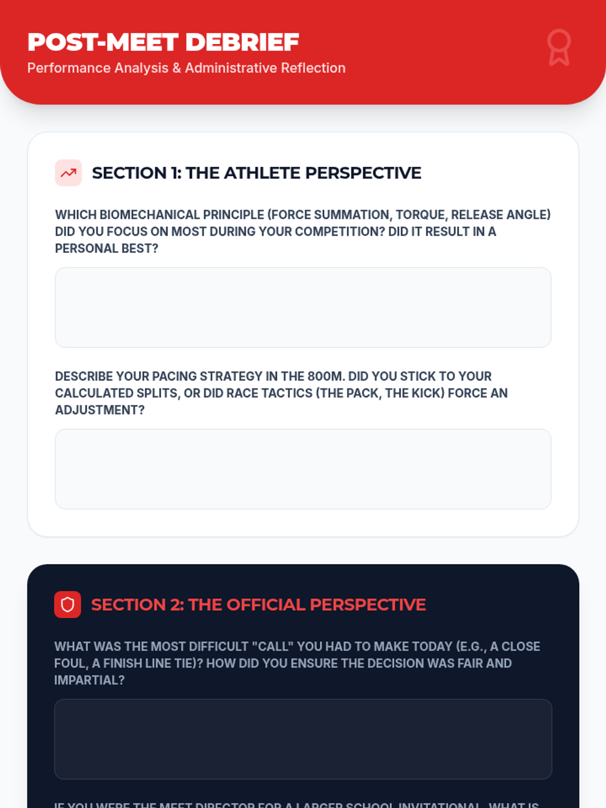 A 12th-grade physical education sequence focusing on the biomechanics of throwing events (Shot Put and Discus), the strategic nuances of middle-distance running, and the administrative skills required to officiate and manage a track meet. Students transition from athletes to sports scientists and officials.