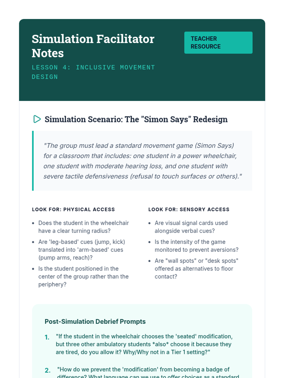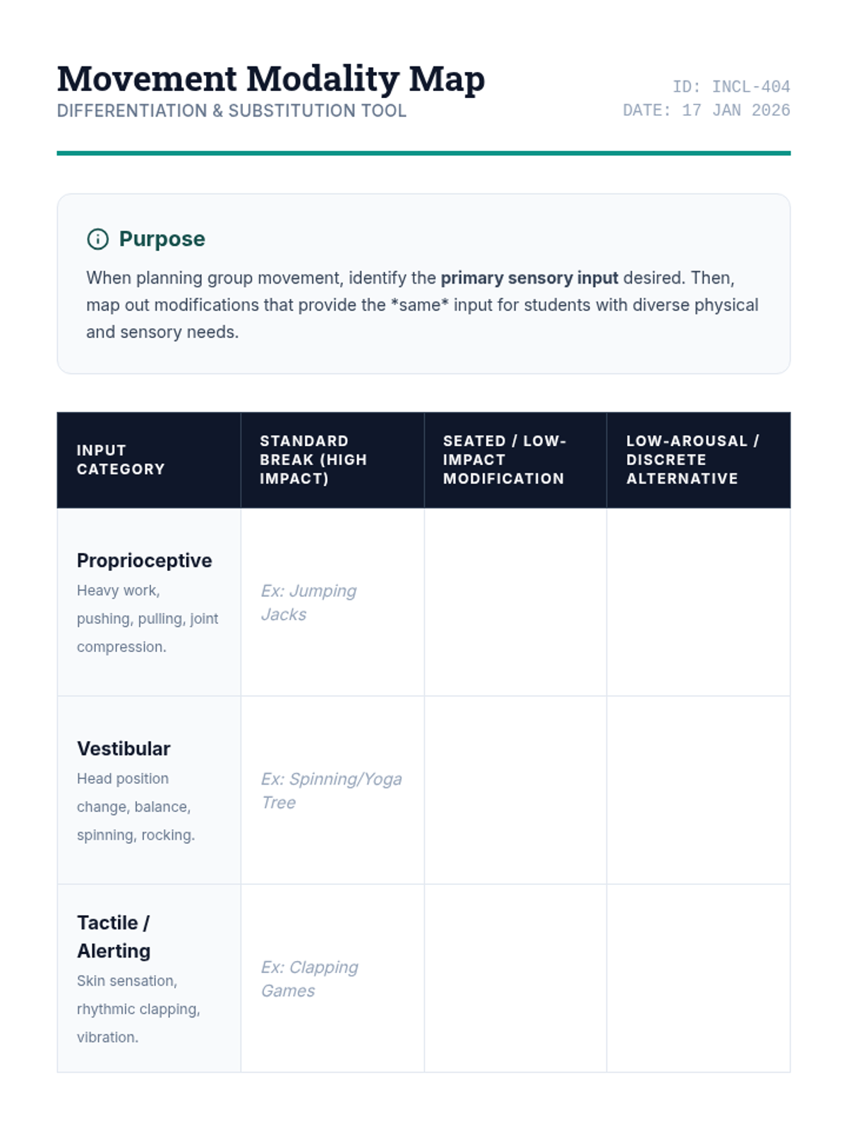 This sequence equips graduate-level educators and specialists with the skills to implement tiered movement protocols in schools. It covers universal design, environmental engineering, transition management, inclusive differentiation, and crisis prevention to ensure movement breaks enhance rather than disrupt the learning environment.