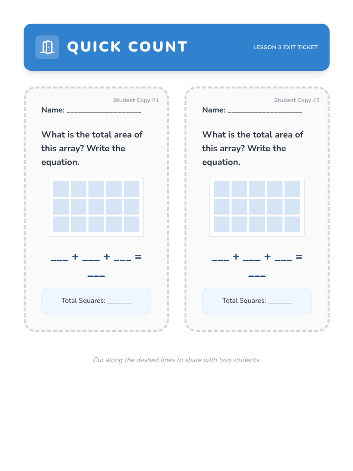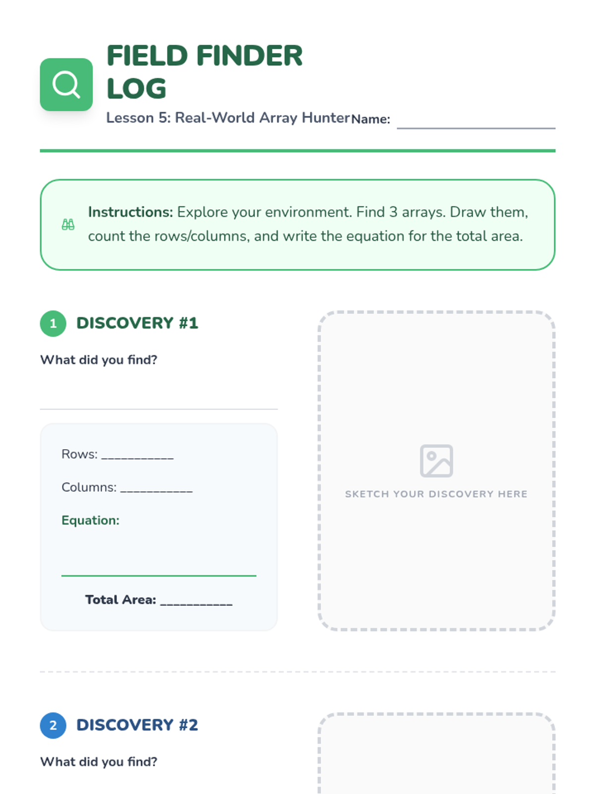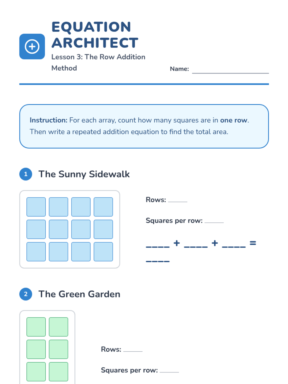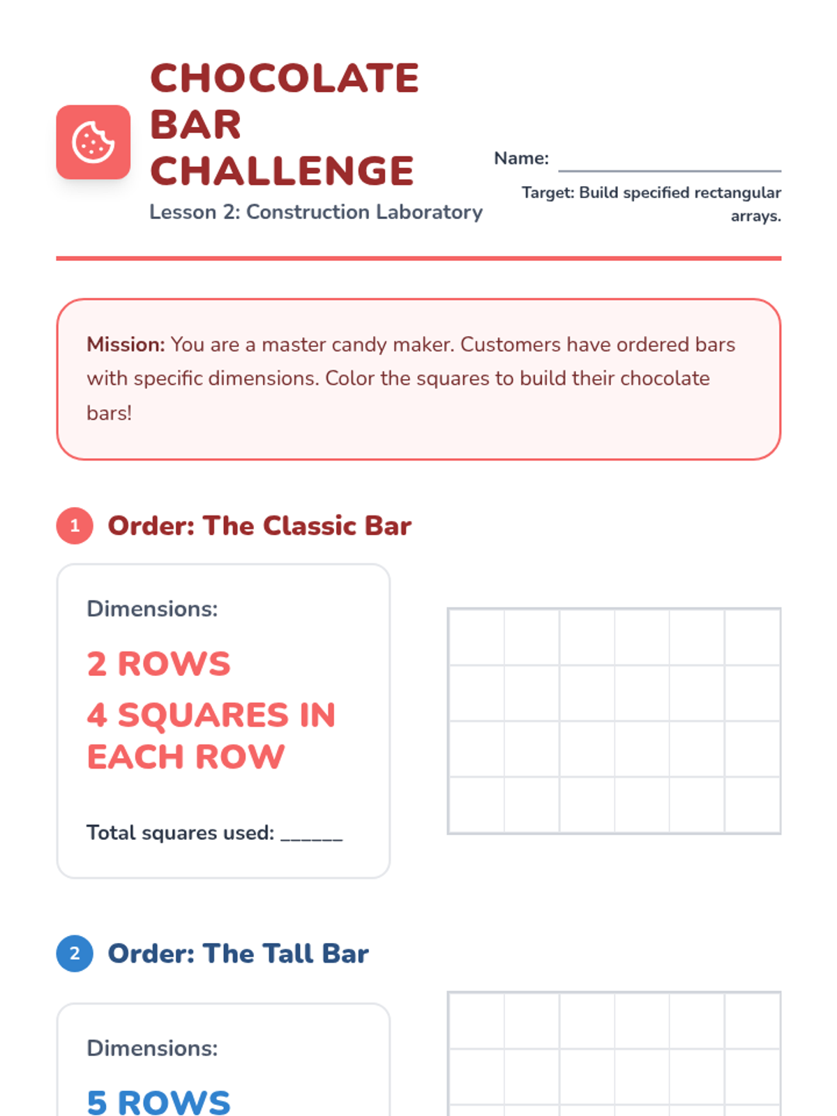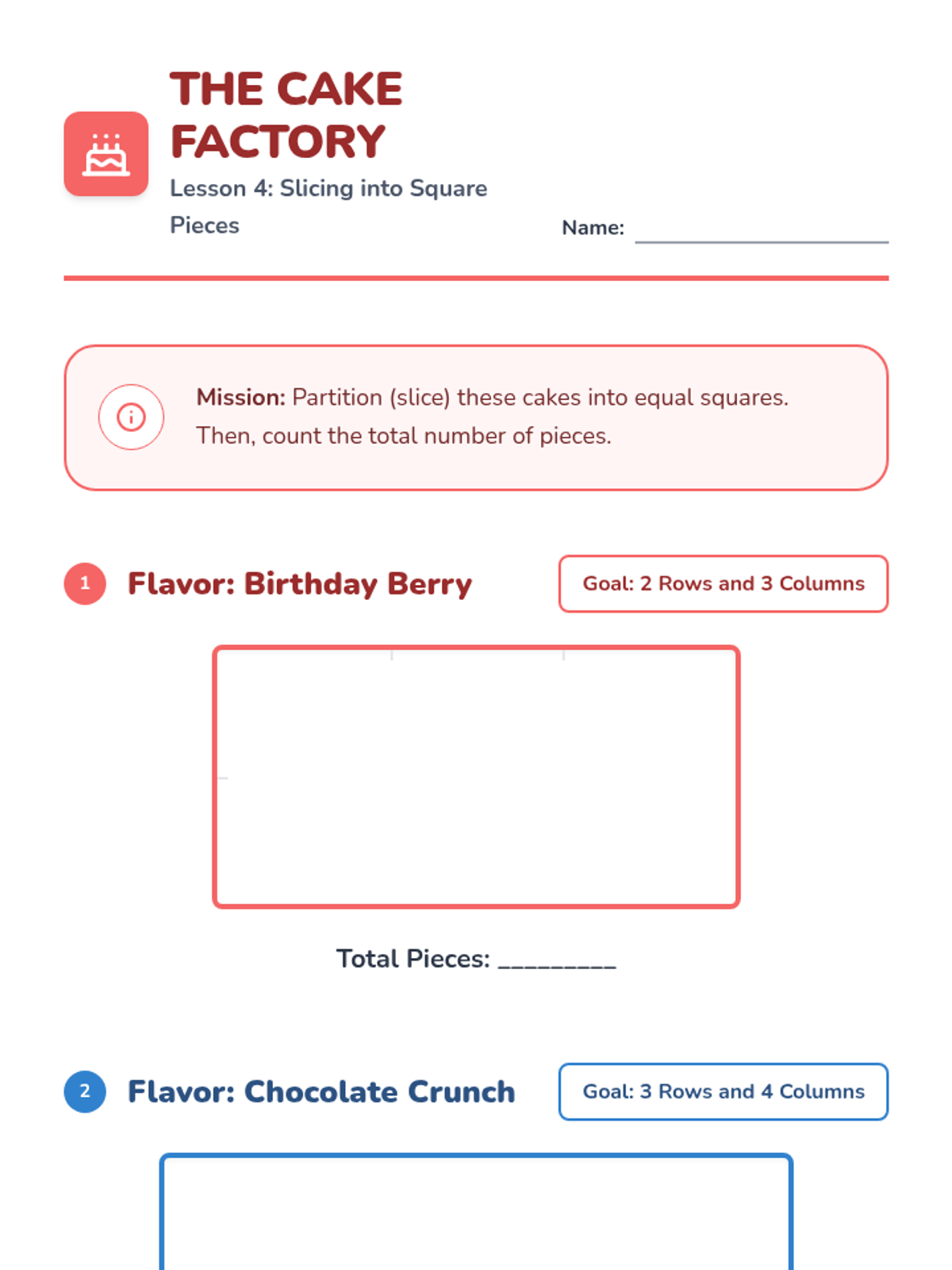 A 2nd-grade sequence focusing on partitioning rectangles into rows and columns of same-size squares to understand area through repeated addition and spatial organization.
