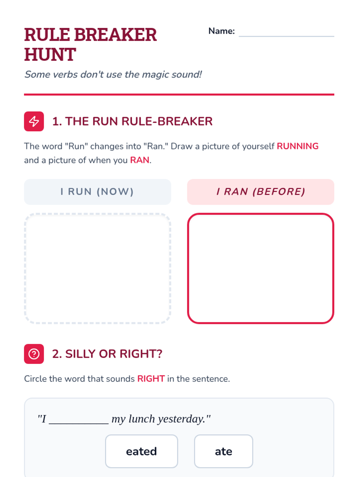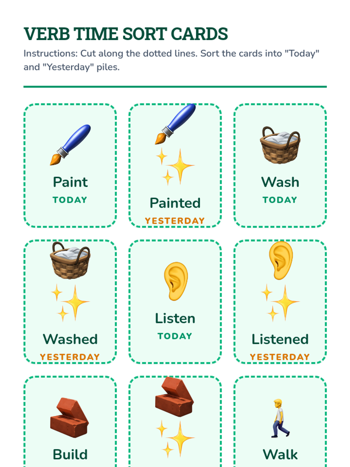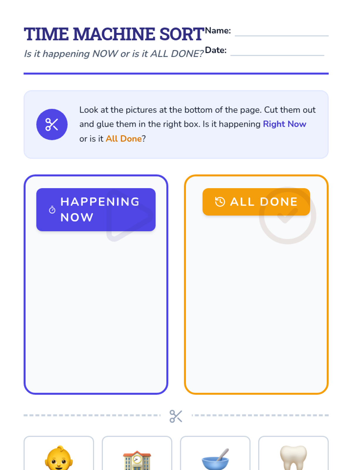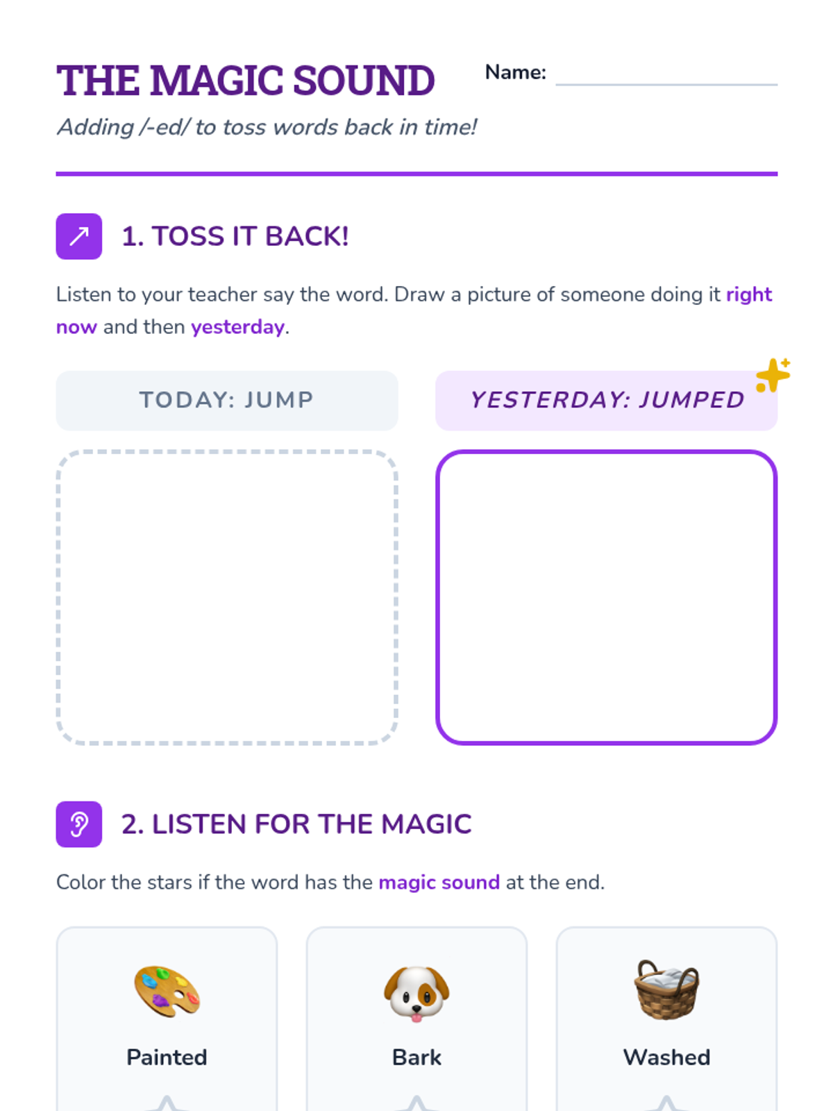 A comprehensive ELA sequence for Kindergarten students focusing on distinguishing between present and past tense verbs. Through the theme of a 'Time Machine,' students learn to identify 'now' vs. 'before', regular '-ed' endings, and common irregular verbs.