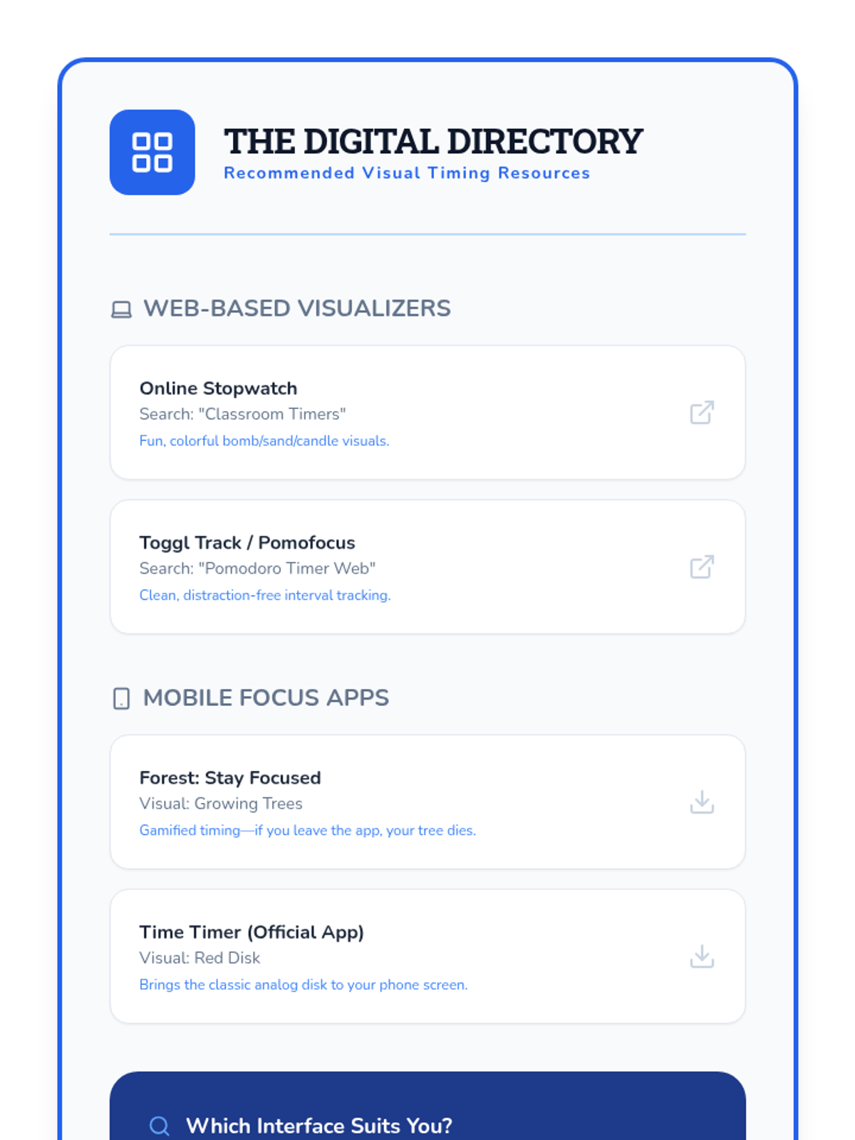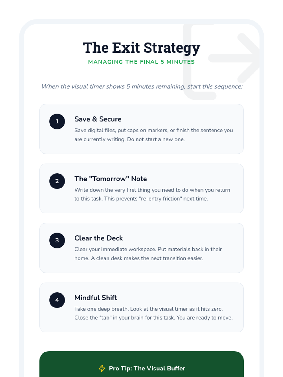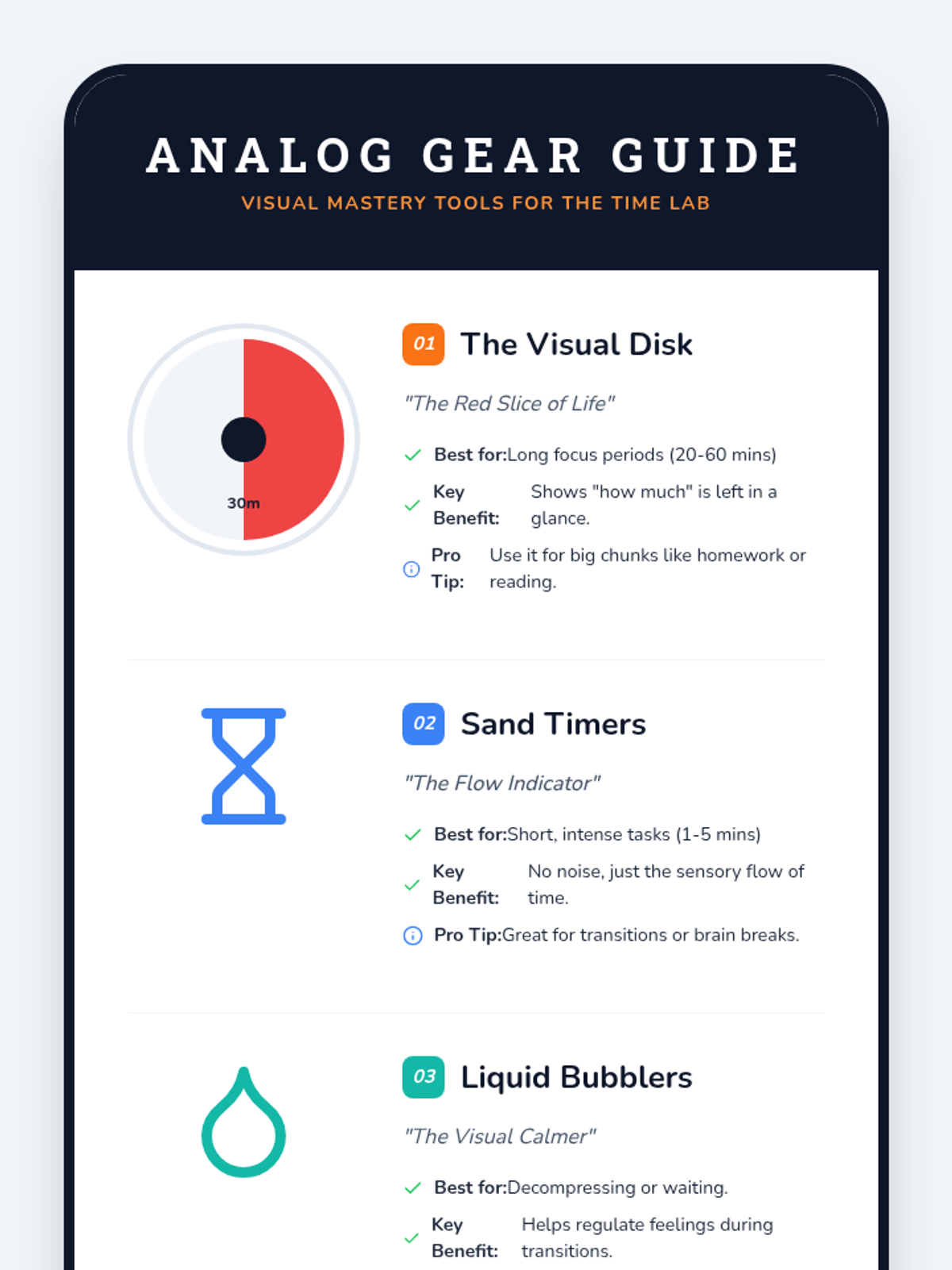 This sequence helps neurodivergent students address 'time blindness' by using visual timers. Students progress from investigating their own time perception to mastering transition strategies and managing multi-step tasks using analog and digital countdown tools.