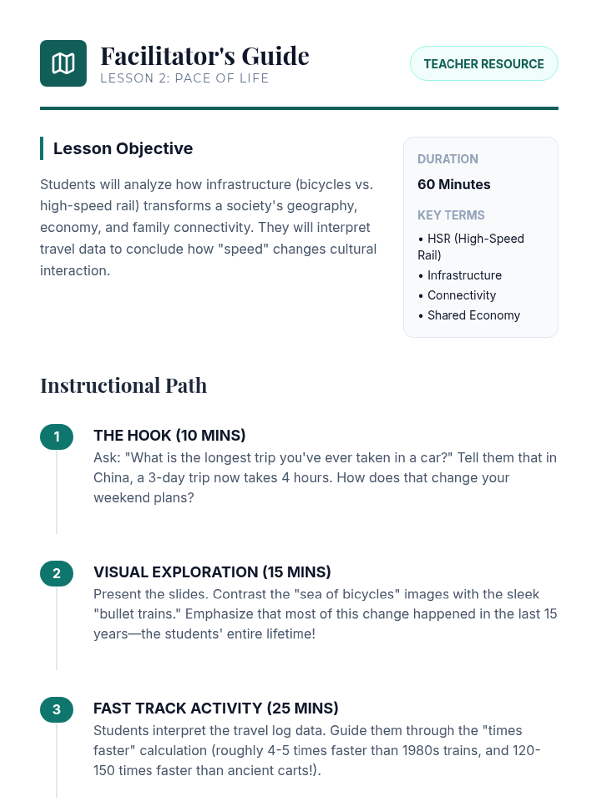 This sequence explores the dynamic intersection of ancient traditions and modern innovations in China. Students analyze changes in housing, transportation, technology, and arts to understand how a society balances its heritage with rapid development through a 'Time Traveler' project-based approach.