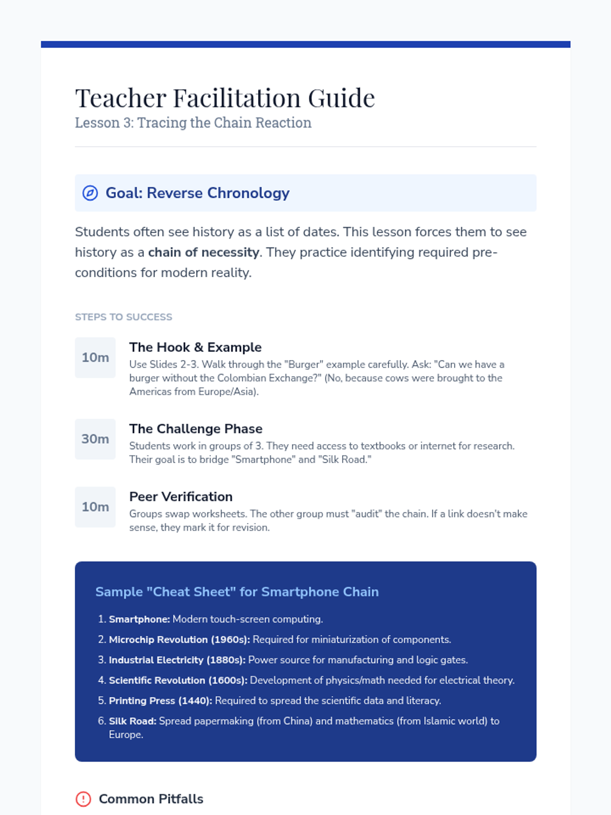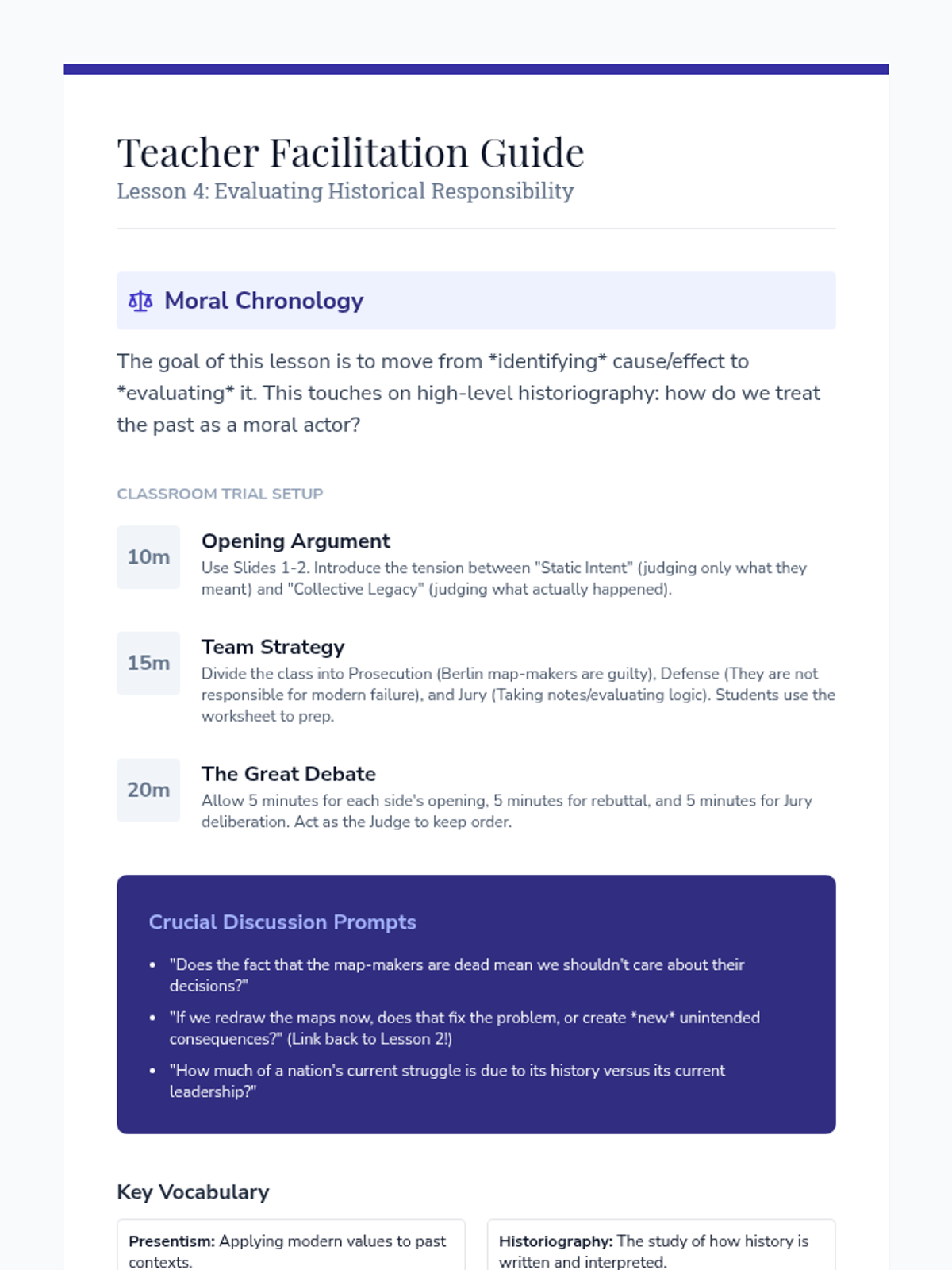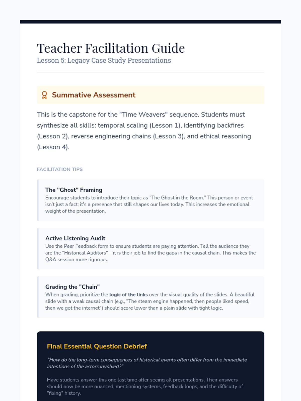 This sequence explores the relationship between historical events and their long-term legacies. Students investigate how immediate intentions often lead to complex, unintended consequences over decades and centuries, moving from simple causal chains to complex feedback loops and ethical evaluations of historical responsibility.
