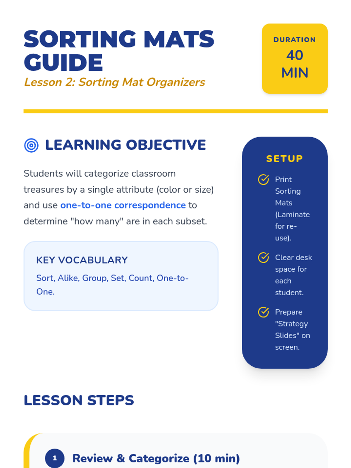 A foundational Pre-K math sequence focusing on one-to-one correspondence and visual comparison of quantities. Students explore concepts of more, less, and fewer through physical pairing, tower building, voting, and balancing scales.