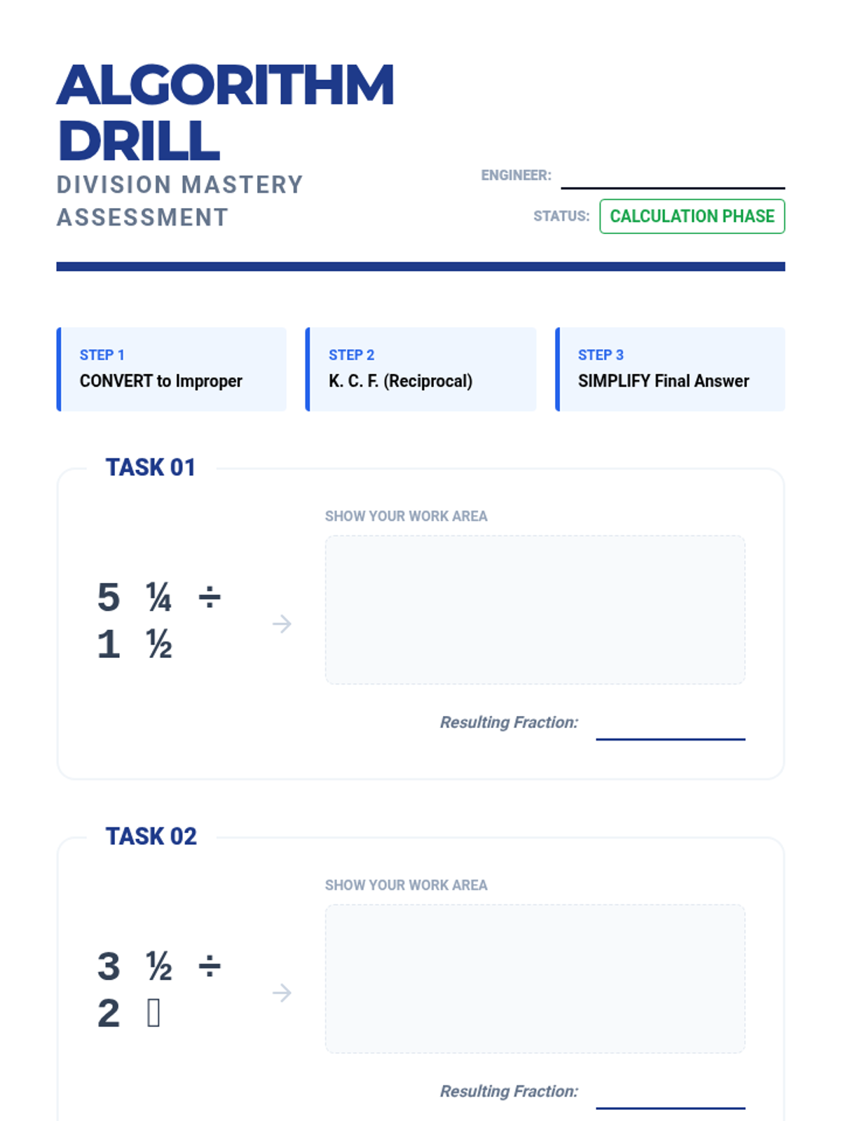 A 12-session tier 2 intervention sequence designed to build conceptual mastery of fraction division. Grounded in All Learners Network (ALN) principles, students progress from visual measurement models to the common denominator strategy and eventually the standard algorithm through deep reasoning and high-leverage concepts.