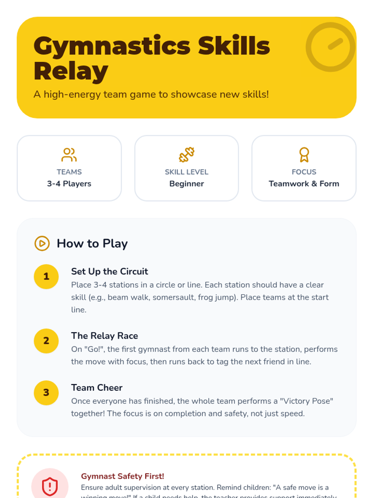 An 8-session gymnastics introduction for 4 and 5-year-olds, focusing on motor skills, coordination, and confidence through active play and structured exploration.