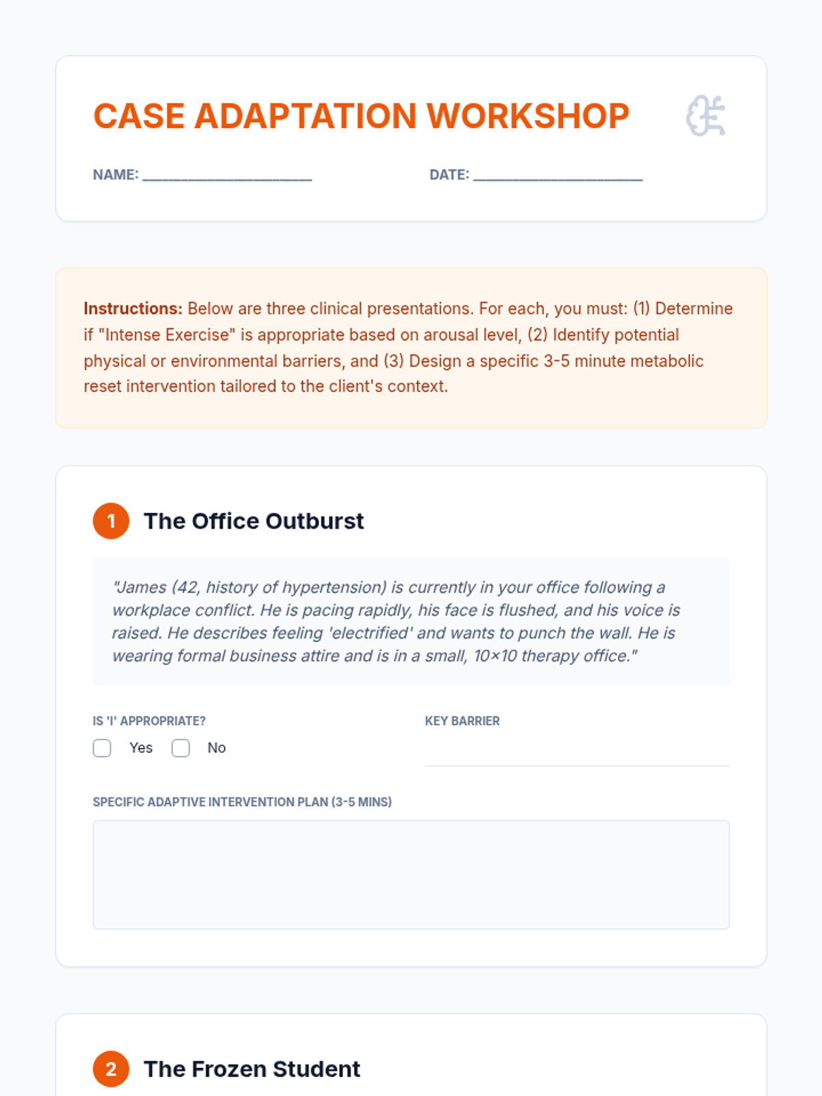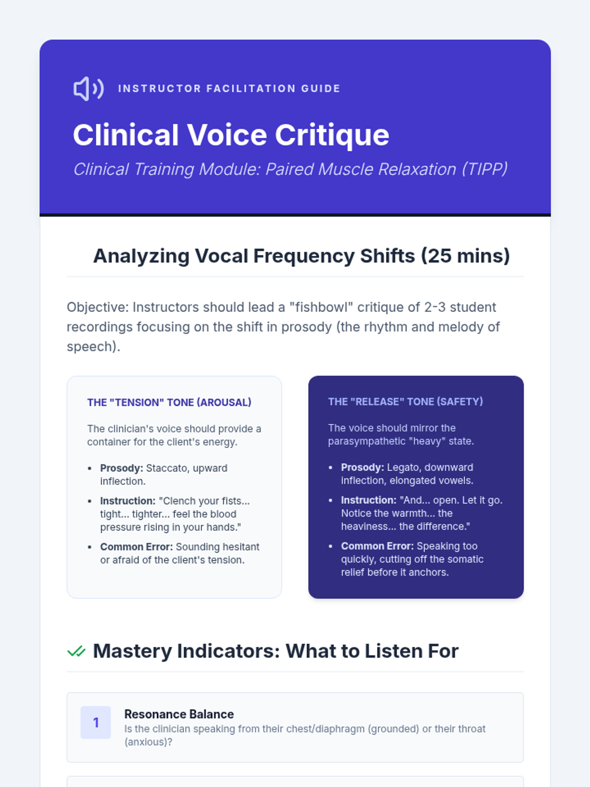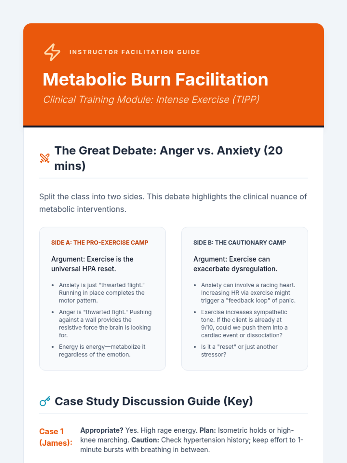An advanced clinical sequence for graduate-level counseling students, focusing on the neurobiological mechanisms and practical application of TIPP skills (Temperature, Intense exercise, Paced breathing, Paired muscle relaxation) for crisis intervention.
