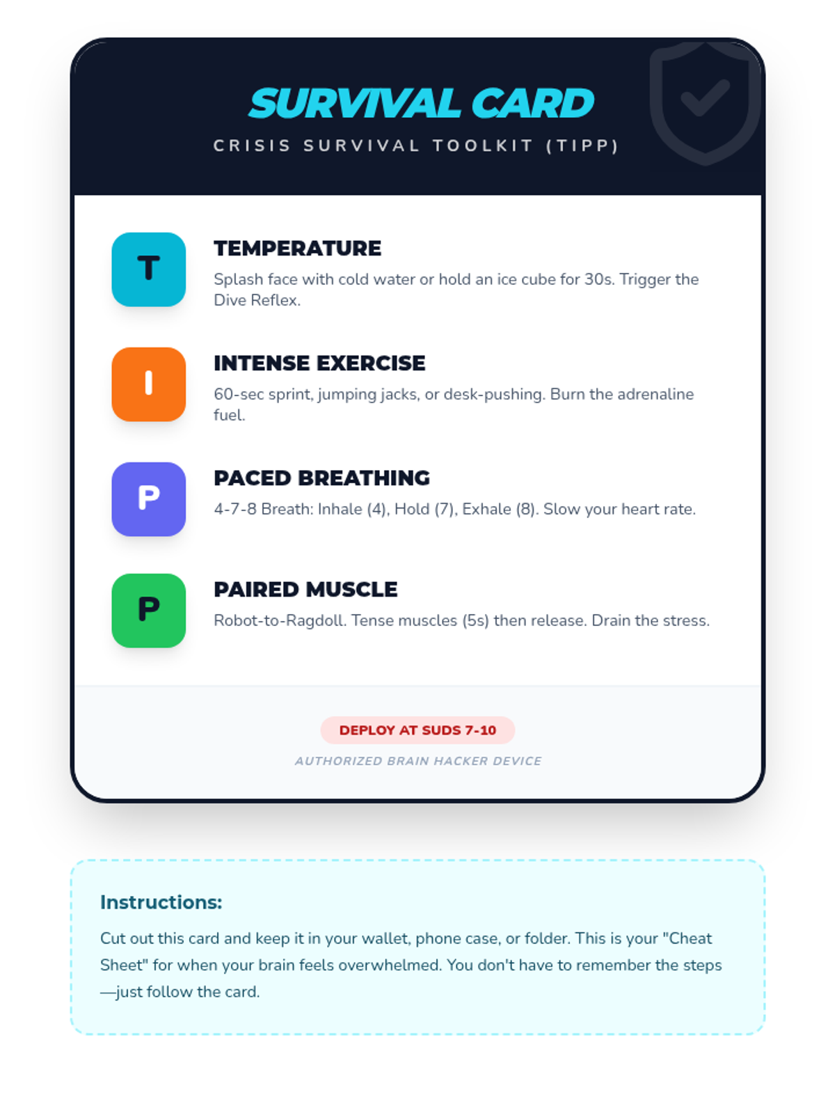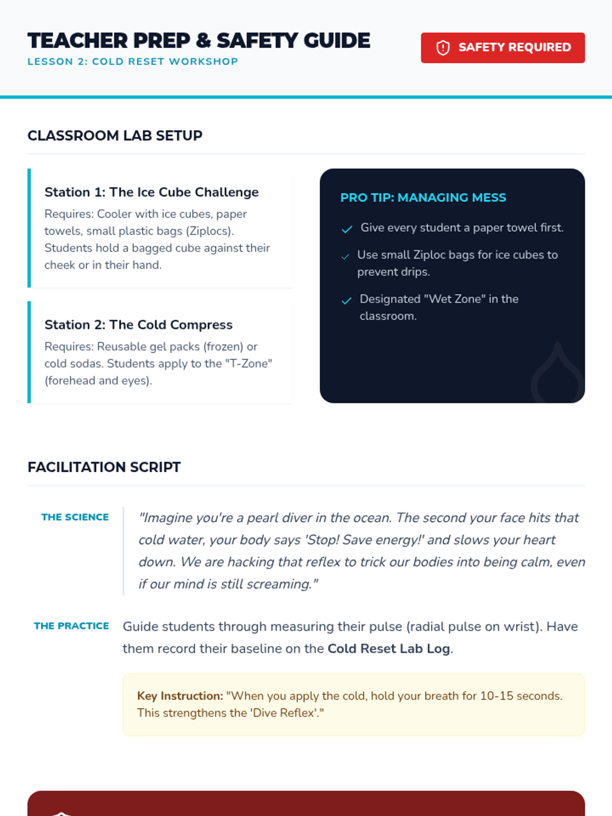 A comprehensive workshop-style sequence for 6th graders to master TIPP skills (Temperature, Intense Exercise, Paced Breathing, Paired Muscle Relaxation) for emotional regulation during high-distress moments.