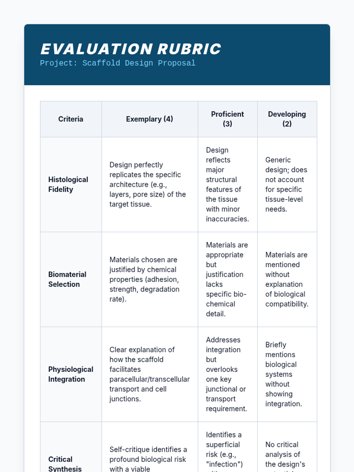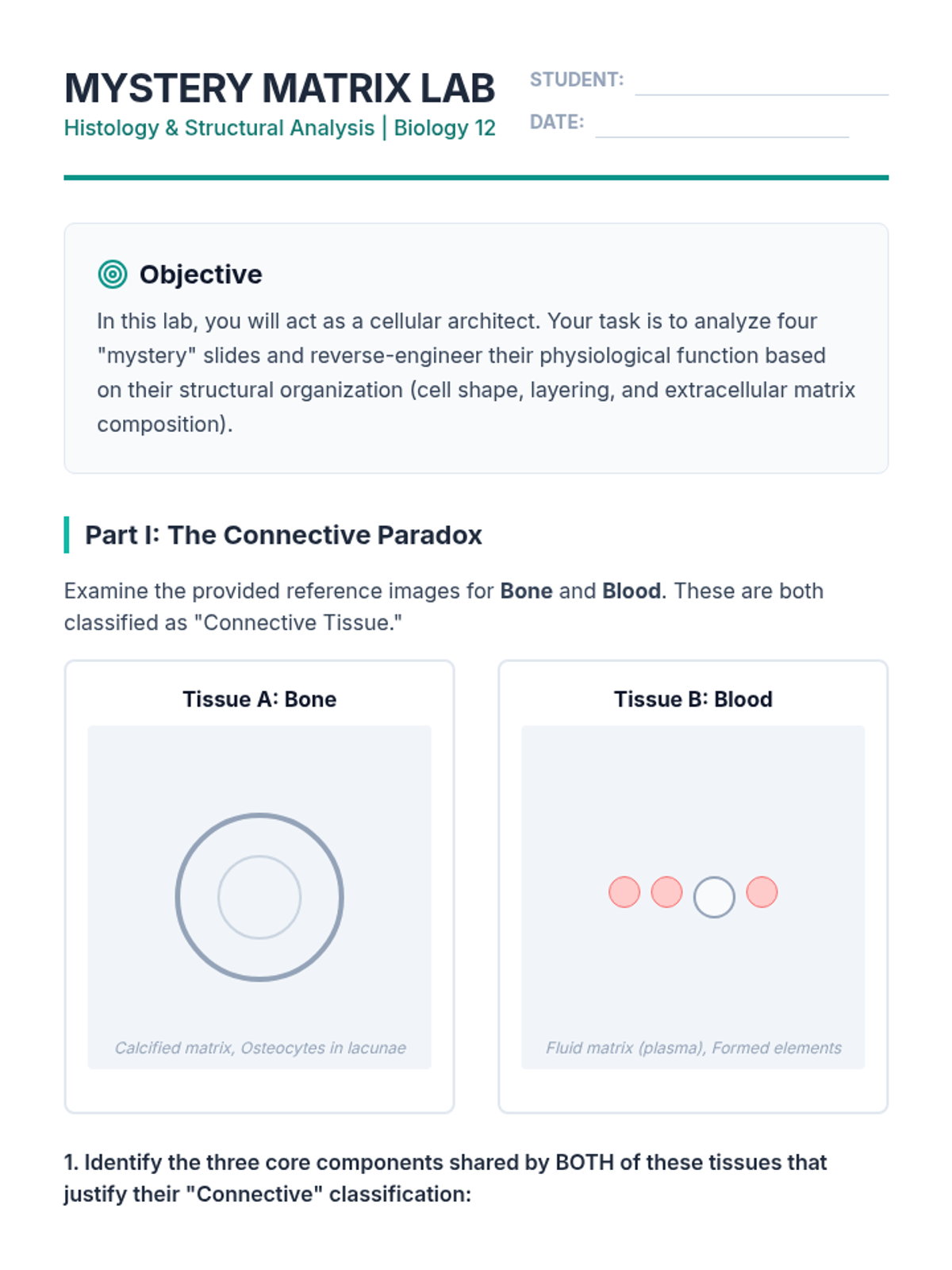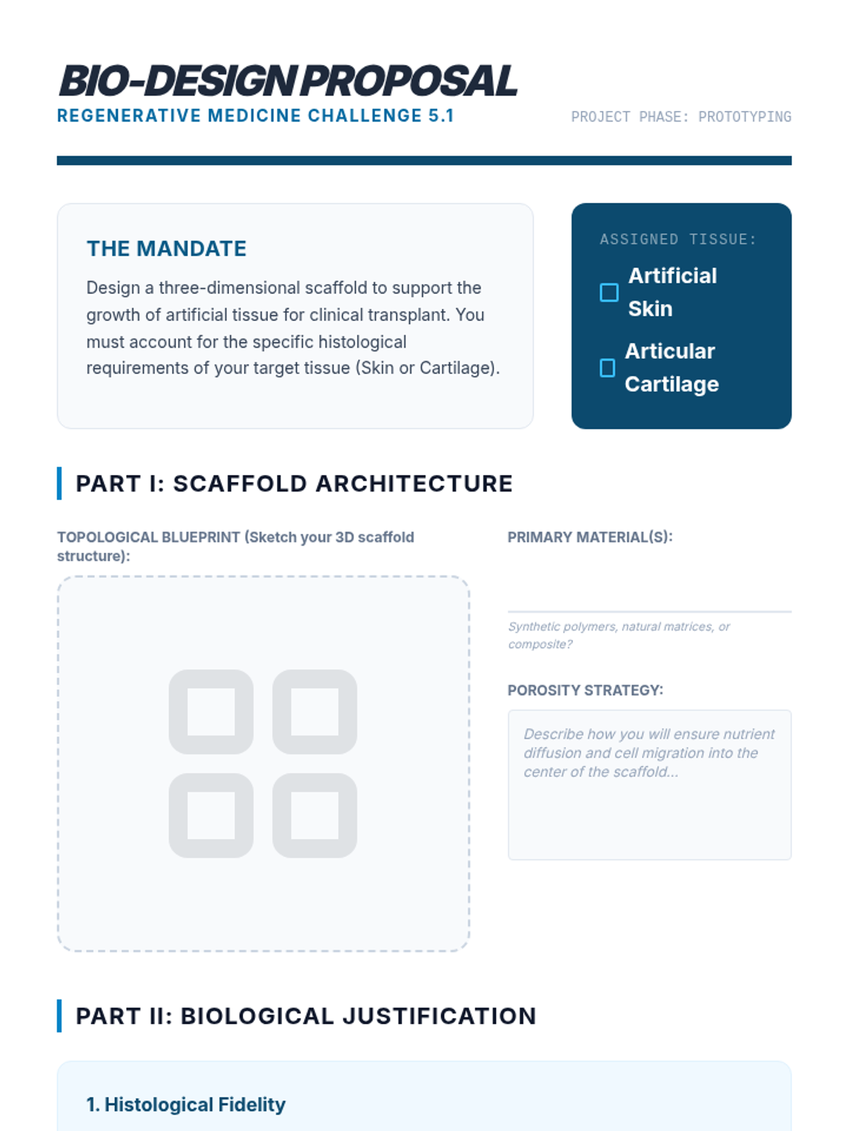 An advanced biology sequence for 12th graders exploring the hierarchical organization of multicellular organisms. Students analyze how specialized cells form tissues and organs, culminating in a bioengineering project to design artificial tissue scaffolds.