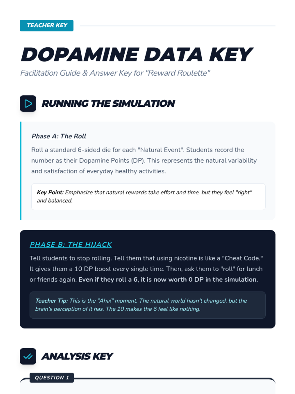 A comprehensive vaping prevention unit that covers health risks, the science of nicotine addiction, and social refusal strategies for middle and high school students.
