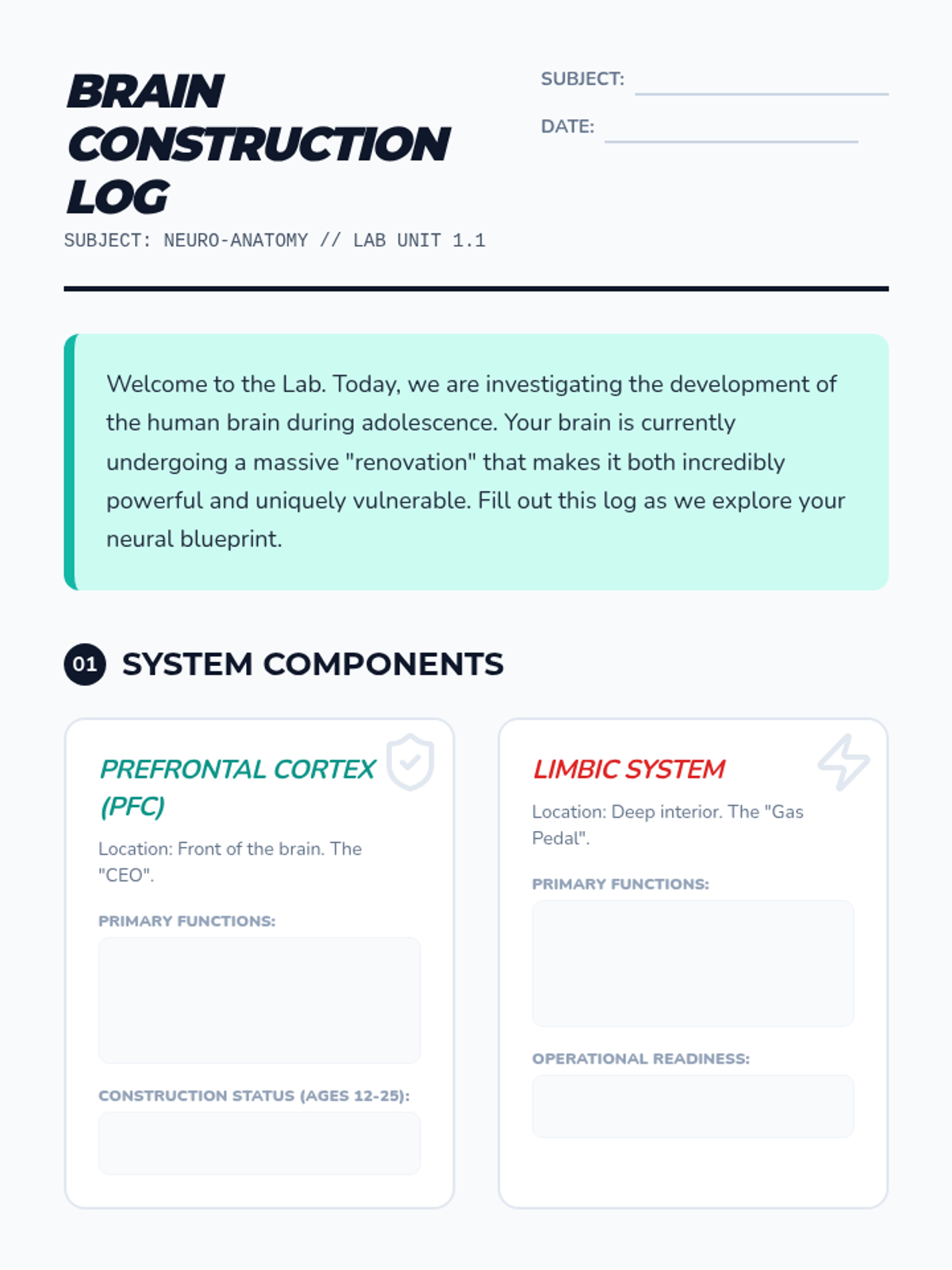 A multi-lesson unit designed to build mental health literacy, identify internal system alerts (Anxiety, Depression, Anger), and develop a sustainable toolkit of coping strategies. Students explore the 'Wellness Spectrum', 'Neuroplasticity', and the deceptive nature of 'System Bypasses' like substances.
