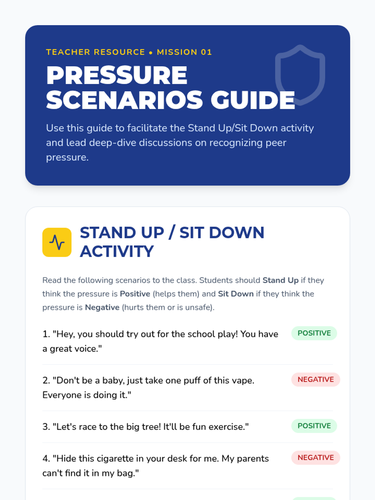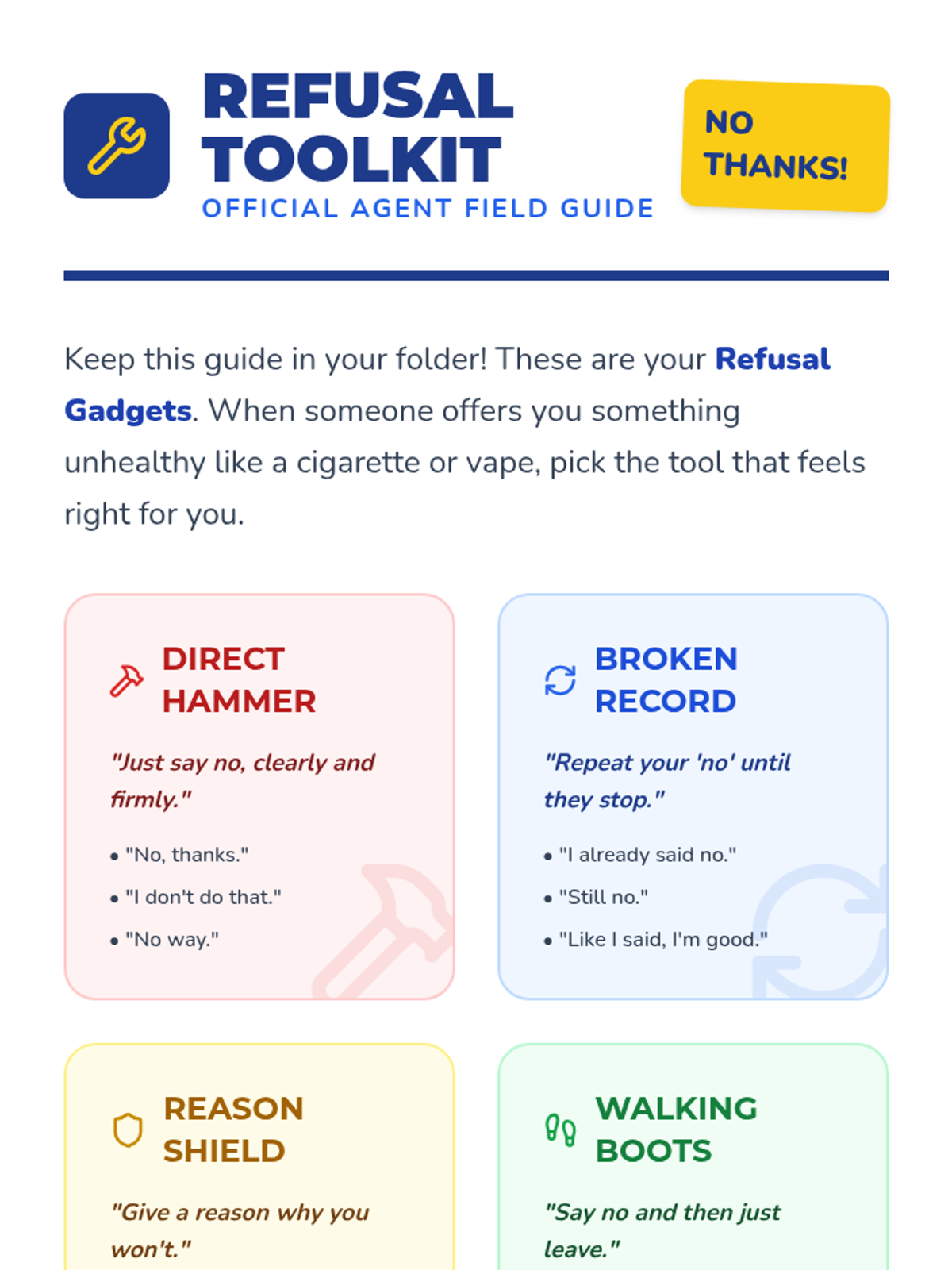 This sequence empowers 4th-grade students with social-emotional tools to handle peer pressure and confidently refuse tobacco products. Through role-playing and script-building, students move from recognizing pressure to practicing verbal and non-verbal refusal strategies.