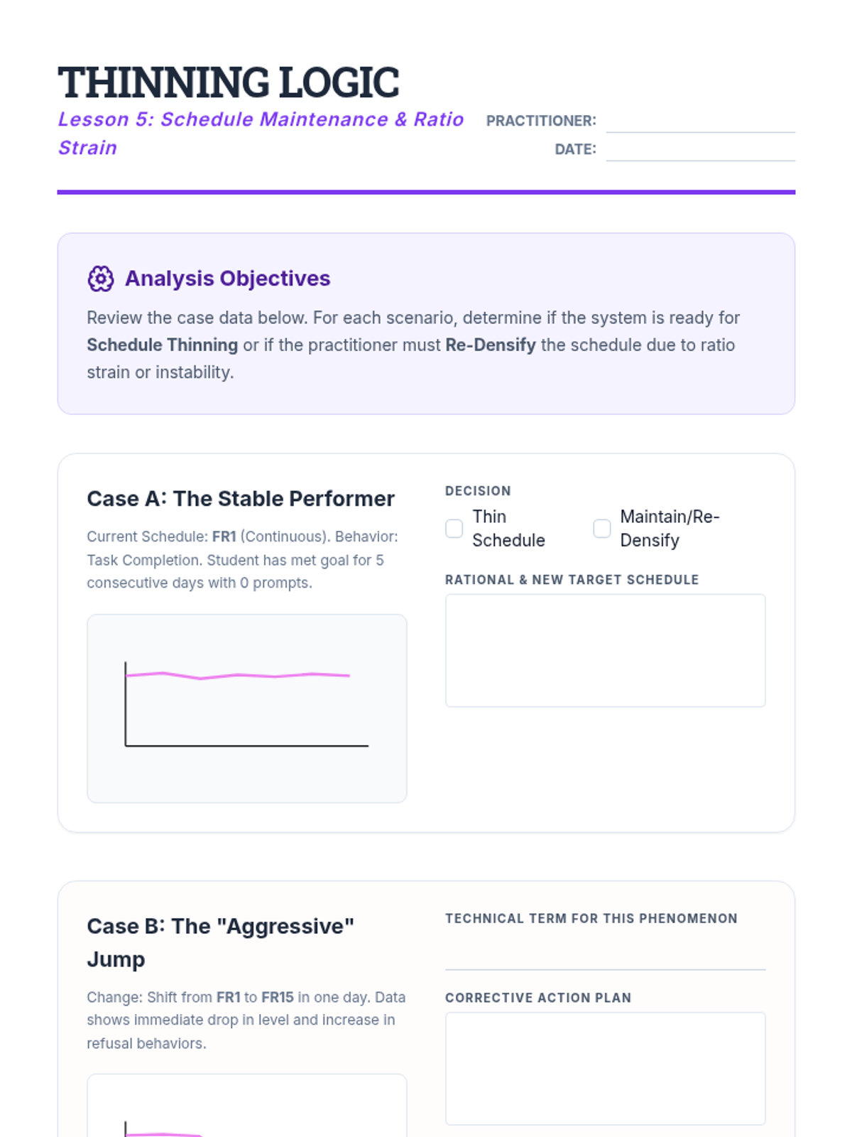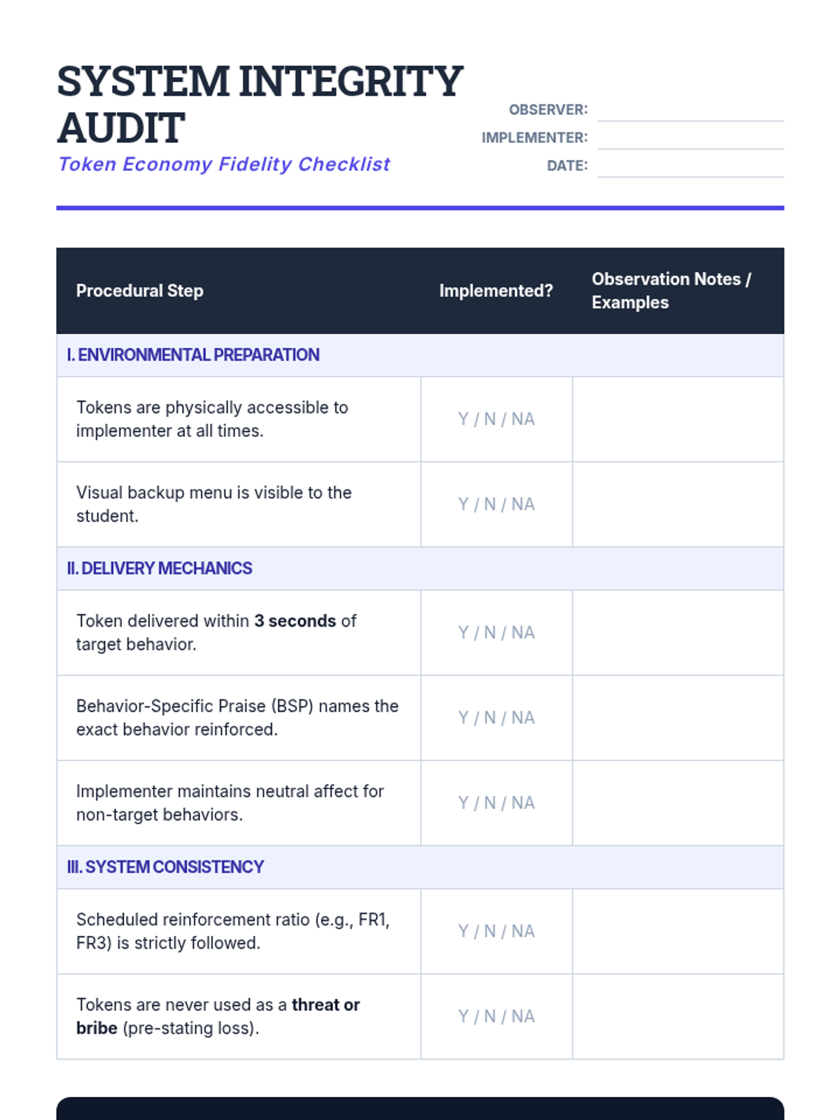 A graduate-level sequence focused on the implementation phase of token economies, emphasizing data-driven decision making, treatment fidelity, and the mechanics of behavioral reinforcement. Students move from basic delivery skills to complex data analysis and system adjustment.