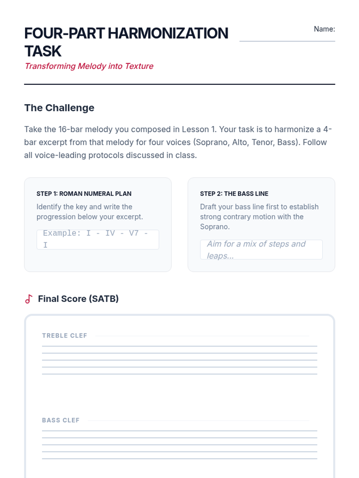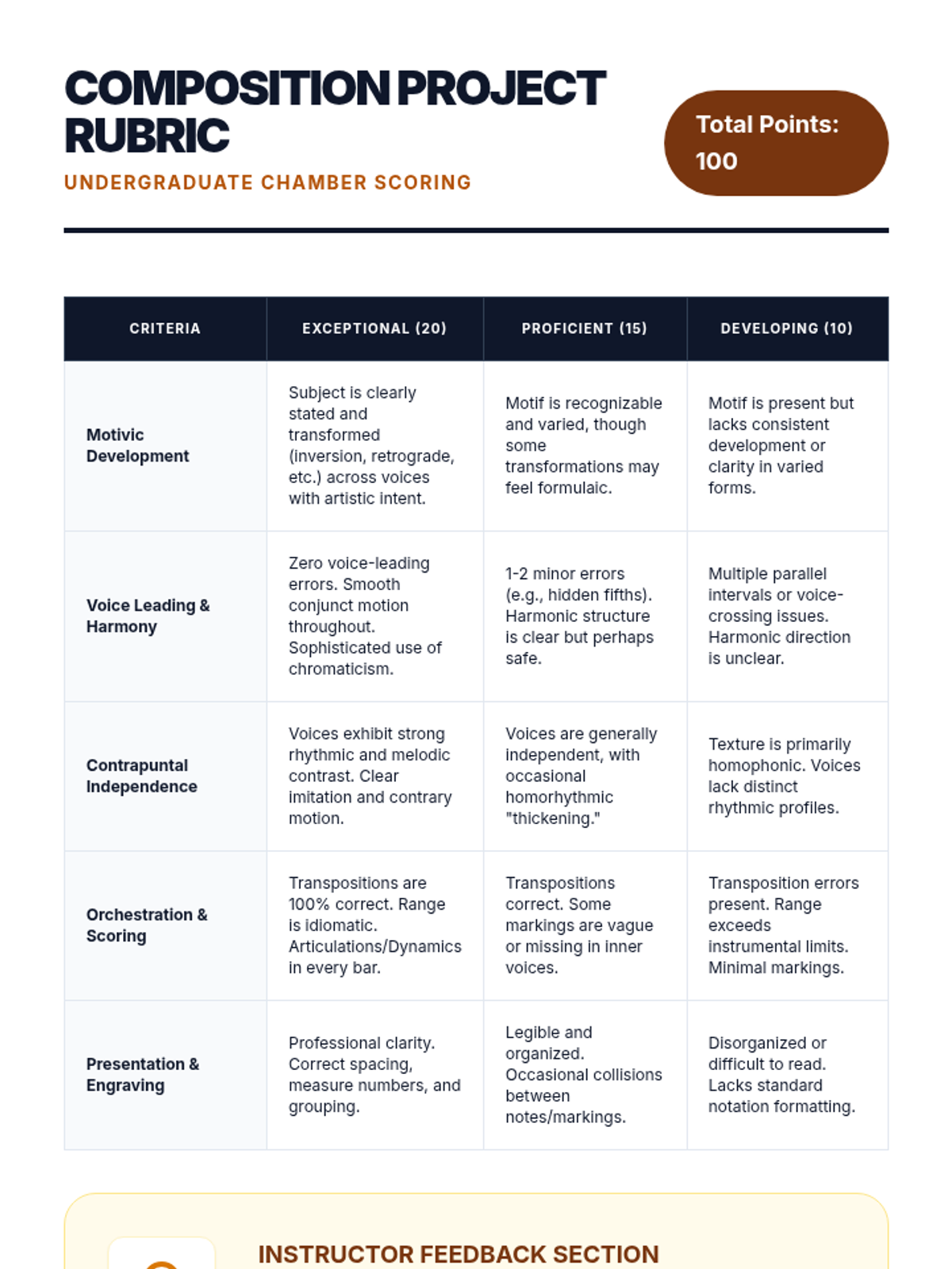 An intensive undergraduate sequence exploring the theoretical foundations of Western tonal composition, focusing on motivic development, advanced voice leading, chromatic harmony, and polyphonic textures, culminating in a chamber ensemble orchestration.