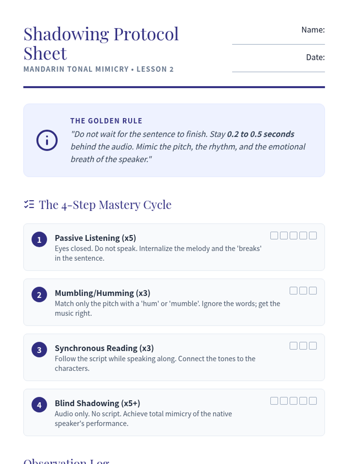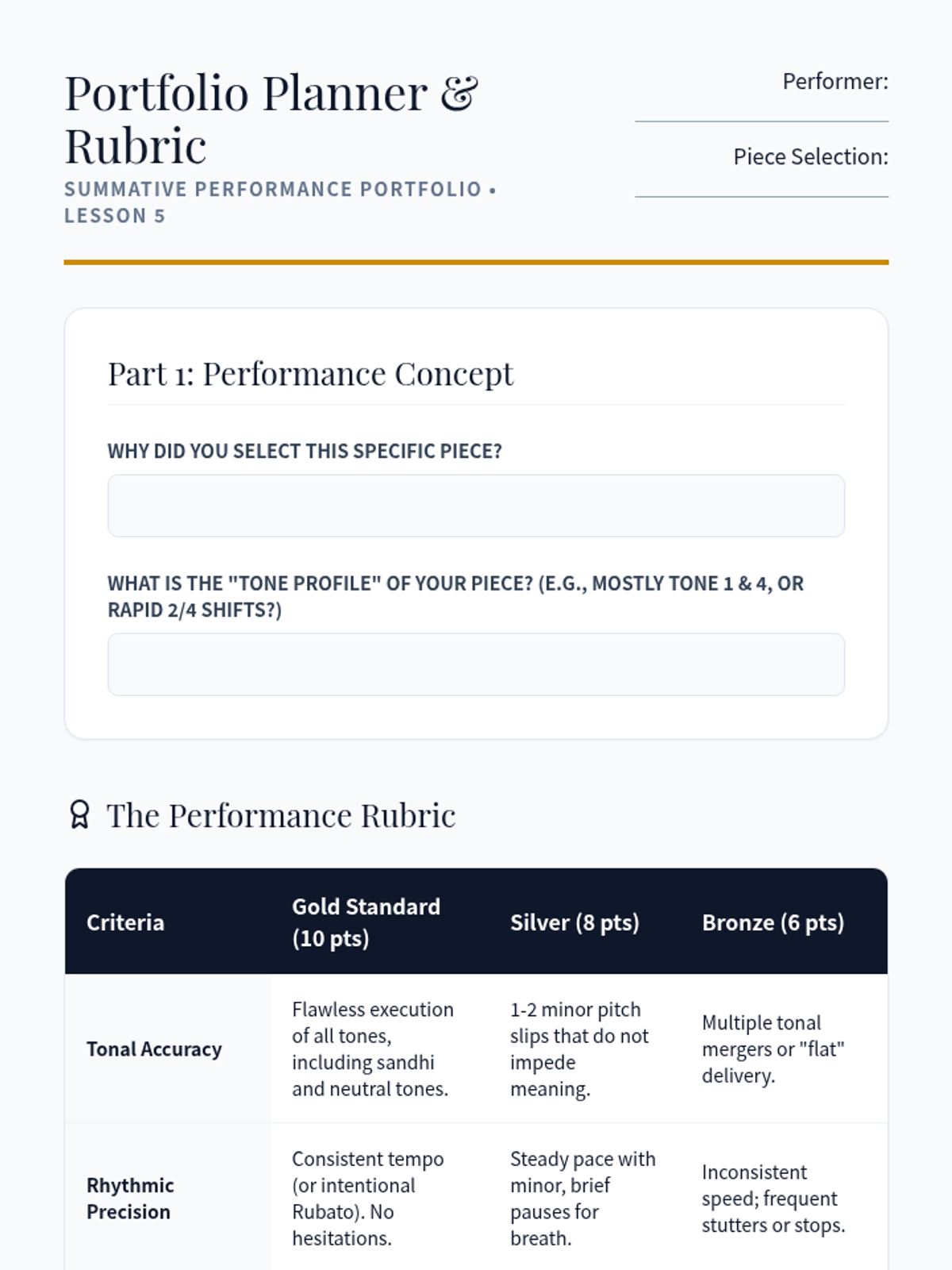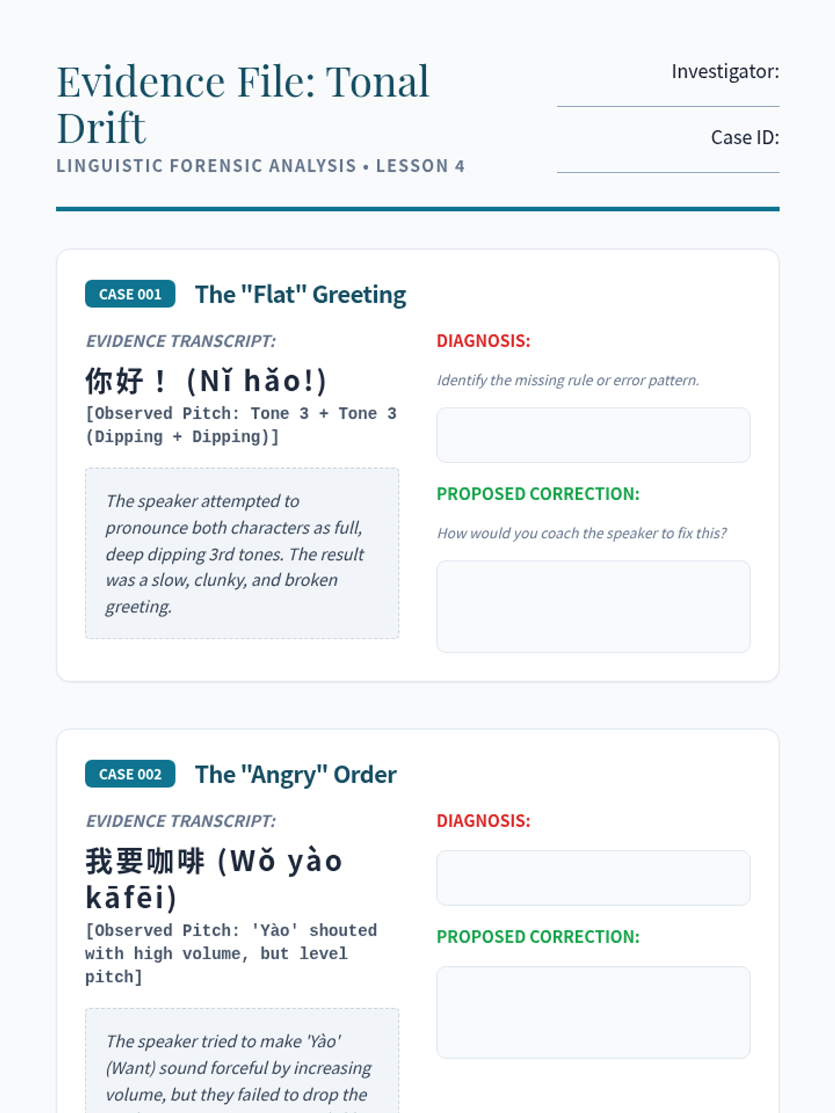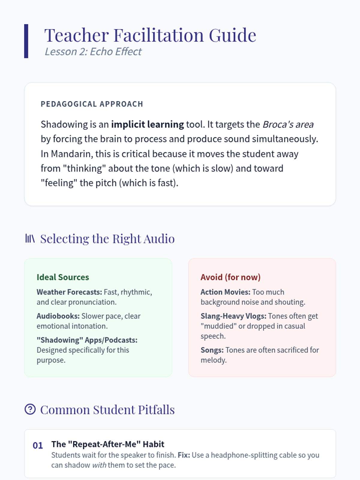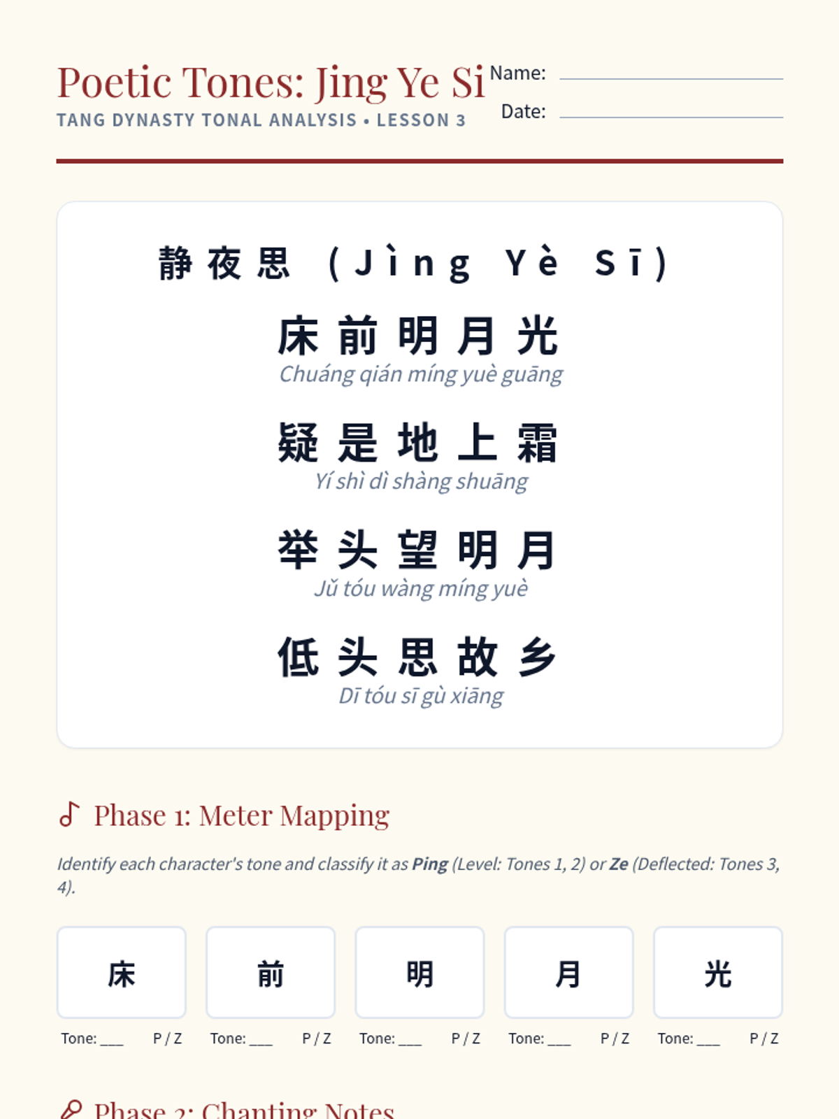 A high-stakes, performance-based exploration of Mandarin tones through the lens of tongue twisters, classical poetry, and native speaker mimicry. Students transform from passive learners to active performers, mastering pitch envelopes and rhythmic precision.