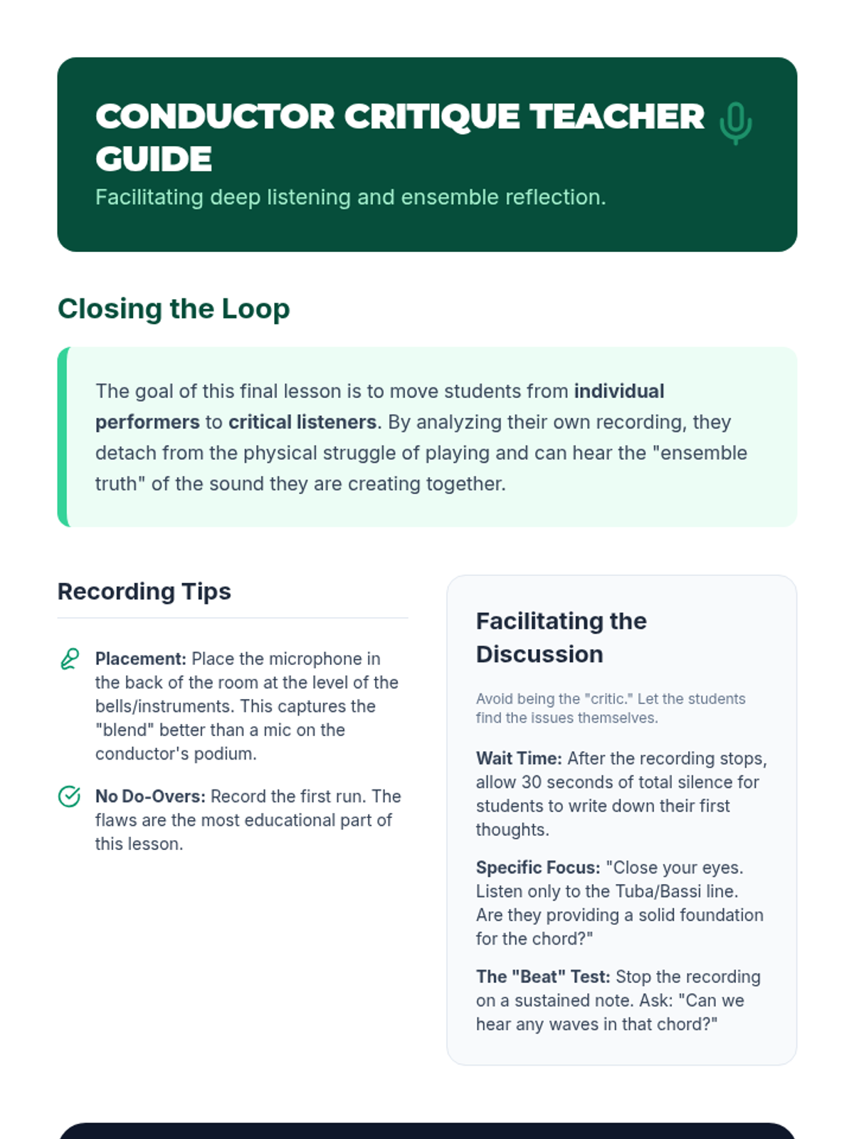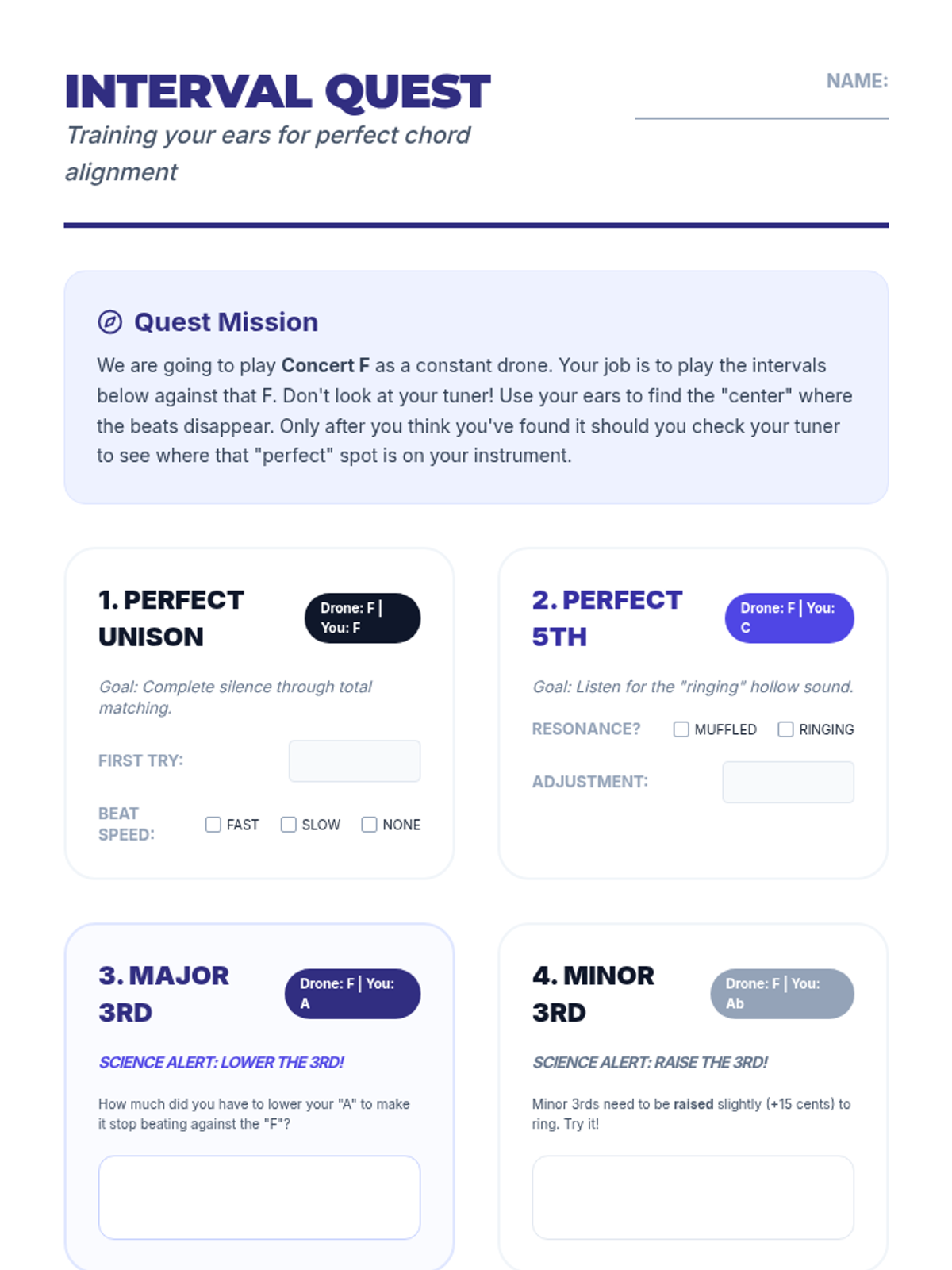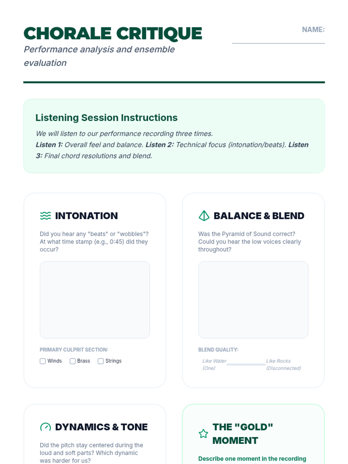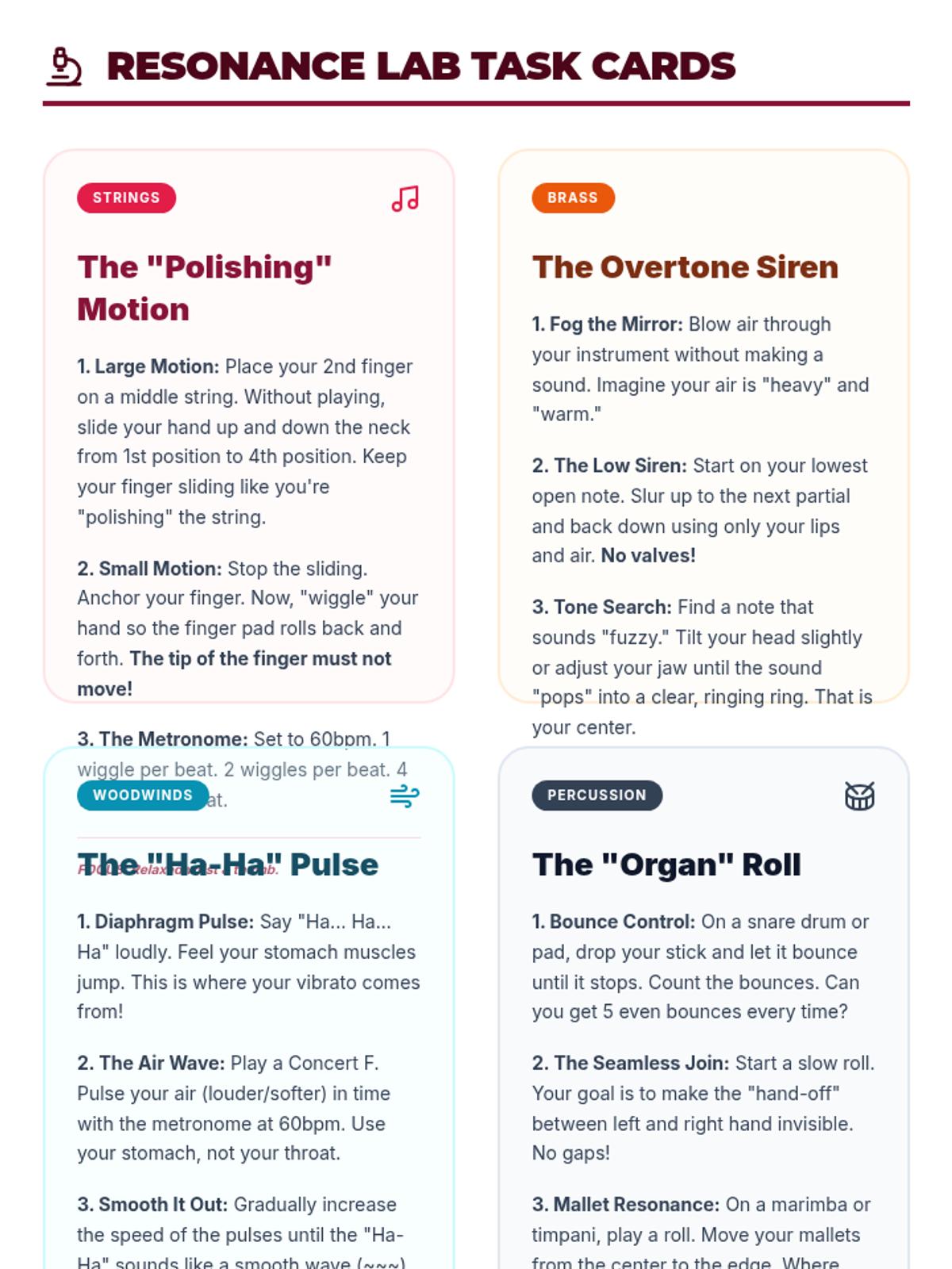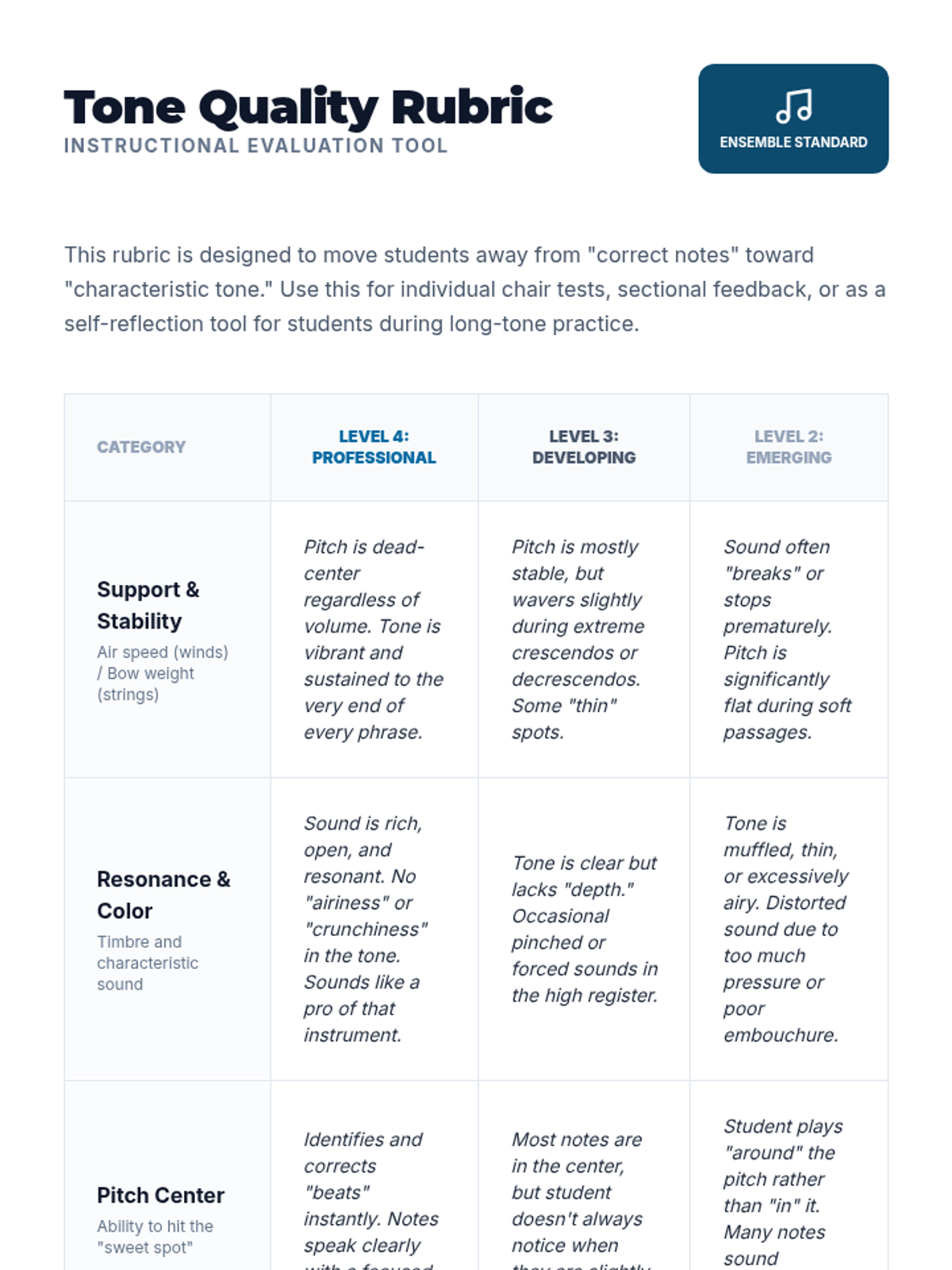 A comprehensive unit for middle school band and orchestra students focused on the science and art of sound. Students move from understanding sound waves and pitch physics to mastering instrument-specific adjustments, breath support, and ensemble blend through the performance of lyrical chorales.