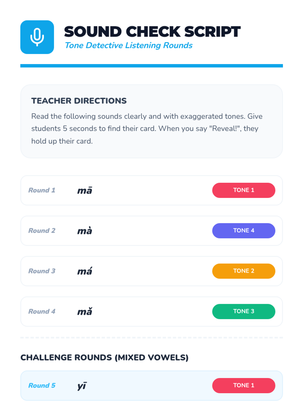A fun, kinesthetic introduction to the four Mandarin tones for Kindergarten students, using movement, music, and "Voice Coasters" to explore how pitch changes meaning.