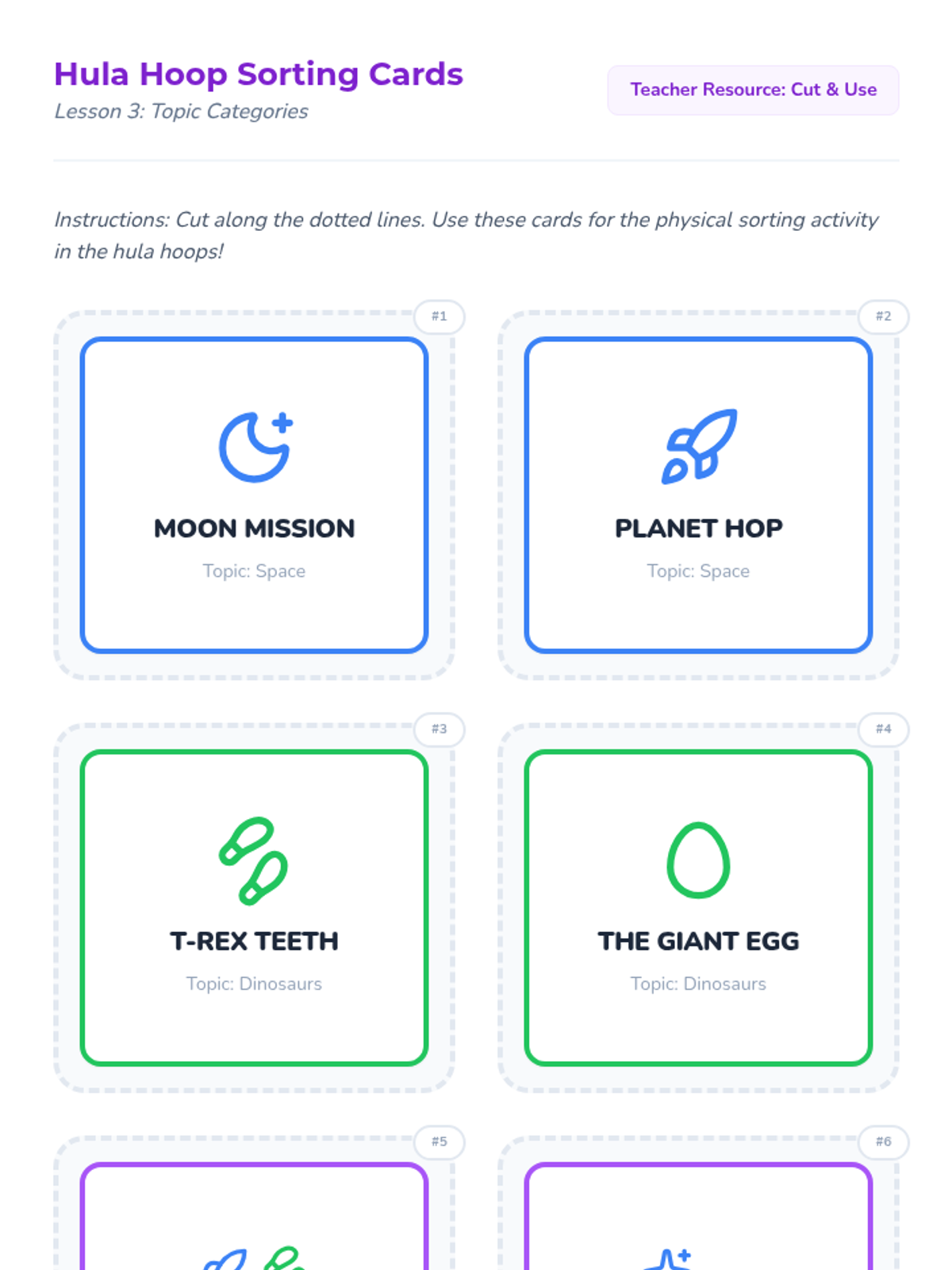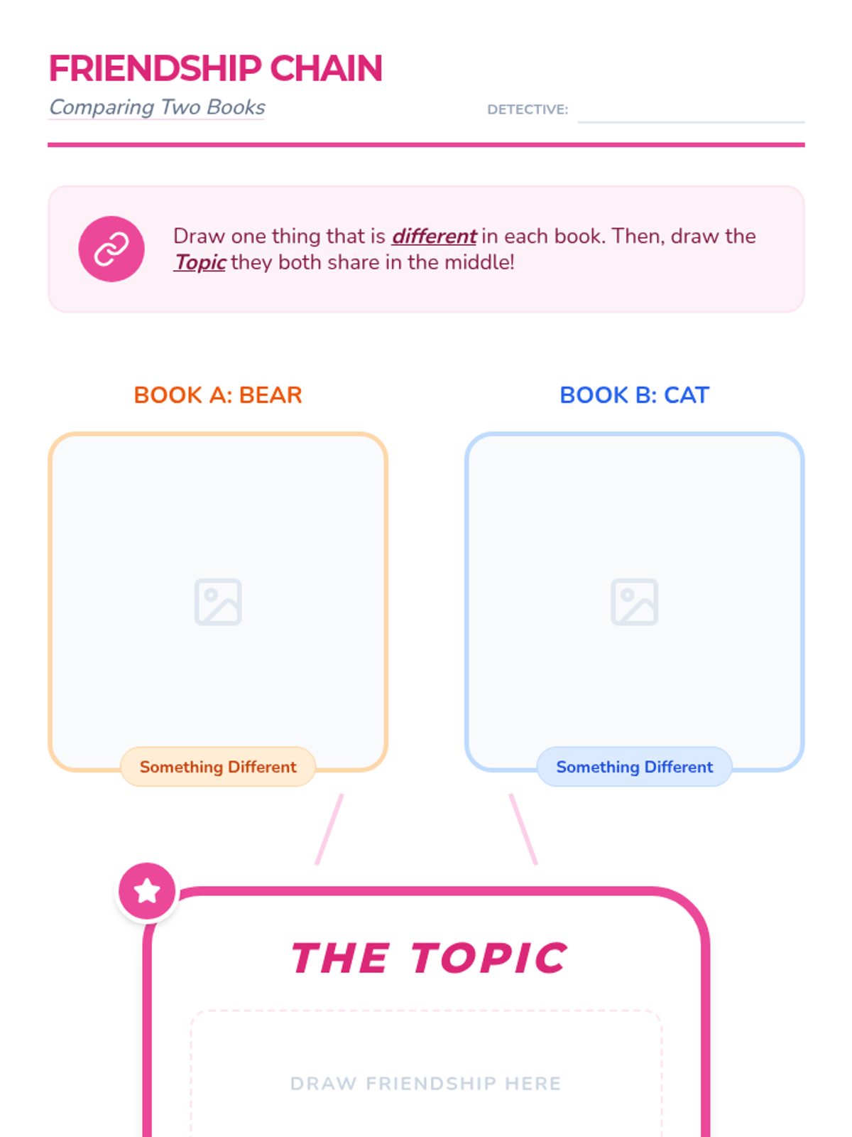 A Kindergarten ELA sequence focused on identifying and comparing topics across different texts using games, sorting, and inquiry. Students develop foundational comprehension skills by recognizing shared themes and organizing information.