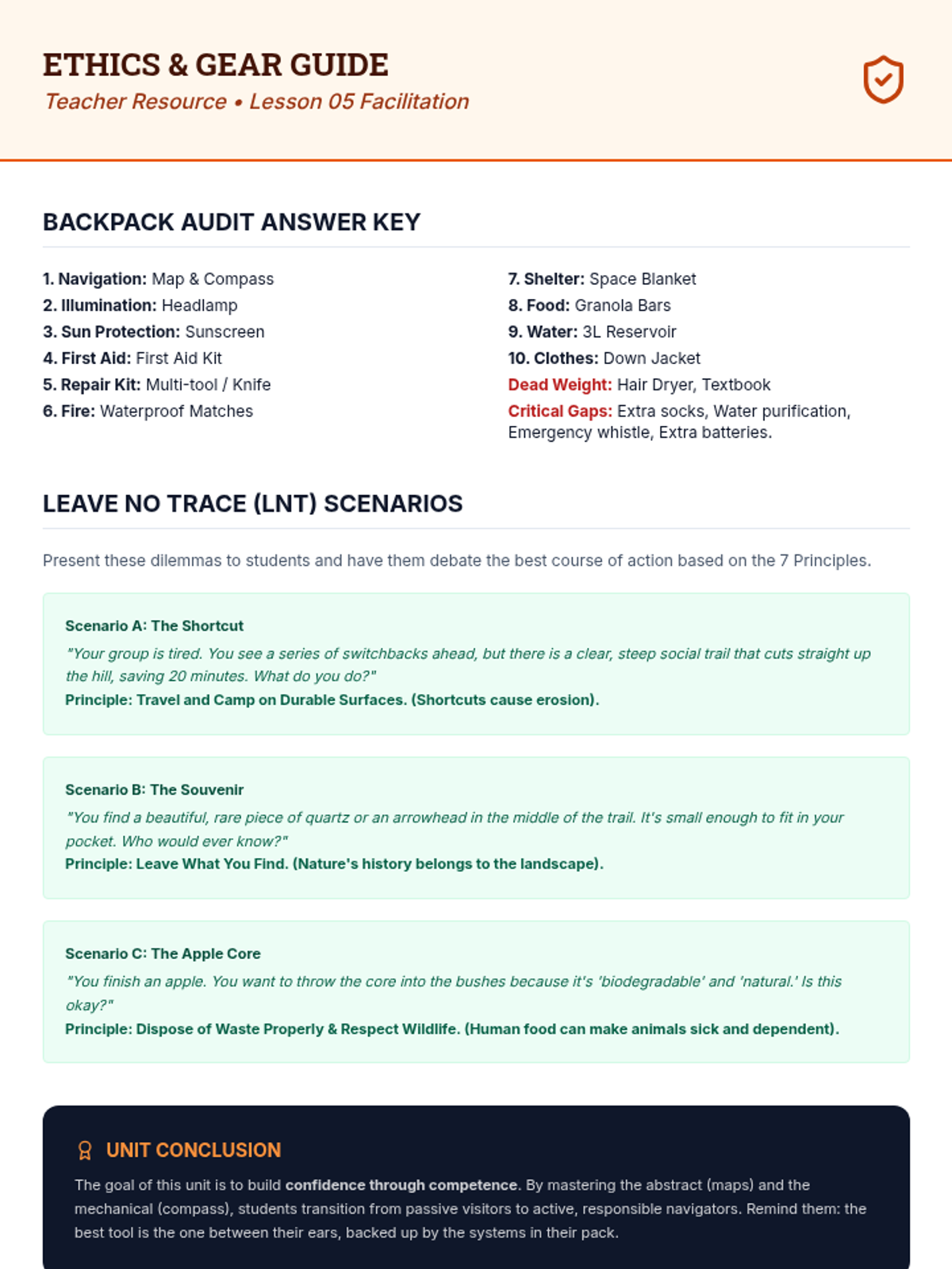 A comprehensive unit on wilderness navigation skills, focusing on topographic map interpretation, compass mechanics, triangulation, and route planning for safe outdoor exploration.