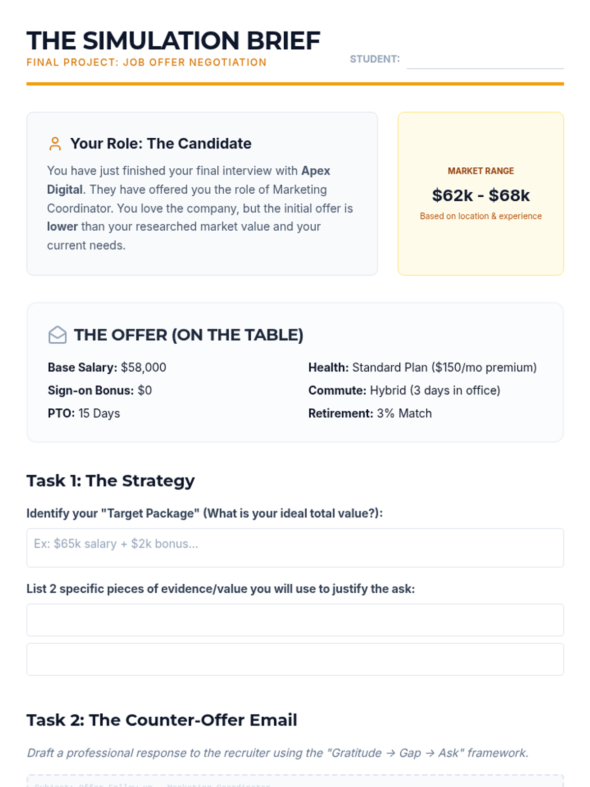 A comprehensive unit for undergraduate students to master the financial and legal aspects of job offers, focusing on total compensation analysis, cost-of-living adjustments, and professional negotiation skills.