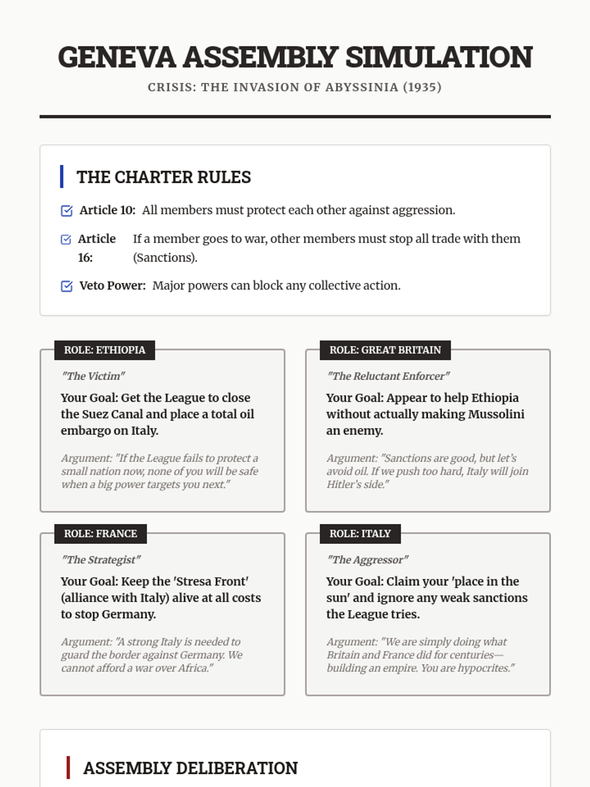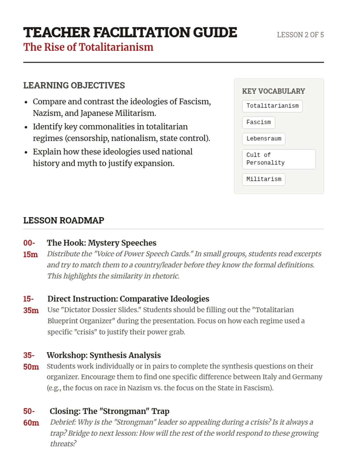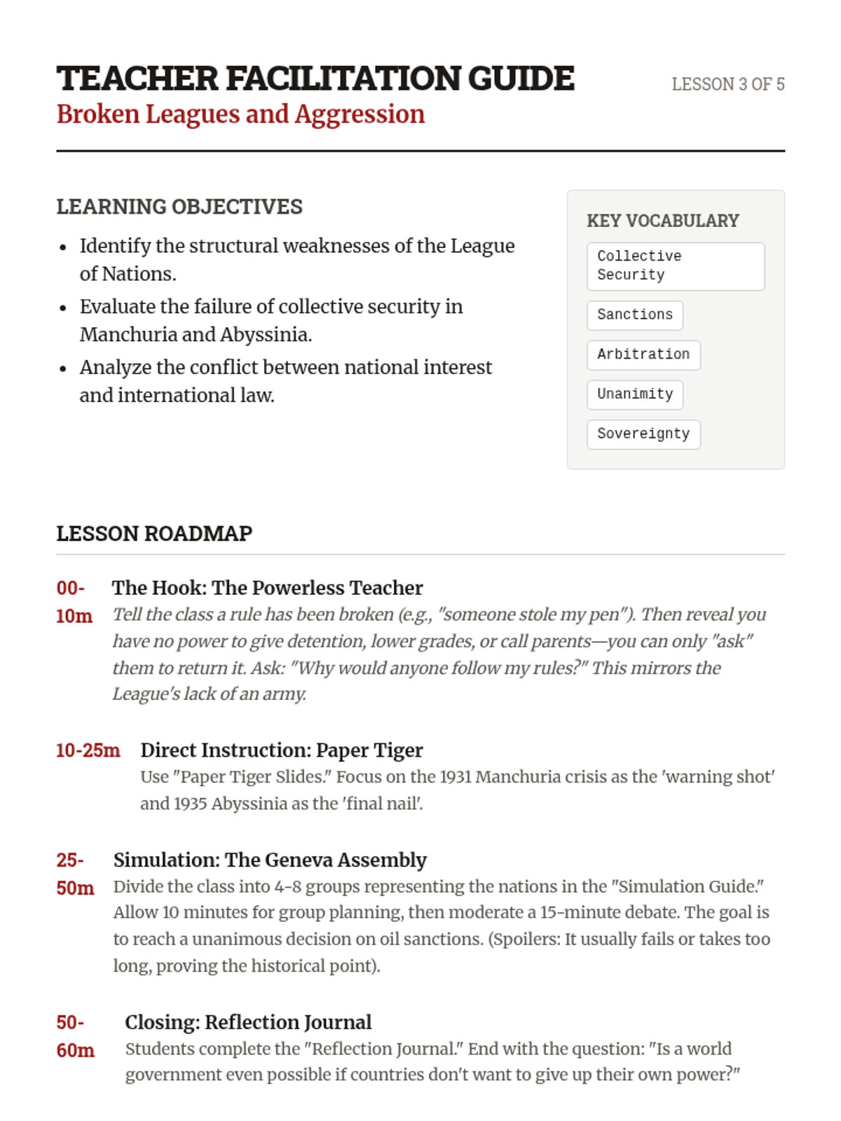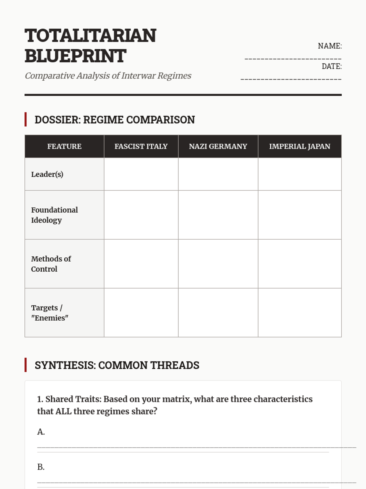 This sequence investigates the geopolitical and economic conditions that allowed totalitarian regimes to rise in Europe and Asia during the interwar period. Students analyze primary sources and economic data to evaluate the failure of diplomacy and the collapse of international order leading to WWII.