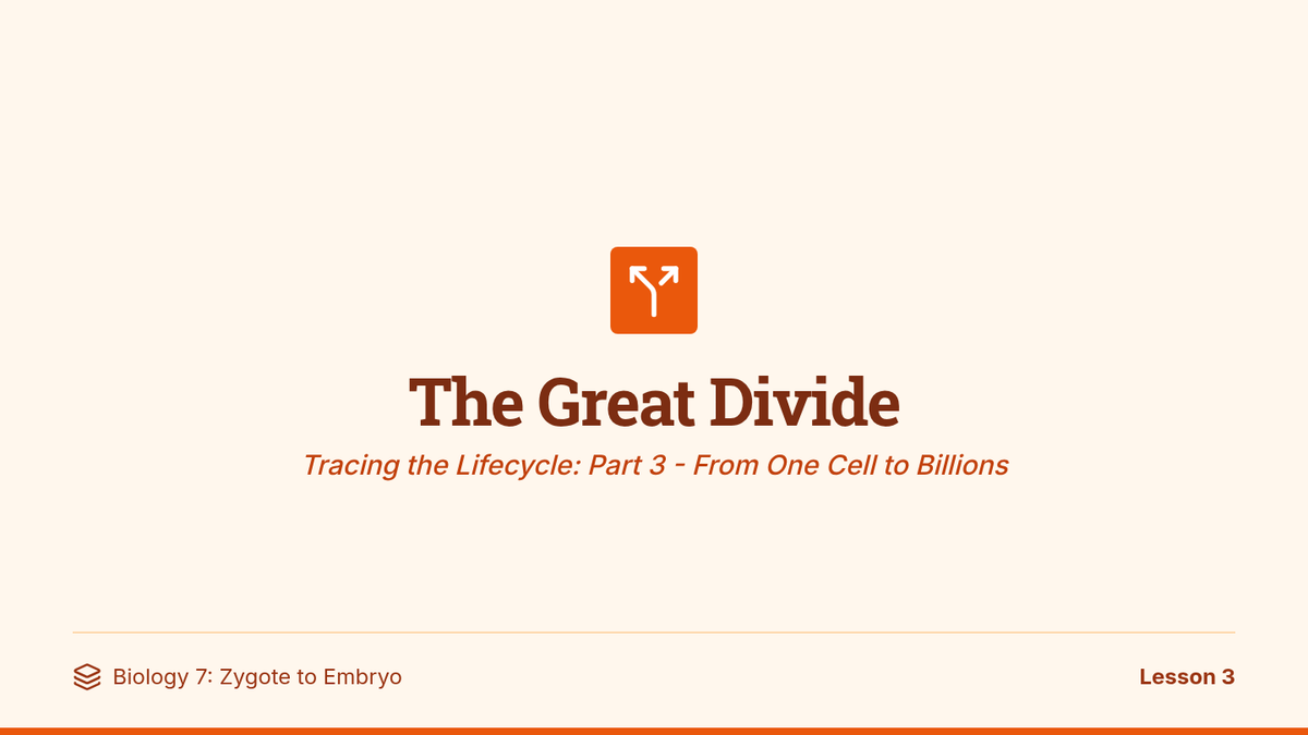 A comprehensive unit on cellular reproduction, focusing on the mechanics of mitosis, DNA replication, and the cell cycle. Students will move from broad overviews to detailed phase analysis using visual-heavy instruction.
