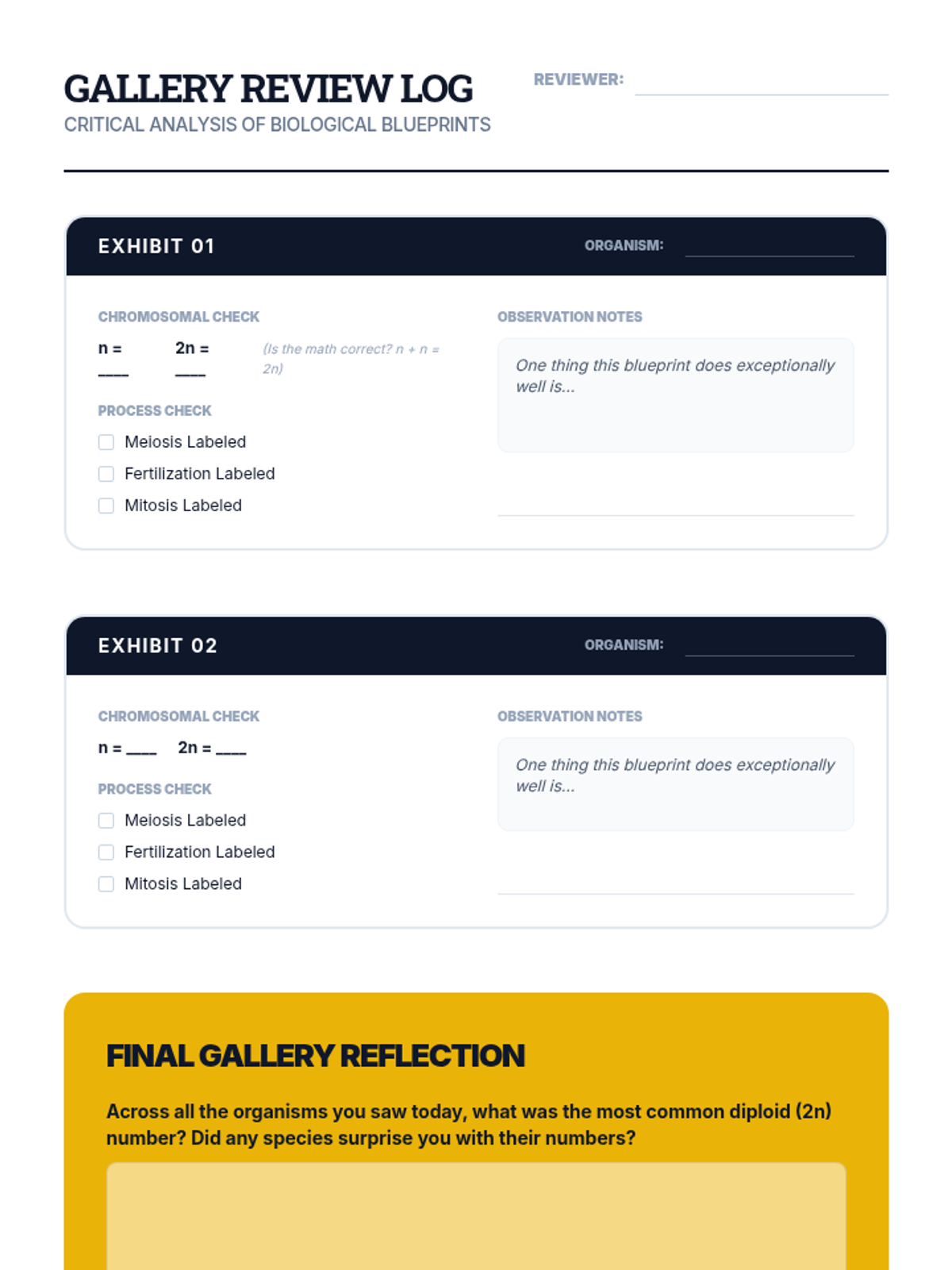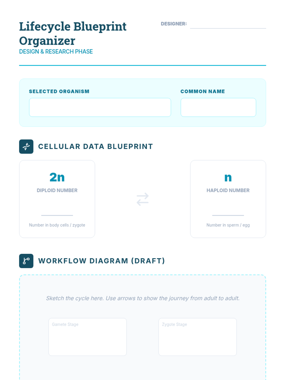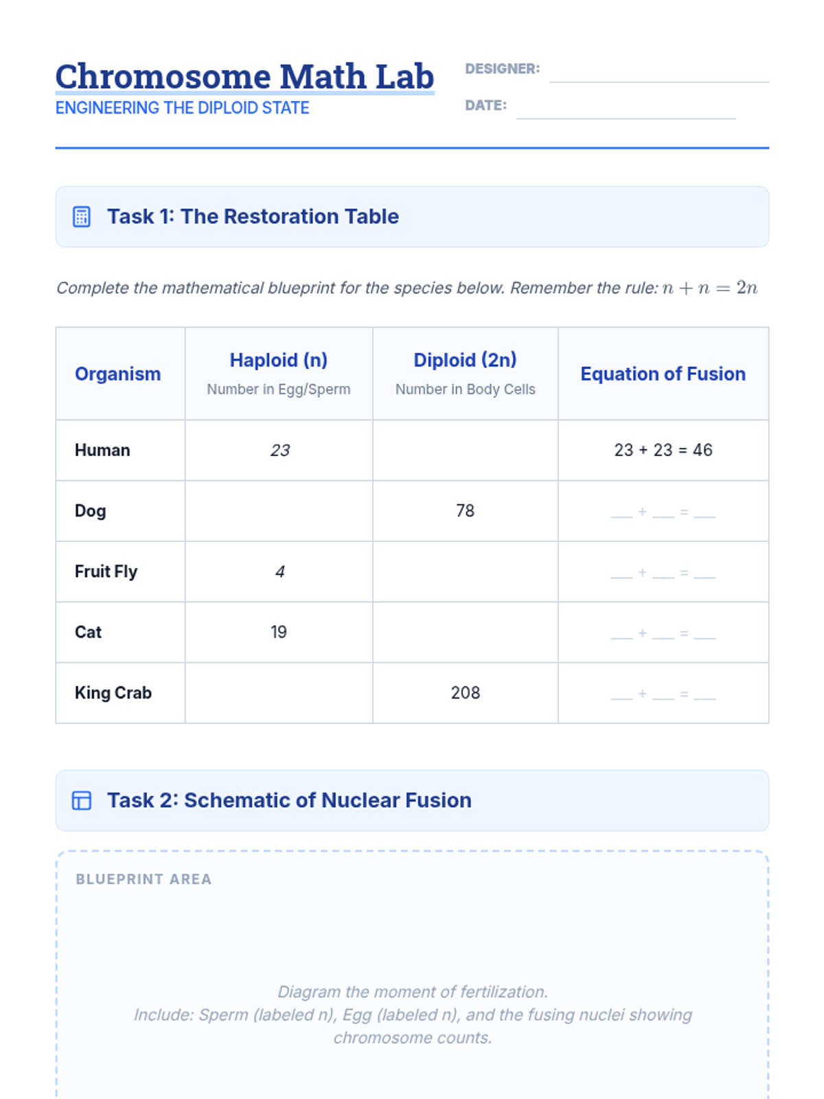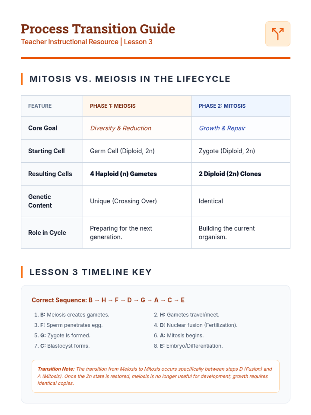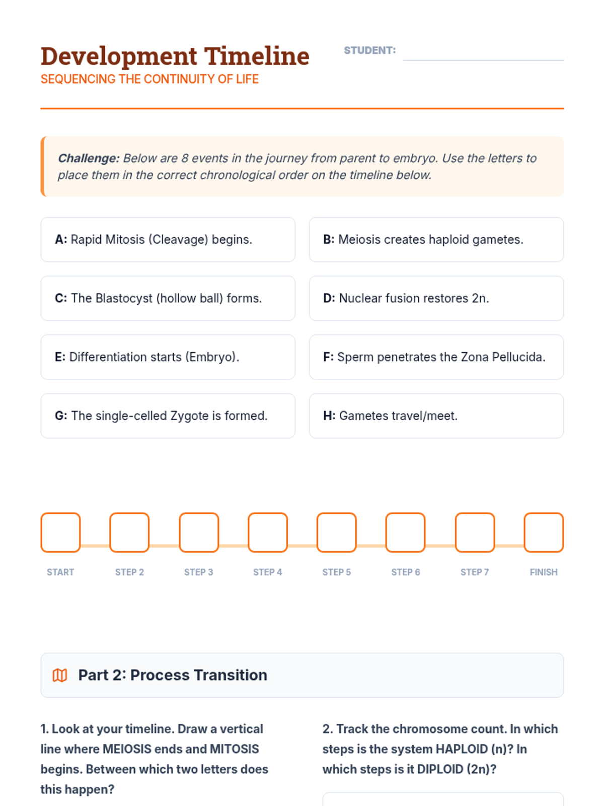 A project-based biology sequence exploring the journey from haploid gametes to diploid multicellular organisms, focusing on meiosis, fertilization, and the transition to mitosis.
