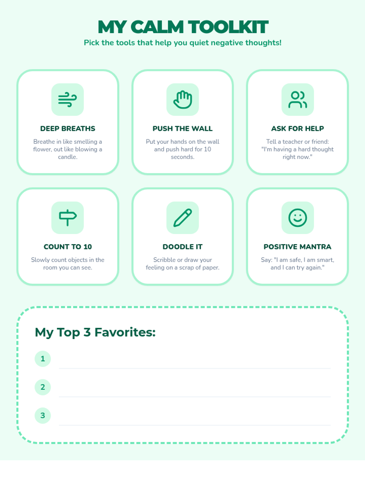 A 6-session counseling group designed to help students identify triggers, understand physical symptoms of anxiety, and build a personalized toolkit of coping strategies through a 'Calm Explorer' theme.