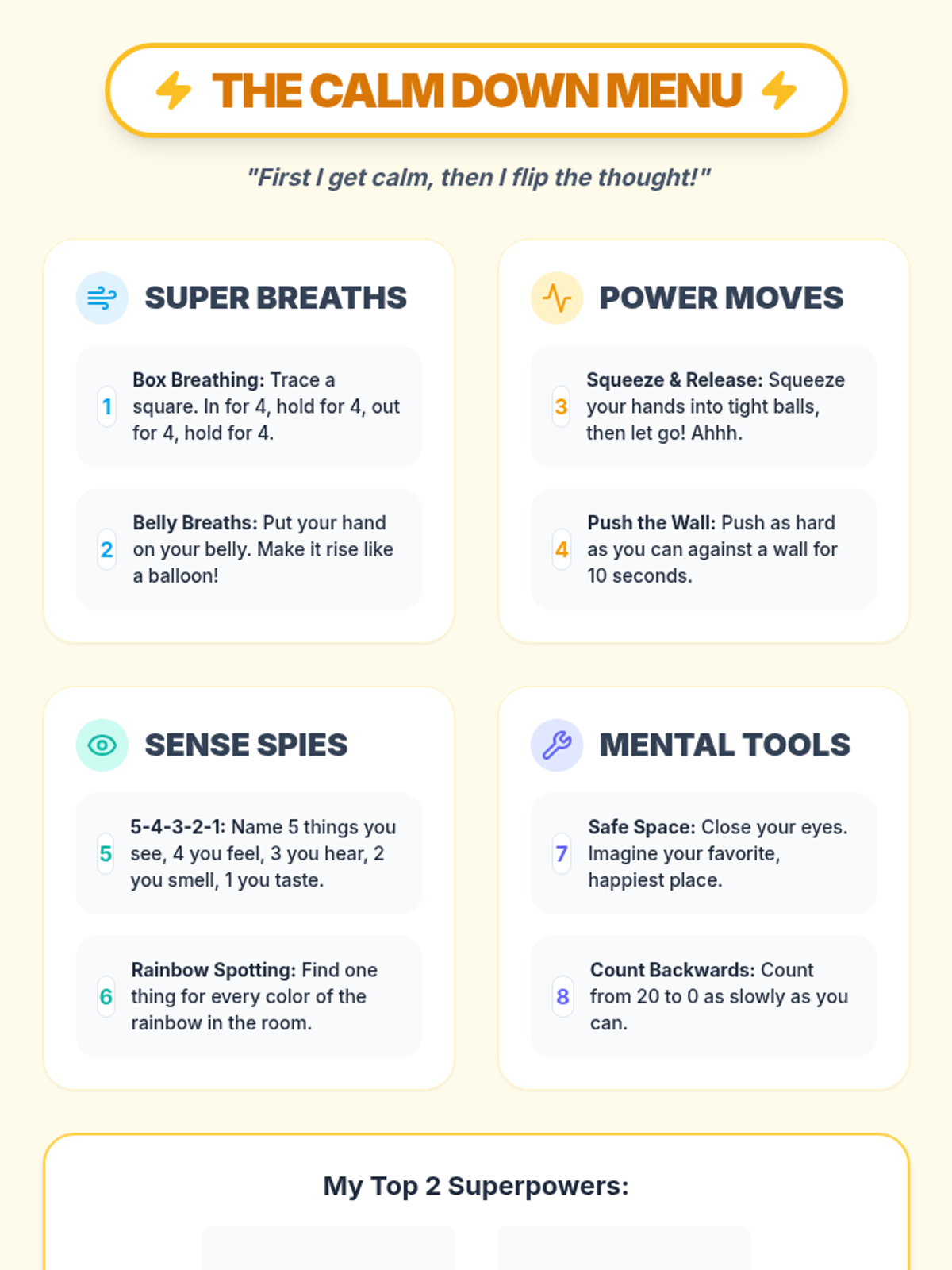 A 6-session counseling group designed to help students identify triggers, understand physical symptoms of anxiety, and build a personalized toolkit of coping strategies through a 'Calm Explorer' theme.