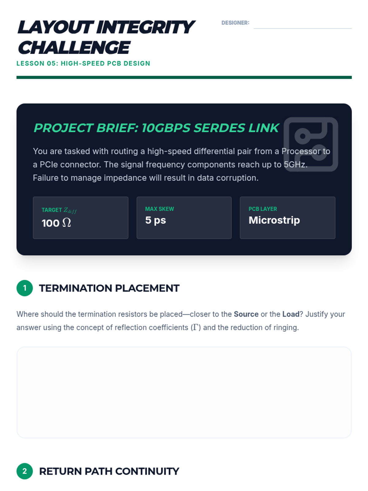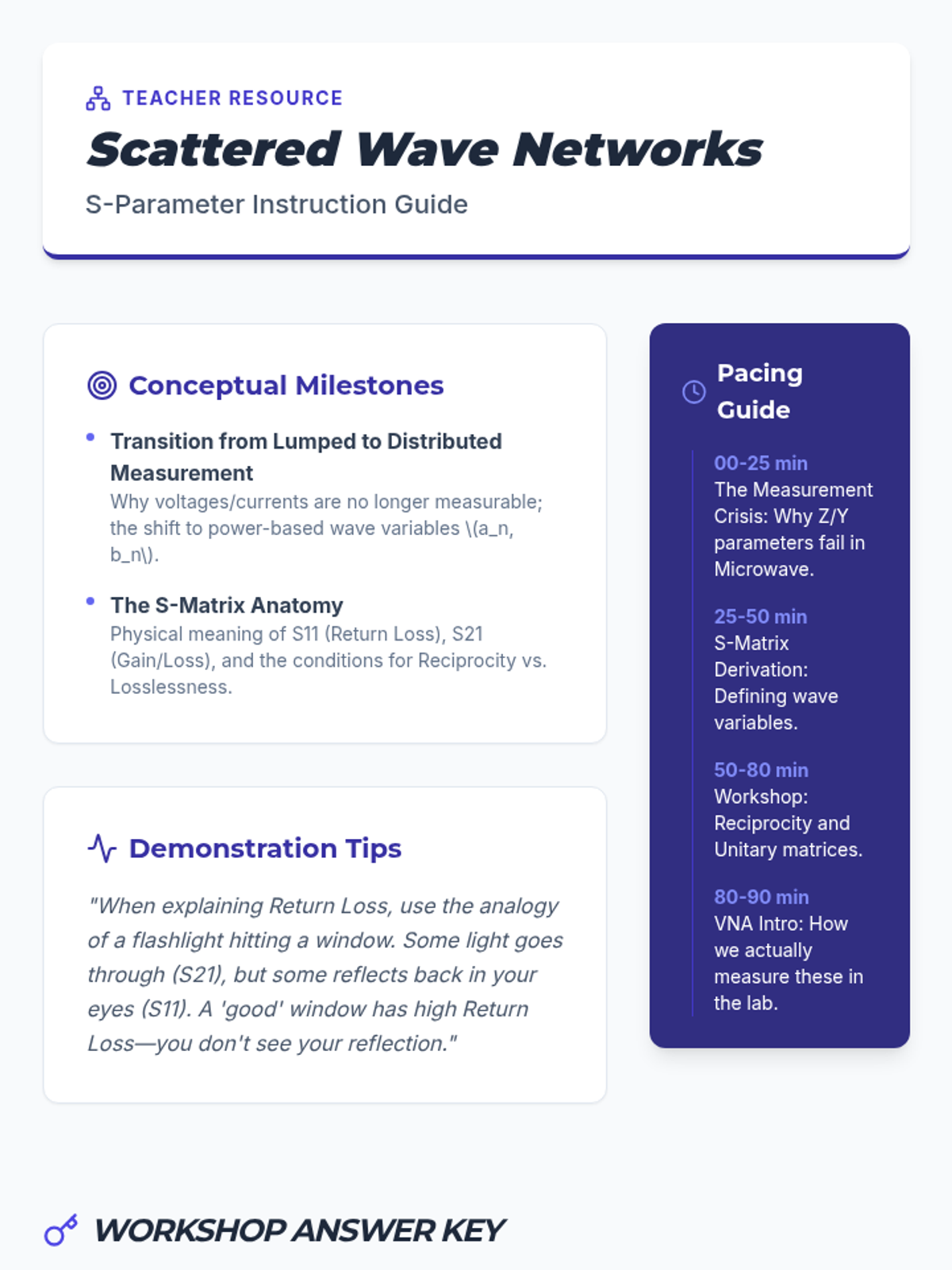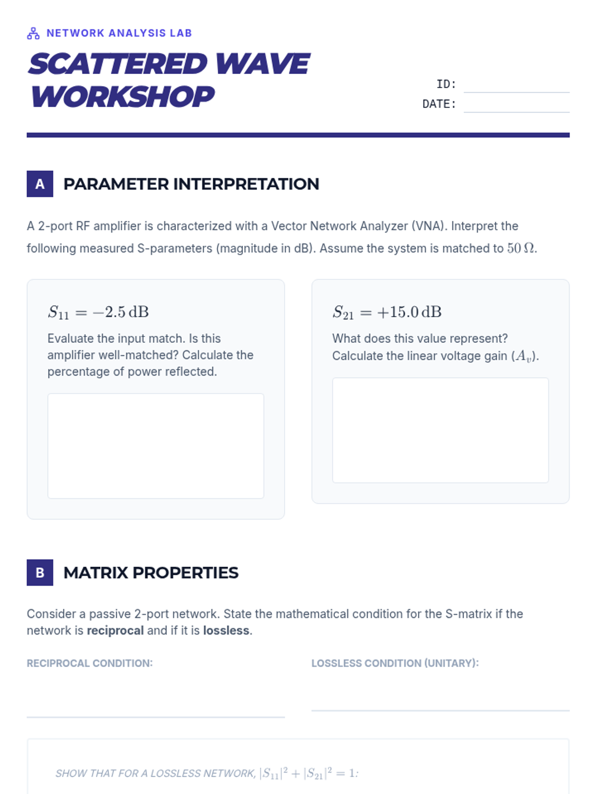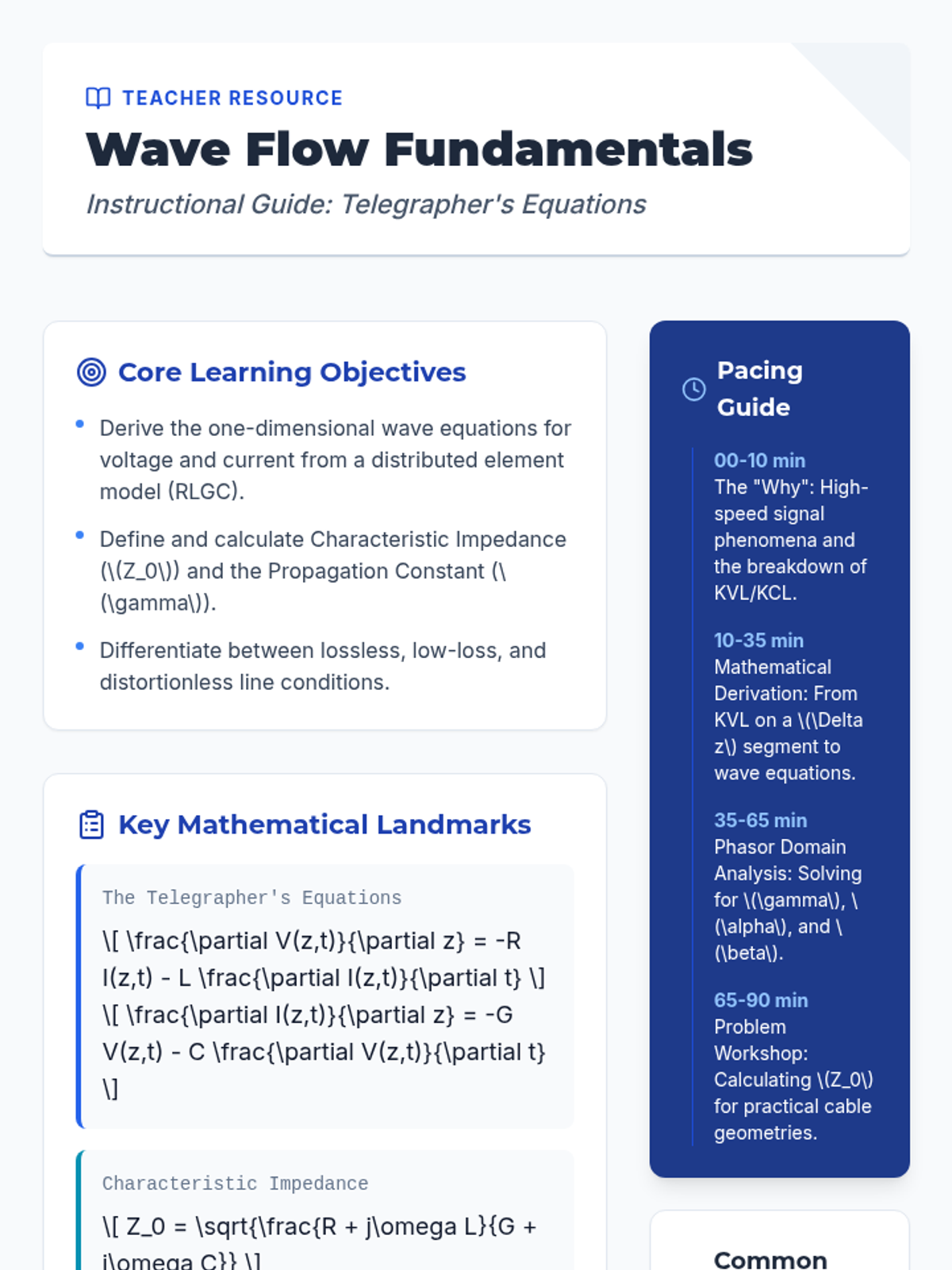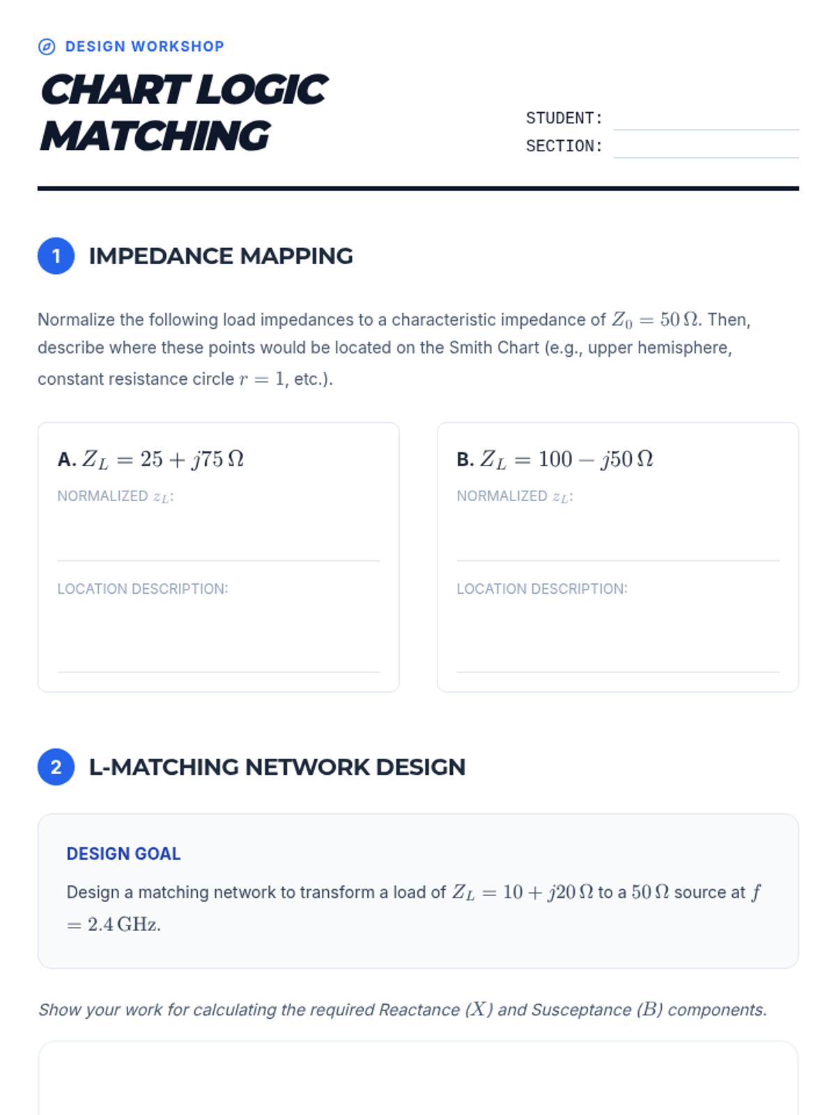 A graduate-level exploration of high-frequency electromagnetic wave propagation on transmission lines, focusing on impedance matching, S-parameters, and signal integrity. Students move from theoretical derivations to practical microwave engineering design tools like Smith Charts.
