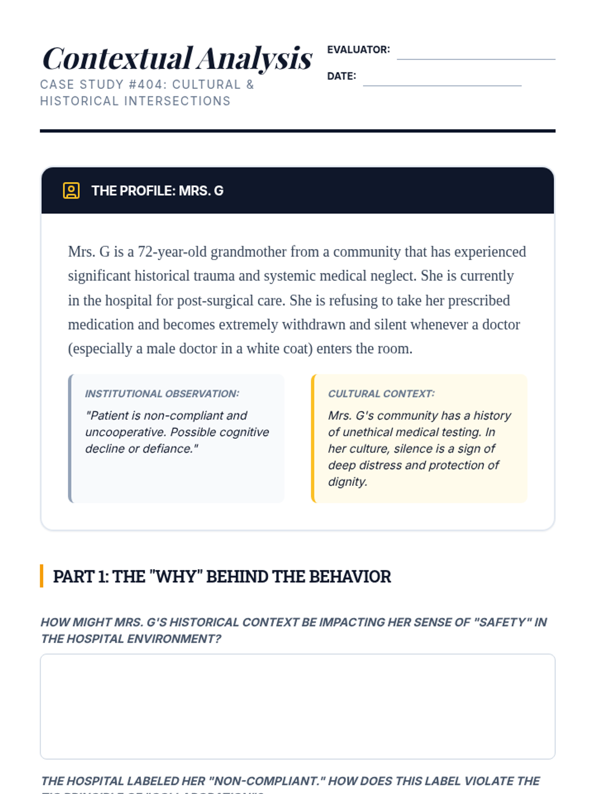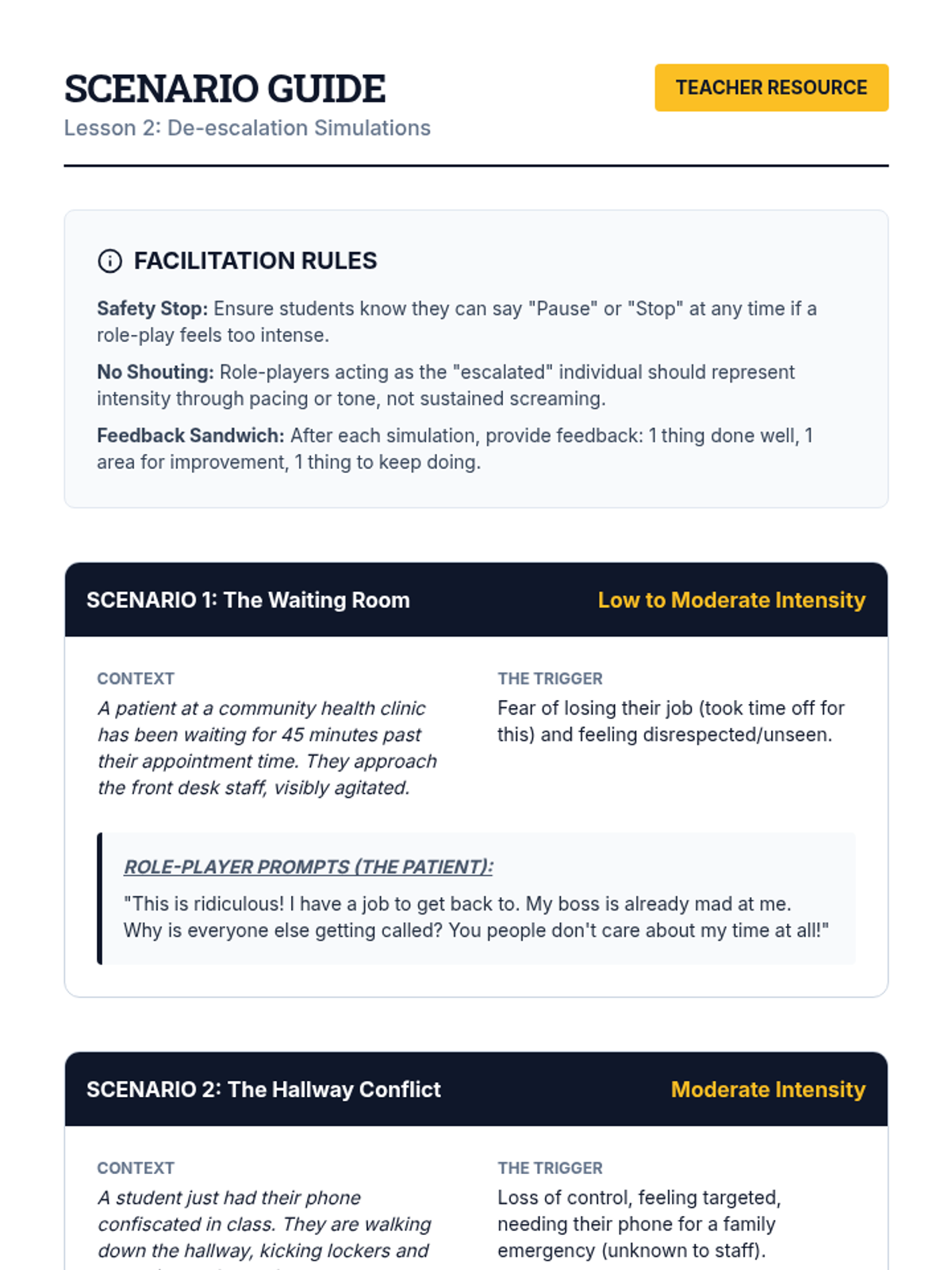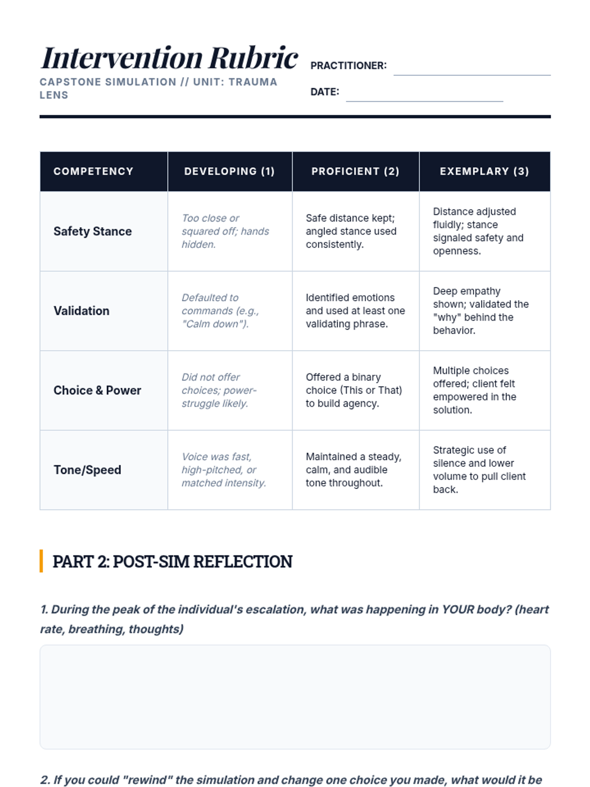 A comprehensive unit for 11th-grade students exploring the principles of Trauma-Informed Care (TIC), de-escalation strategies, provider wellness, and cultural competency. Students transition from theoretical understanding to clinical application through simulations and policy analysis.