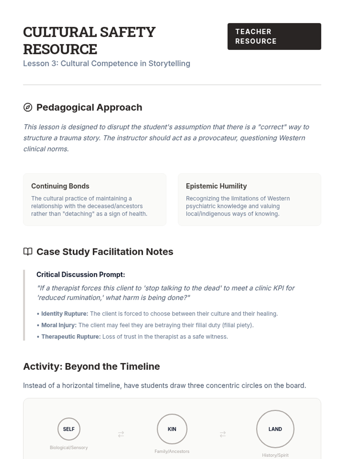 This advanced sequence explores the nuances of trauma narrative work across diverse populations, focusing on Narrative Exposure Therapy (NET), developmental adaptations for youth, cultural sensitivity, overcoming therapeutic resistance, and essential provider self-care strategies.