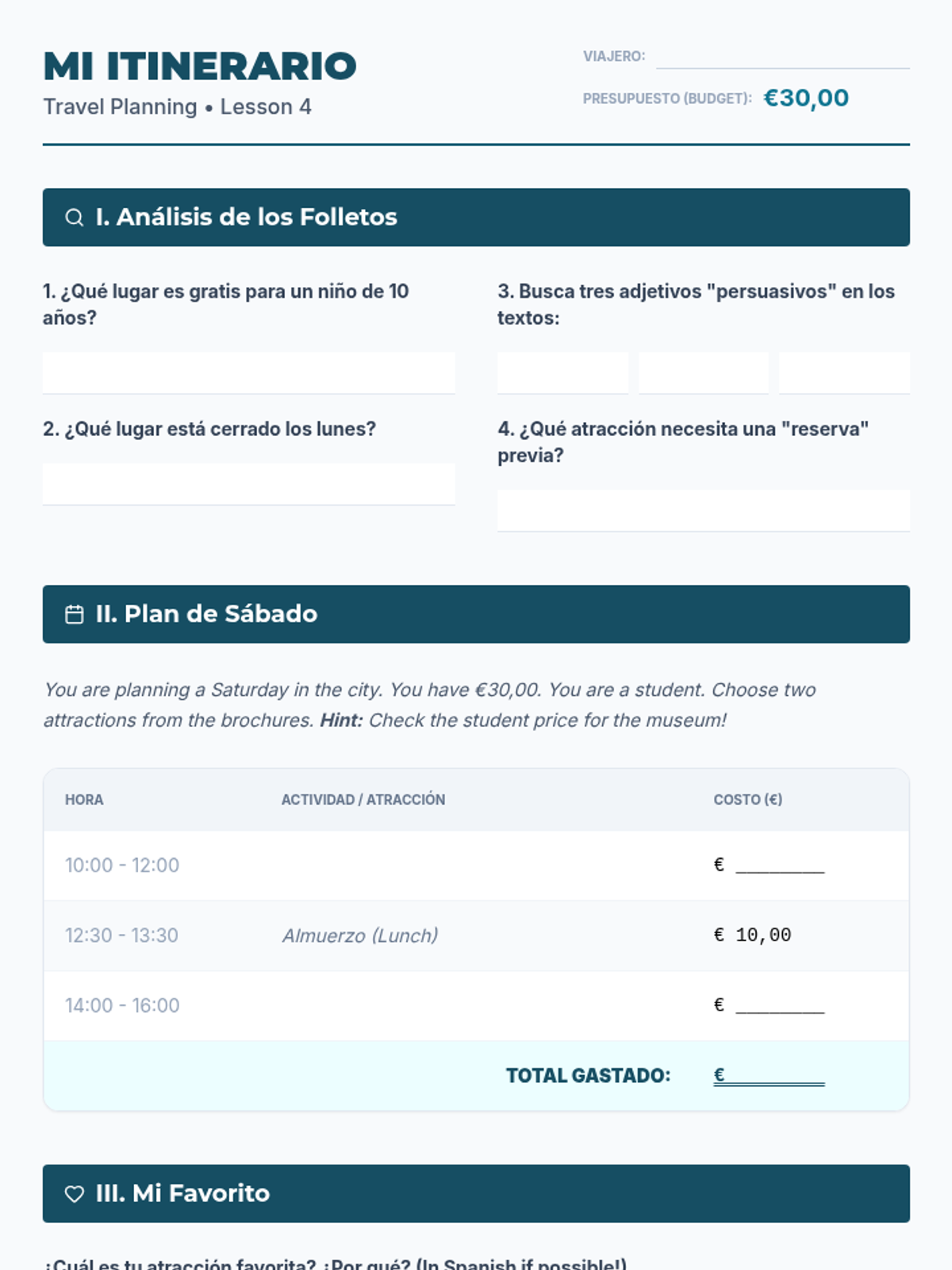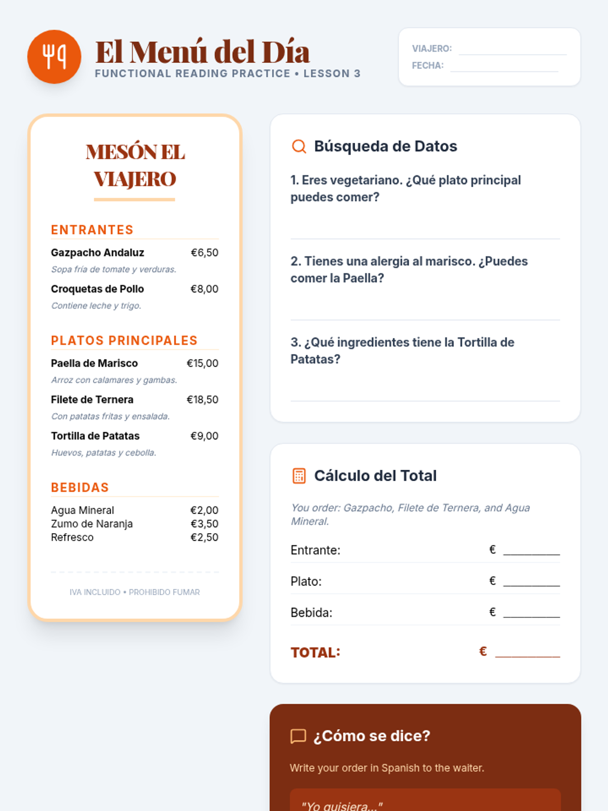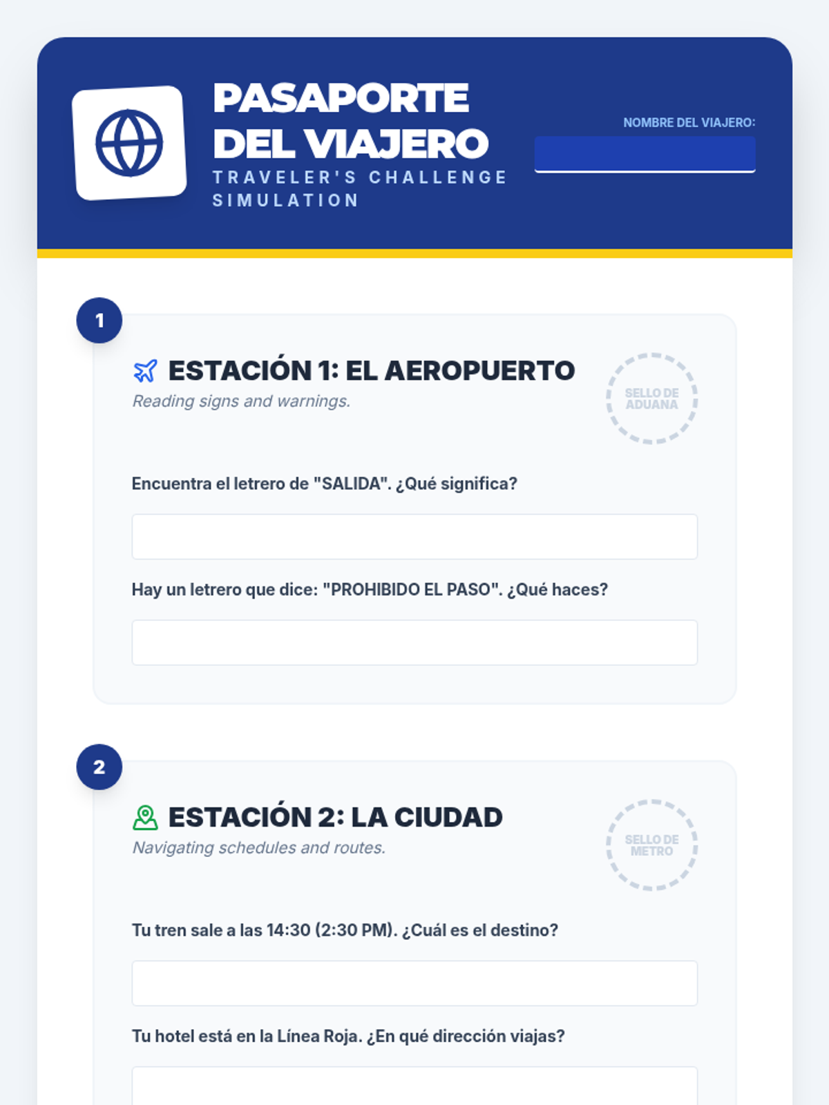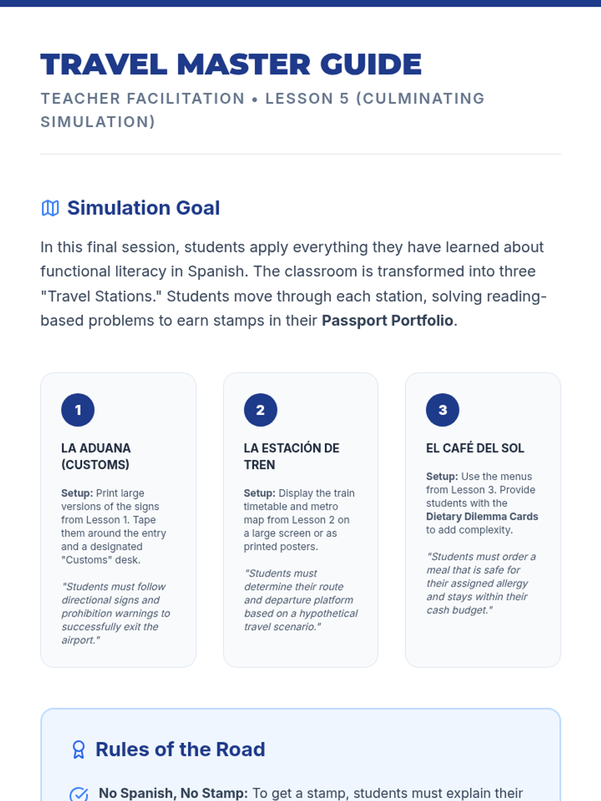 This simulation-based sequence helps 9th-grade Spanish students develop functional literacy by navigating public signs, transportation schedules, menus, and tourist brochures. Students apply their reading skills to real-world scenarios, culminating in a 'Traveler's Challenge' simulation.