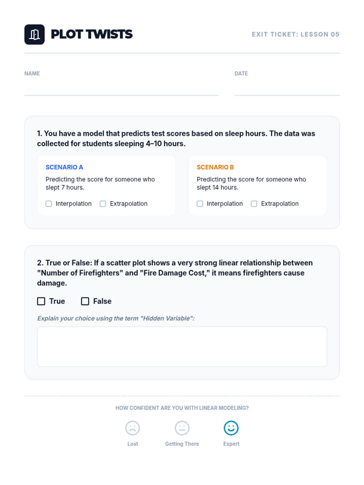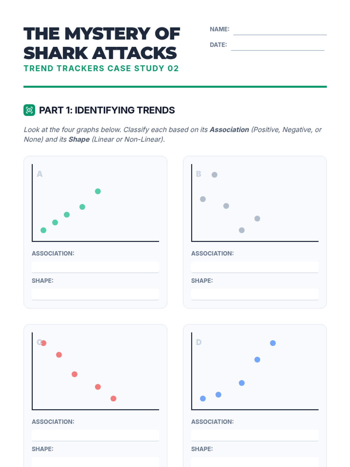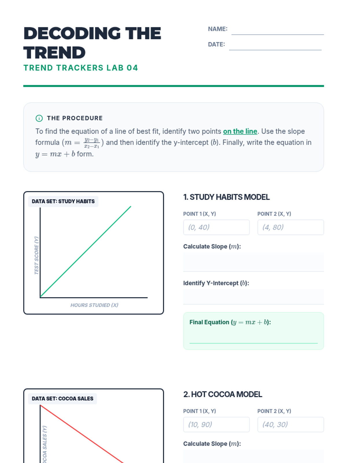 This sequence guides 8th-grade students through constructing scatter plots, identifying patterns of association, modeling trends with linear equations, and interpreting data in context while distinguishing correlation from causation.