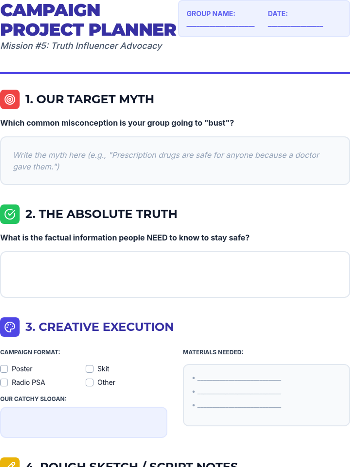 A 4th-grade sequence focused on media literacy and debunking myths surrounding prescription drug safety, encouraging critical thinking and healthy coping mechanisms.